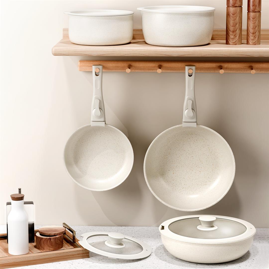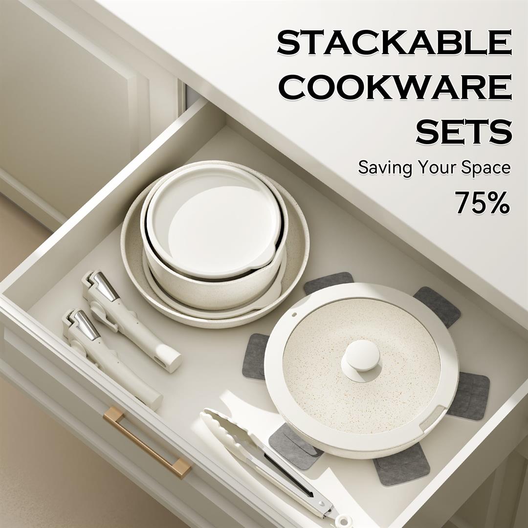 ALPULON 18Pcs Ceramics Pots and Pans Set with Lids, for Induction Cookware,White