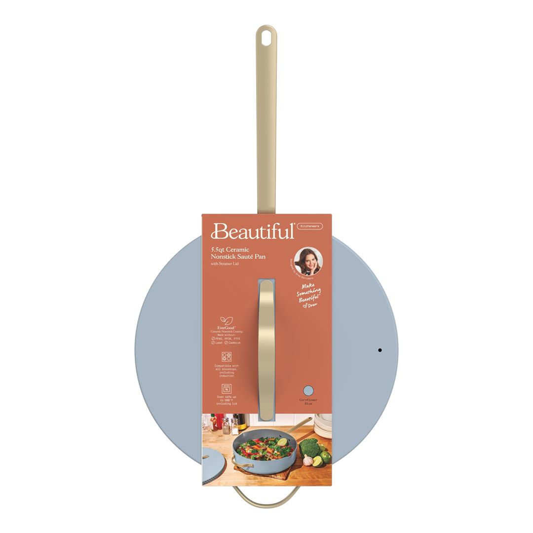Beautiful 5.5 Quart Ceramic Non-Stick Saut Pan with Strainer Lid, Cornflower Blue by Drew Barrymore