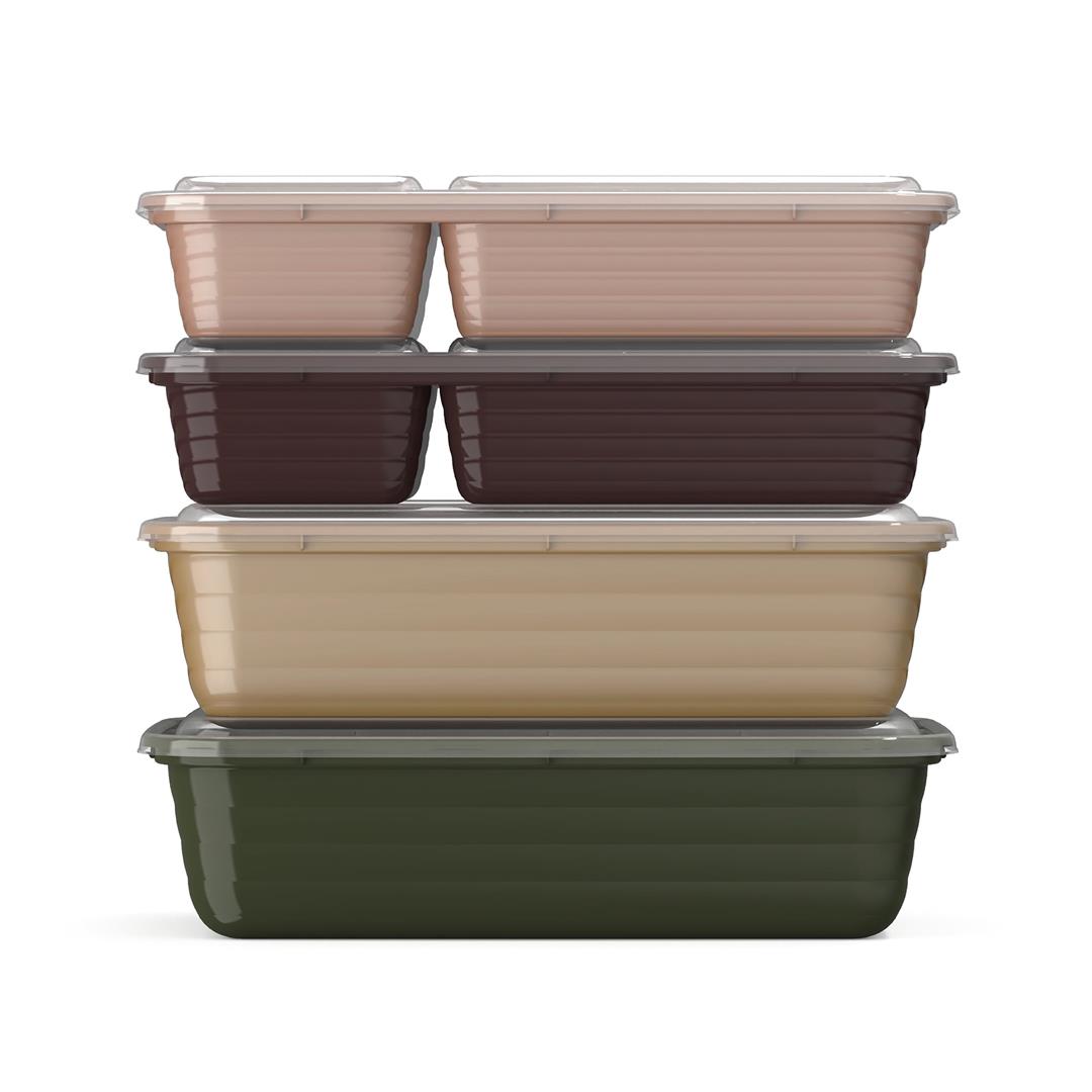 Step up your meal prep game with this 80-piece set of stackable meal prep containers from Bentgo. This pack includes 40 bases and 40 lids in a variety of clean, modern colors and can go from the microwave, to the dishwasher, to the freezer with ease. These premium food-grade 1 and 2-compartment containers have portion capacities conveniently embossed on each container so you can take the guesswork out of packing an ideal portioned meal. Their eco-friendly material is free of any BPA, PVC, phthalates, lead, or vinyl. Includes: (10) Khaki Green Bentgo Prep 1-compartment meal prep containers with (10) lids (10) Gold Bentgo Prep 1-compartment meal prep containers with (10) lids (10) Burgundy Bentgo Prep 2-compartment meal prep containers with (10) lids (10) Rose Gold Bentgo Prep 2-compartment meal prep containers with (10) lids