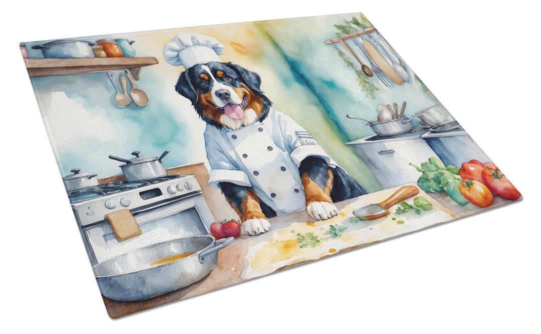 Bernese Mountain Dog The Chef Glass Cutting Board 12 in x 15 in