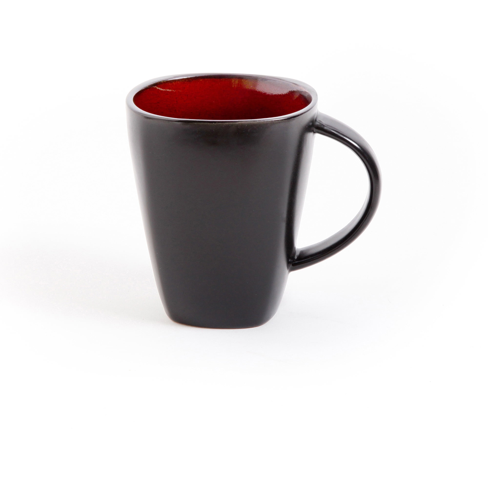Awaken your senses and your tablescape with the Better Homes & Gardens 16-Piece Dinnerware Set. This contemporary two-tone service for four has a distinctive design, with matte black and deep crimson. Each piece features a reactive glaze that creates unique, subtle patterns, adding depth and dimension to every meal. The Better Homes and Gardens dinnerware set, Tuscan red comes with four 10.75″ dinner plates, four 7.75″ dessert plates, four 6″ bowls, and four, generously sized 11.5 oz mugs. Each piece has a matte black exterior and a crimson interior, for contrast. The dinner and dessert plates are square-shaped, a distinctive departure from most kitchen dinnerware sets. All pieces are microwave and dishwasher safe.