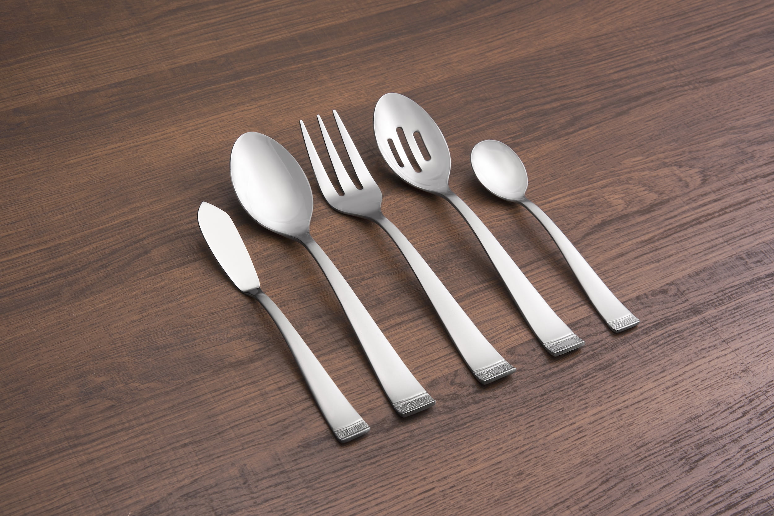 Cambridge Gratitude Sand 45-Piece Stainless Steel Flatware Set with Chrome Buffet (Service for 8)