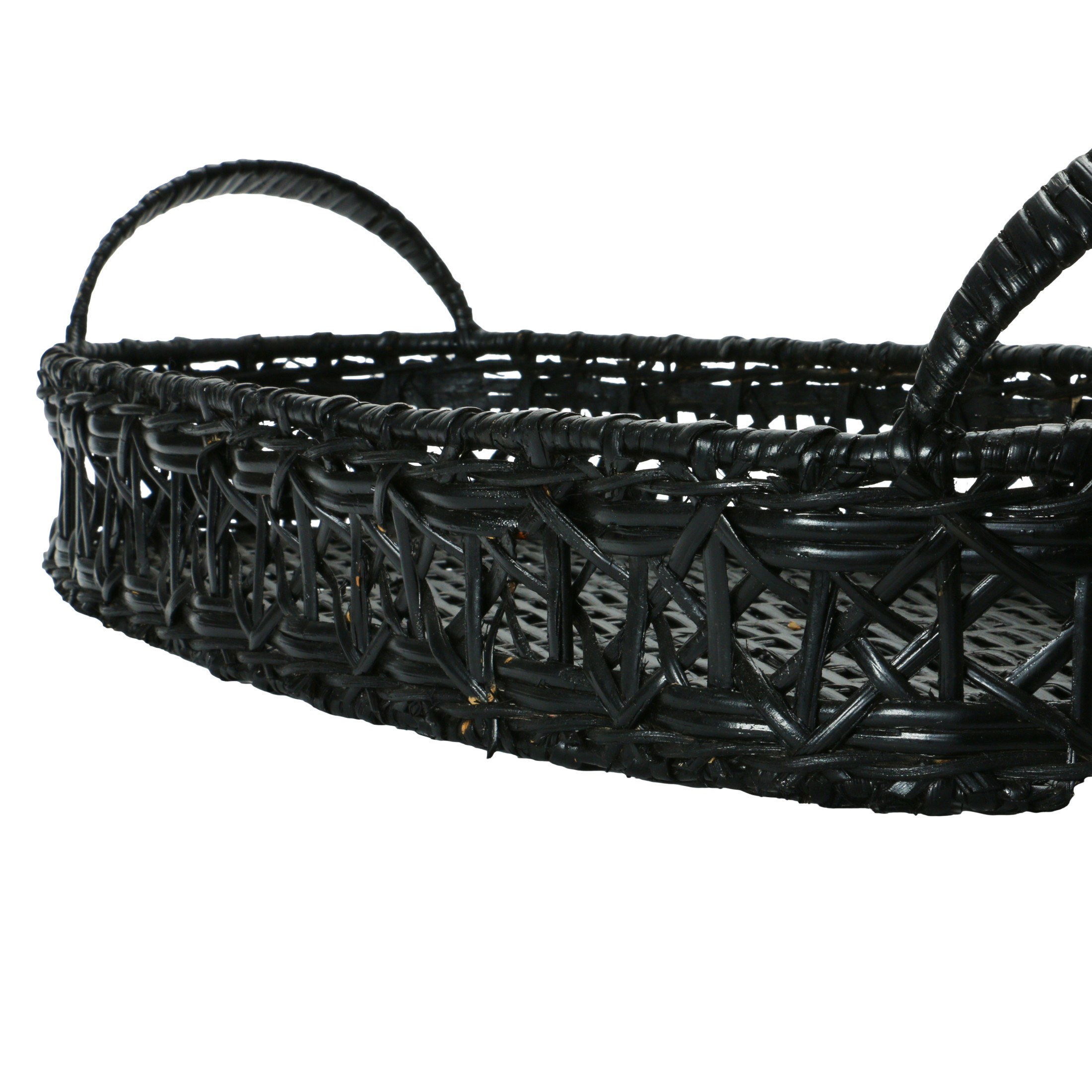 Creative Co-Op Decorative Hand-Woven Rattan Tray with Handles, Black