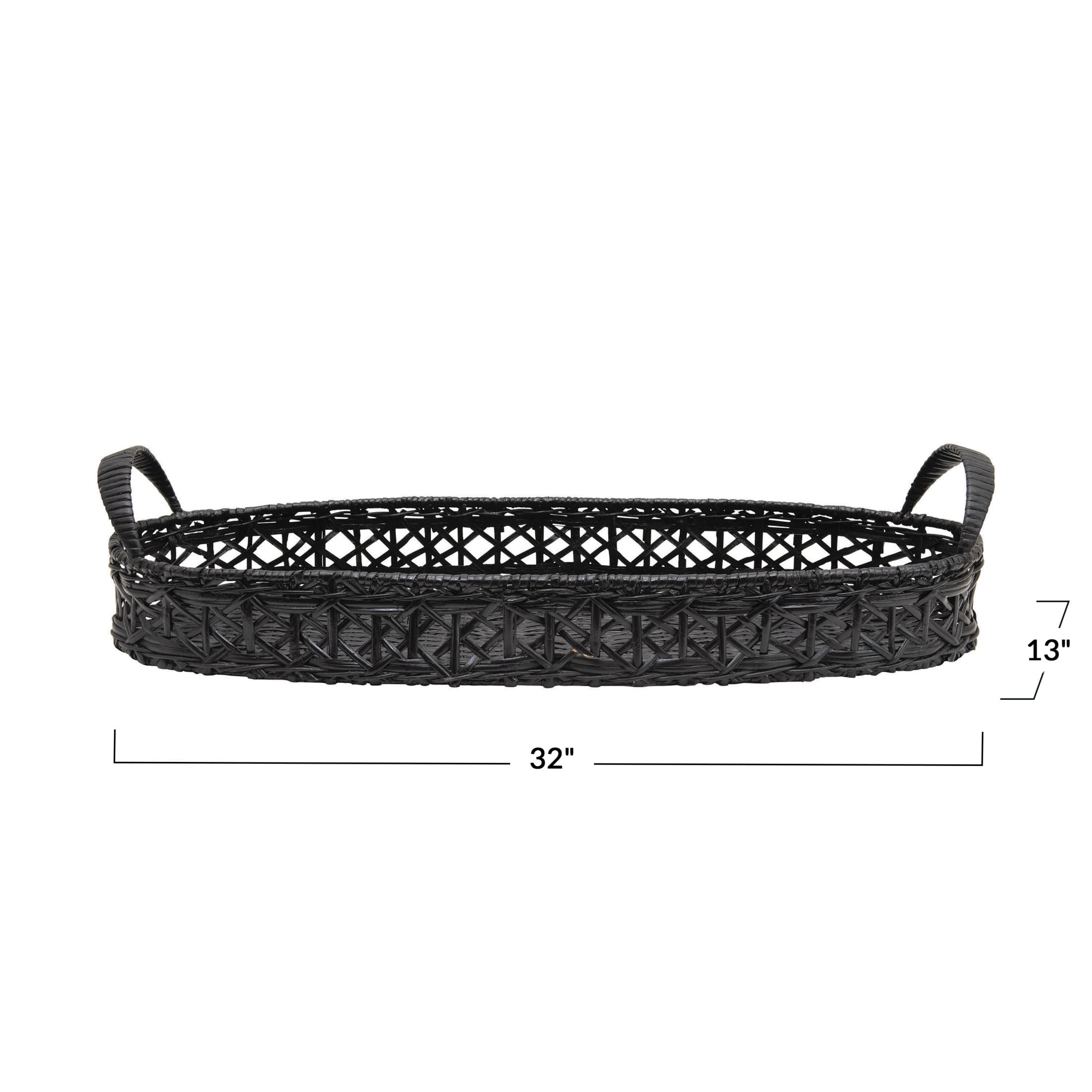 These rattan tray is perfect for displaying small items or decorative accents, and matches with any dcor style with its black rattan Made out of rattan Matches any neutral home Has handles for easy transportation 32″L x 13″W