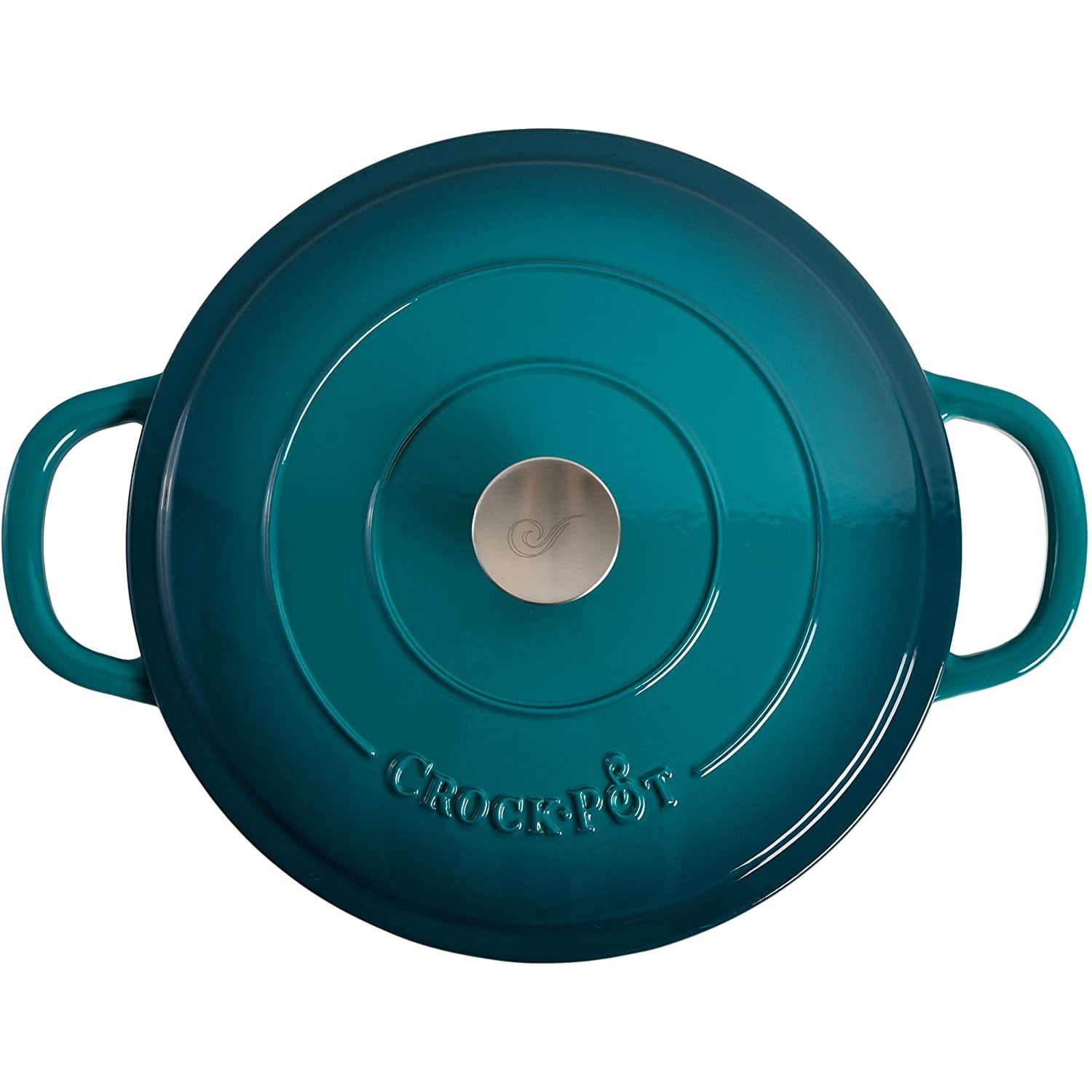 Crock-Pot 5 Quart Round Enamel Cast Iron Covered Dutch Oven Cooker, Teal Ombre