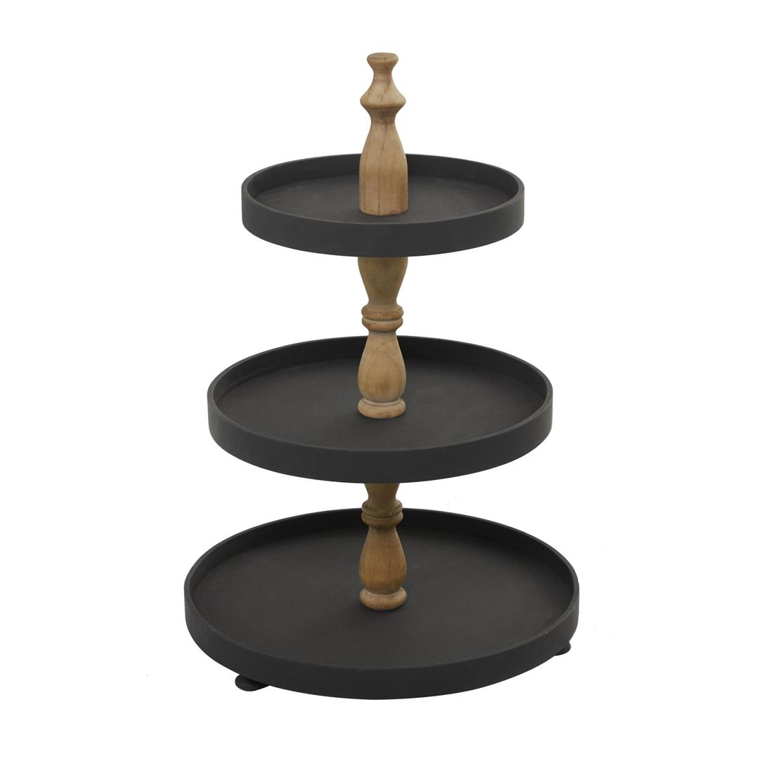 DecMode 16″ x 24″ Black Wood 3 Tiered Server with Wood Post, 1-Piece is a unique addition to your stylish home. Whether in your kitchen, or on your coffee table, it’s a great way to display and store your favorite things. A versatile piece for storage or as a decorative display on any surface space. Style the black cupcake stand in your kitchen or bedroom for an elegant yet laid-back display of decor and trinkets. This item ships in 1 carton. Please note that this item is for decorative purposes only and is not food safe. Suitable for indoor use only. This item ships fully assembled in one piece. This is a single black colored cupcake stand. Farmhouse style.