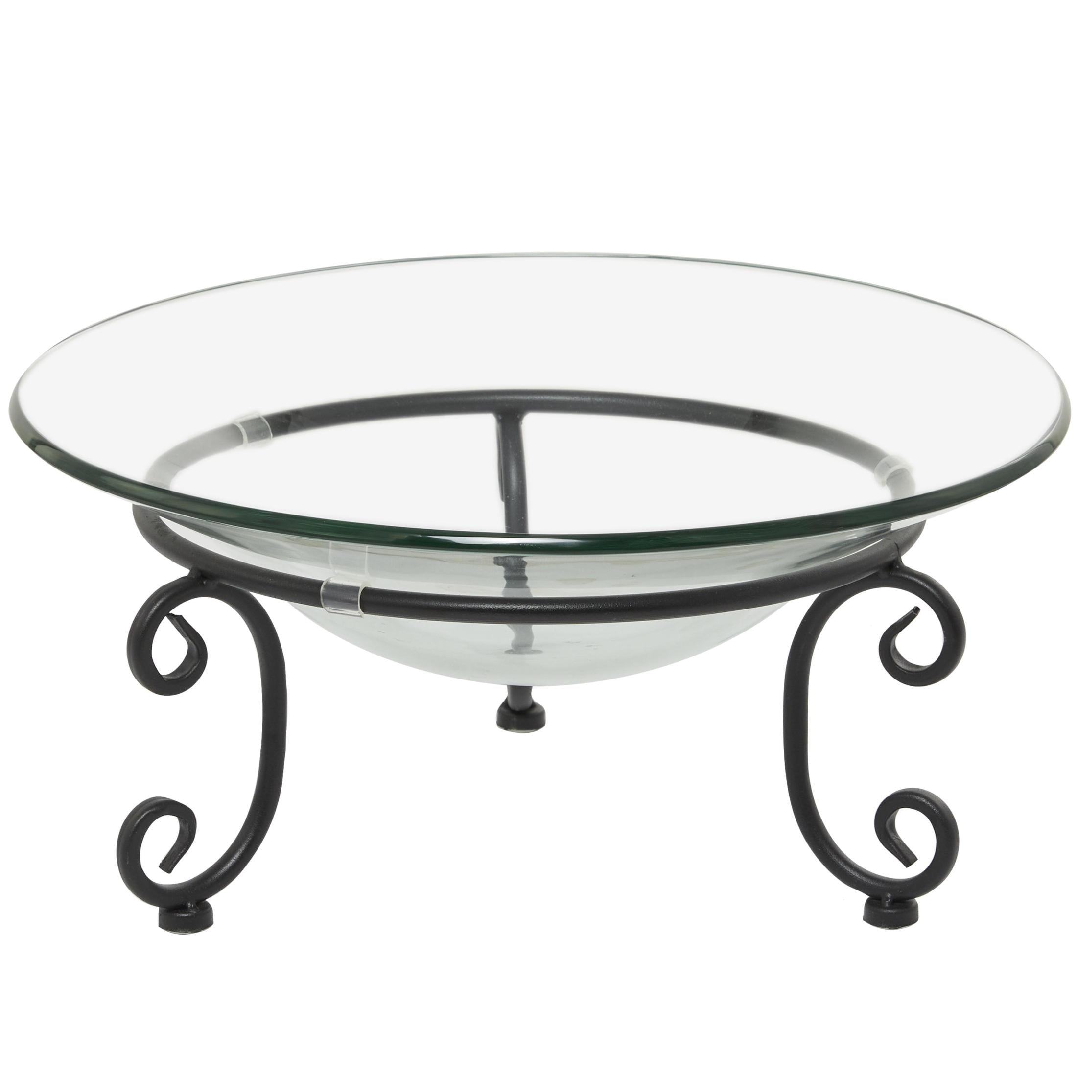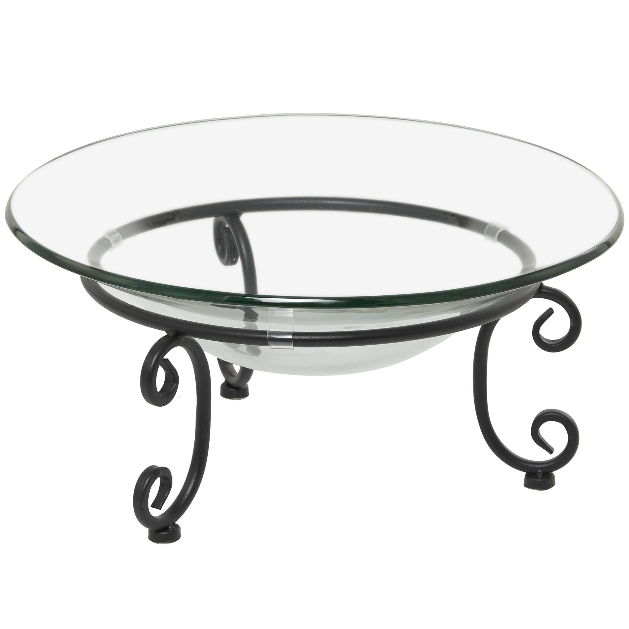 DecMode 17″ x 8″ Clear Tempered Glass Kitchen Serving Bowl with Black Metal Scroll Stand, 1-Piece