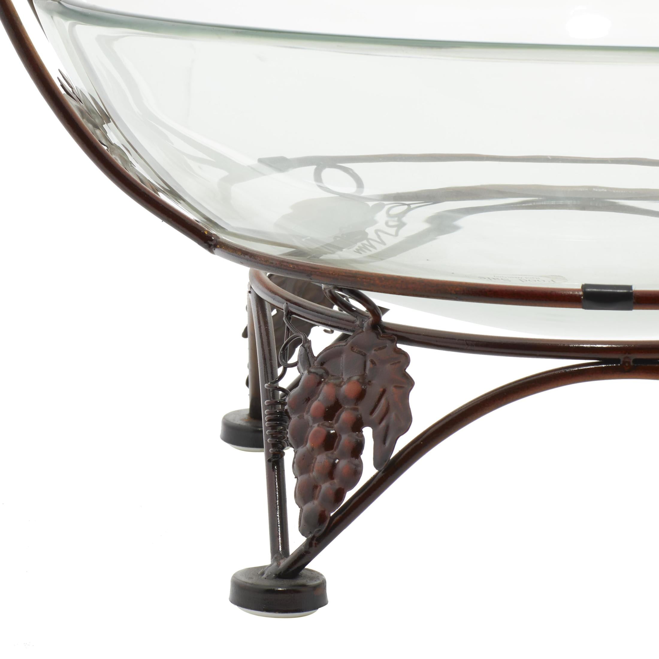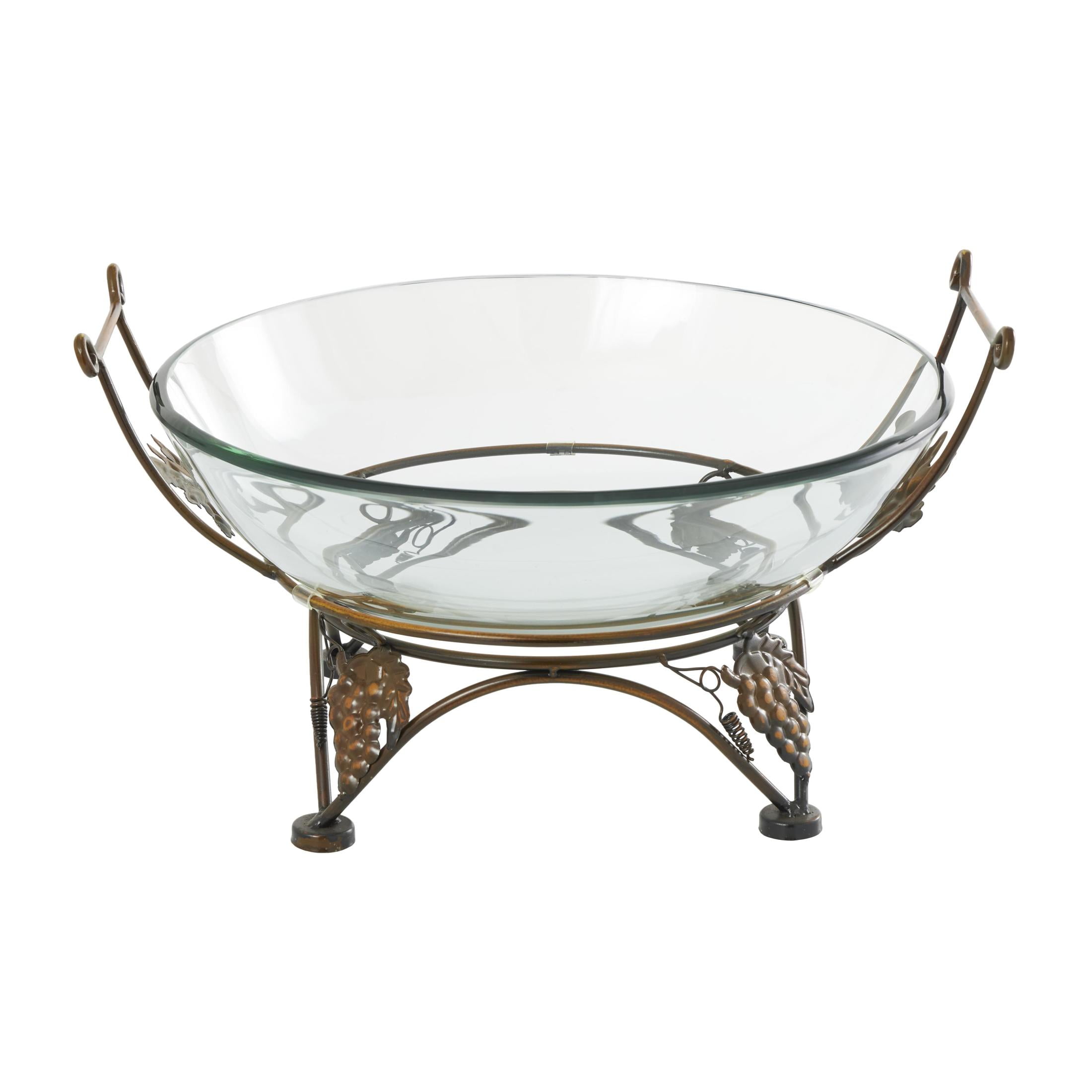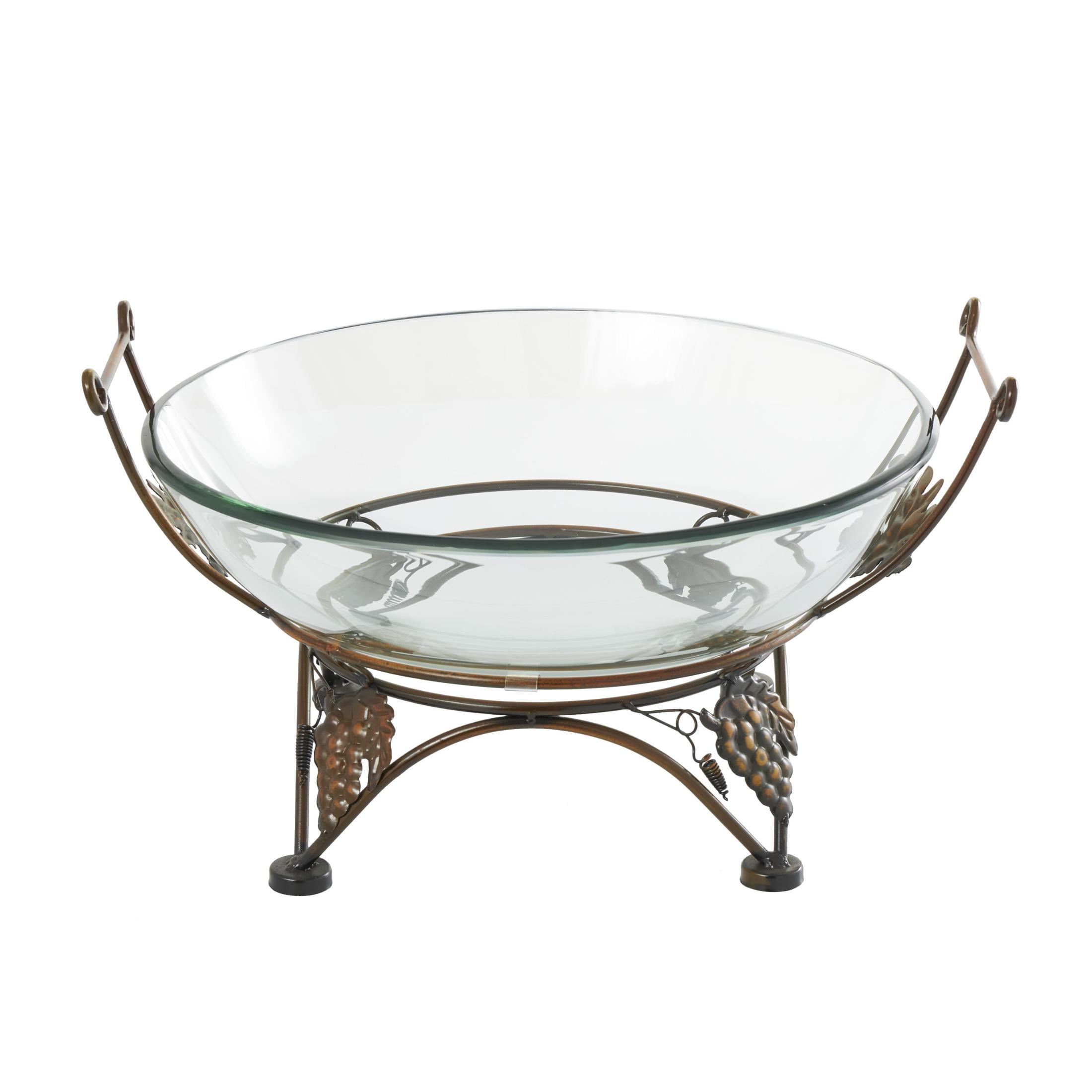 DecMode 19″ x 10″ Clear Tempered Glass Kitchen Serving Bowl with Copper Metal Grapes Base, 1-Piece