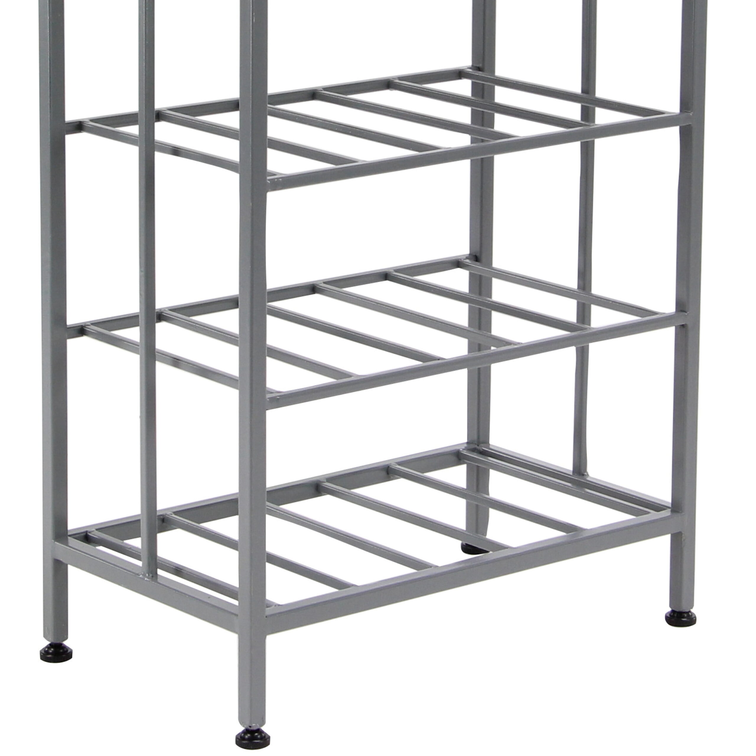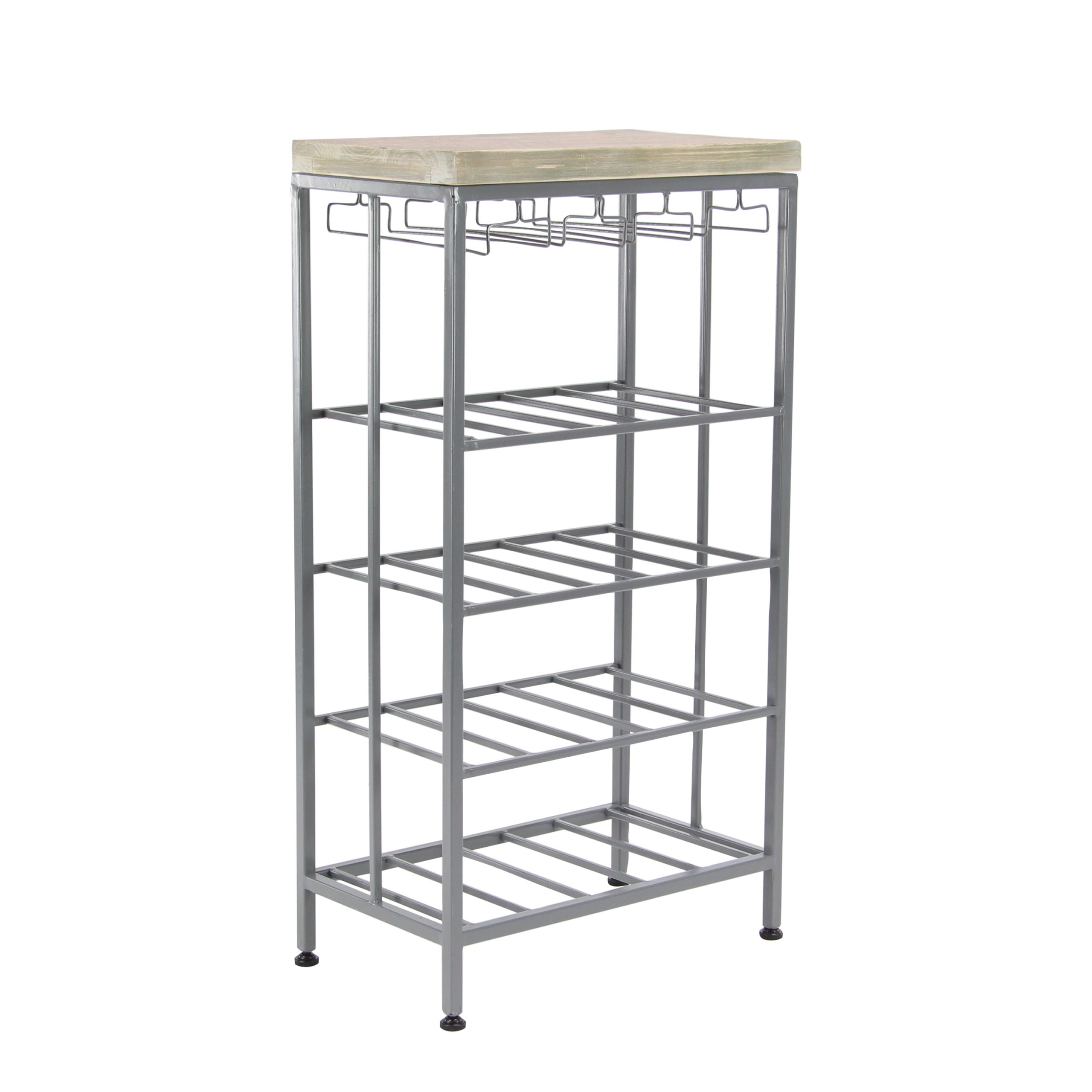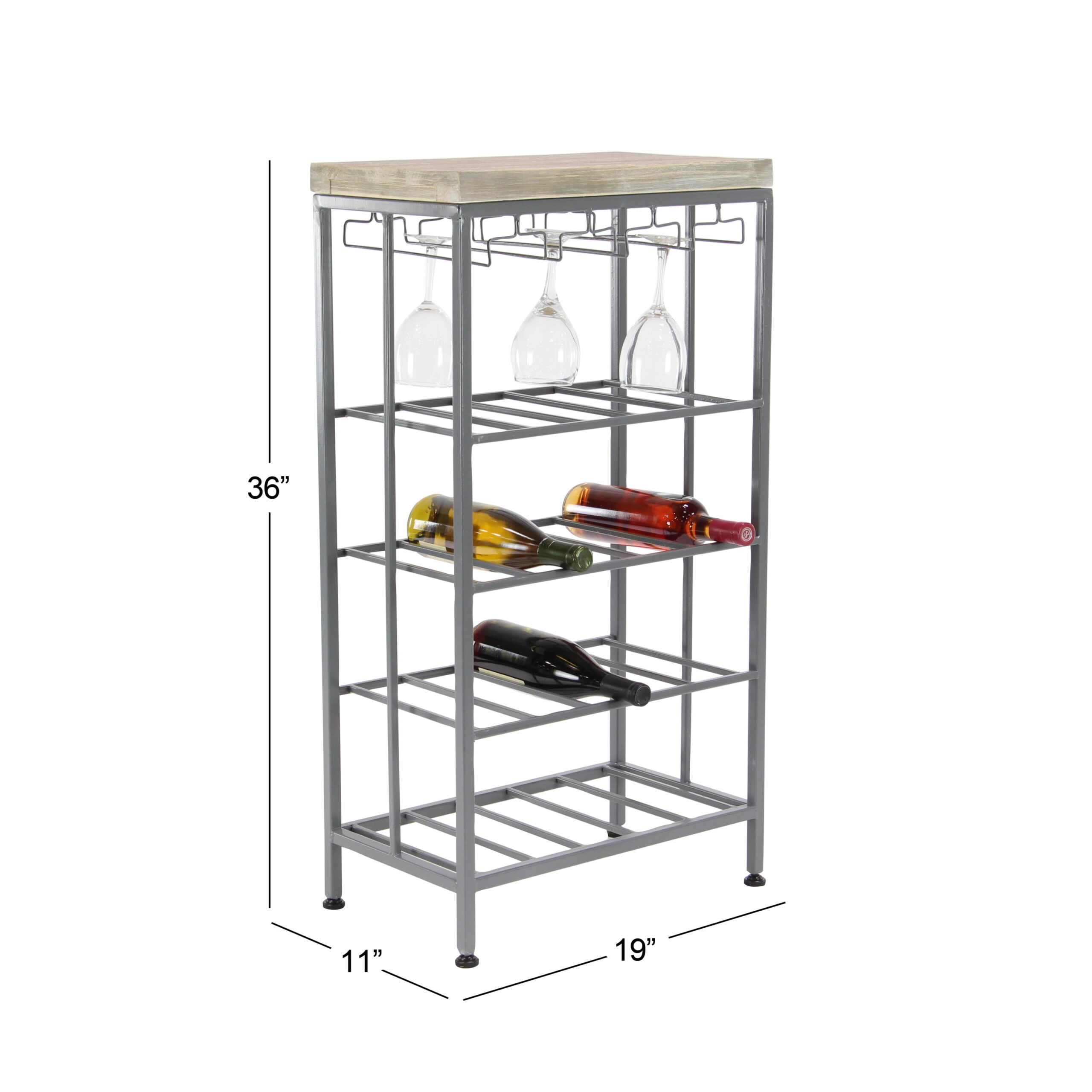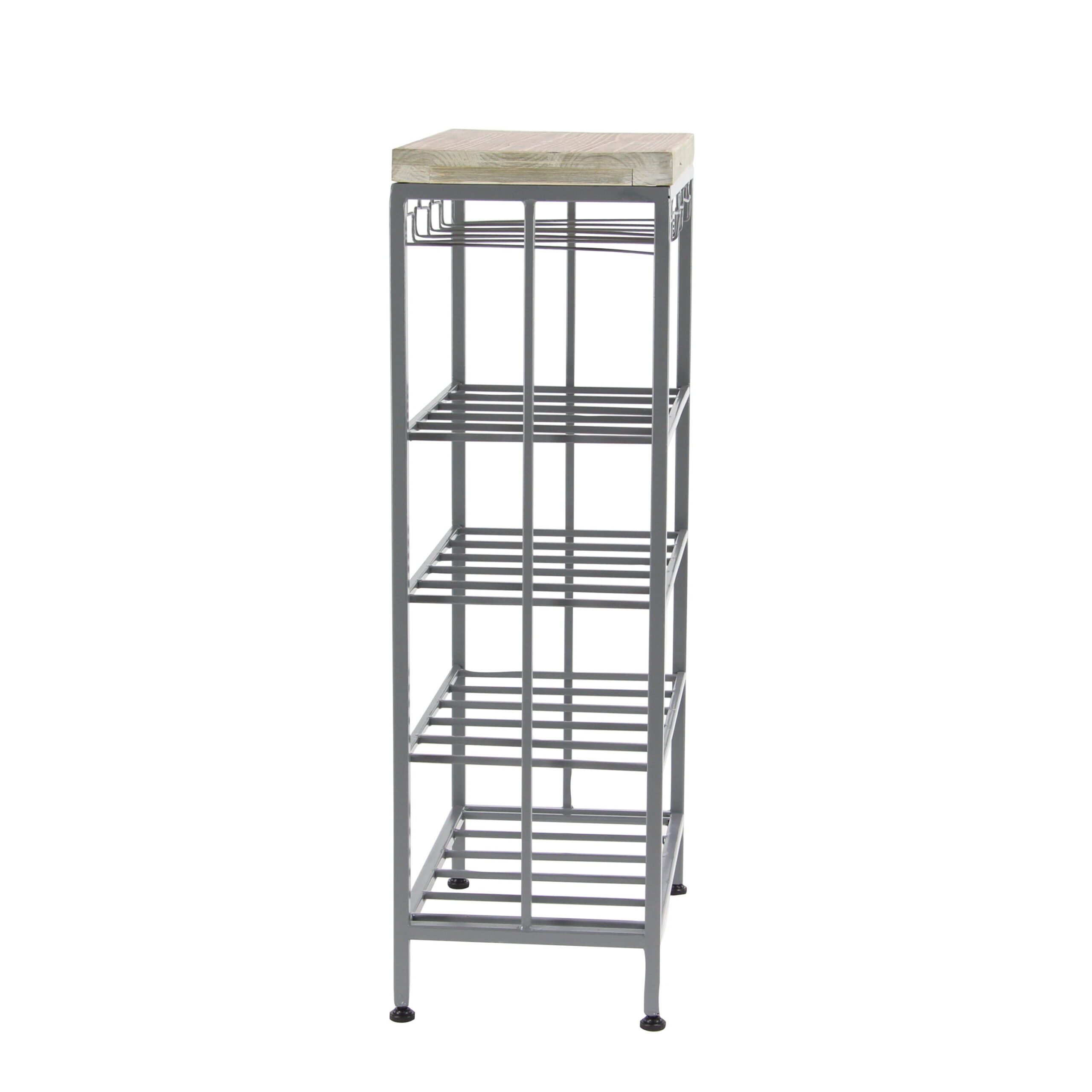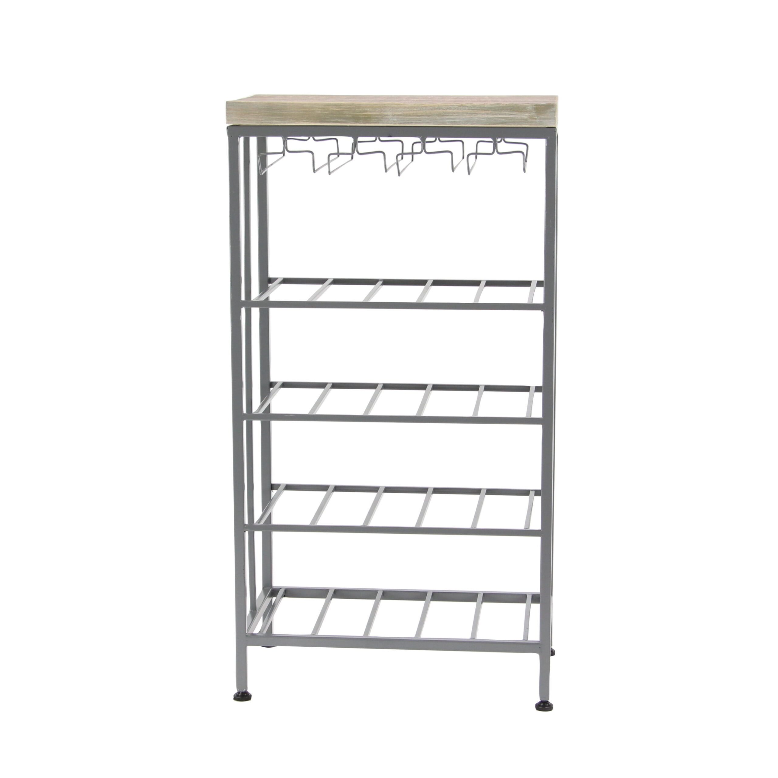 DecMode 36″ x 19″ Grey Metal Contemporary Wine Rack is a unique addition to your stylish home. Add this standing wine rack to your contemporary dining room or kitchen. Display your wine bottles with style and make everyone thirsty with envy. Looks stylish in your living room or kitchen as a way to display and serve your favorite wines. Designed with rubber stoppers at the base that prevent scratching furniture and table tops, as well as sliding around. This item comes shipped in one carton. This rack has four metal shelves and a rectangular top. Suitable for indoor use only. This wine rack includes 4 shelves. This wine rack can hold 20 bottles. Contemporary design. Maximum weight limit is 100 lbs