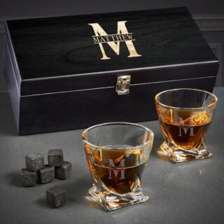 Fashioned from premium glass and crested with an initial in pewter Masterfully sculpted to accentuate the aromas and flavor whiskey Amazing gift set for birthdays, retirements, and more Measuring 3.5″ x 3.5″, with 8.5 oz capacity