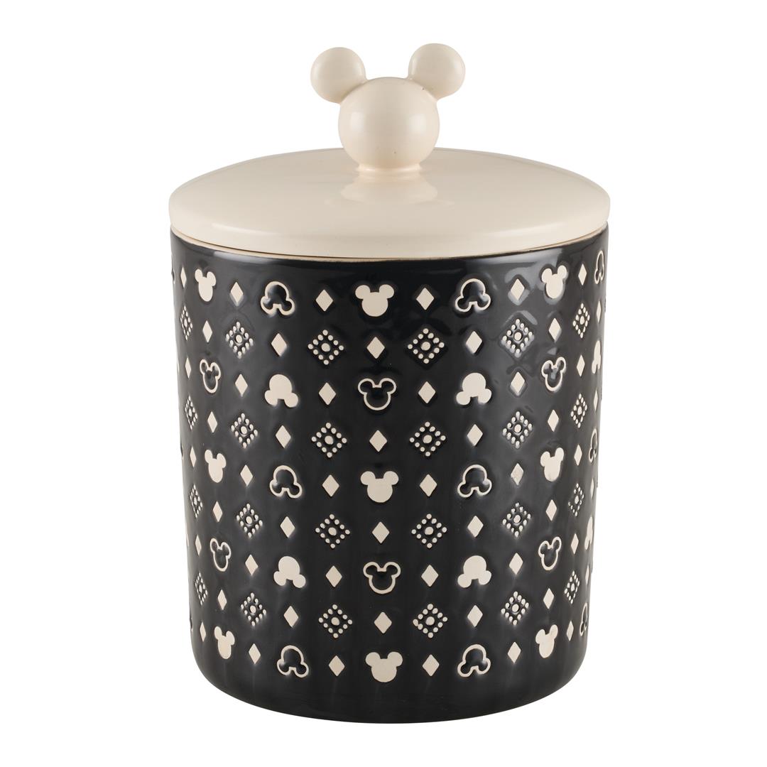 Disney Home Monochrome 12.8 Cup Extra Large Ceramic Canister and Lid with a geometric pattern featuring Mickeys iconic silhouette, Black