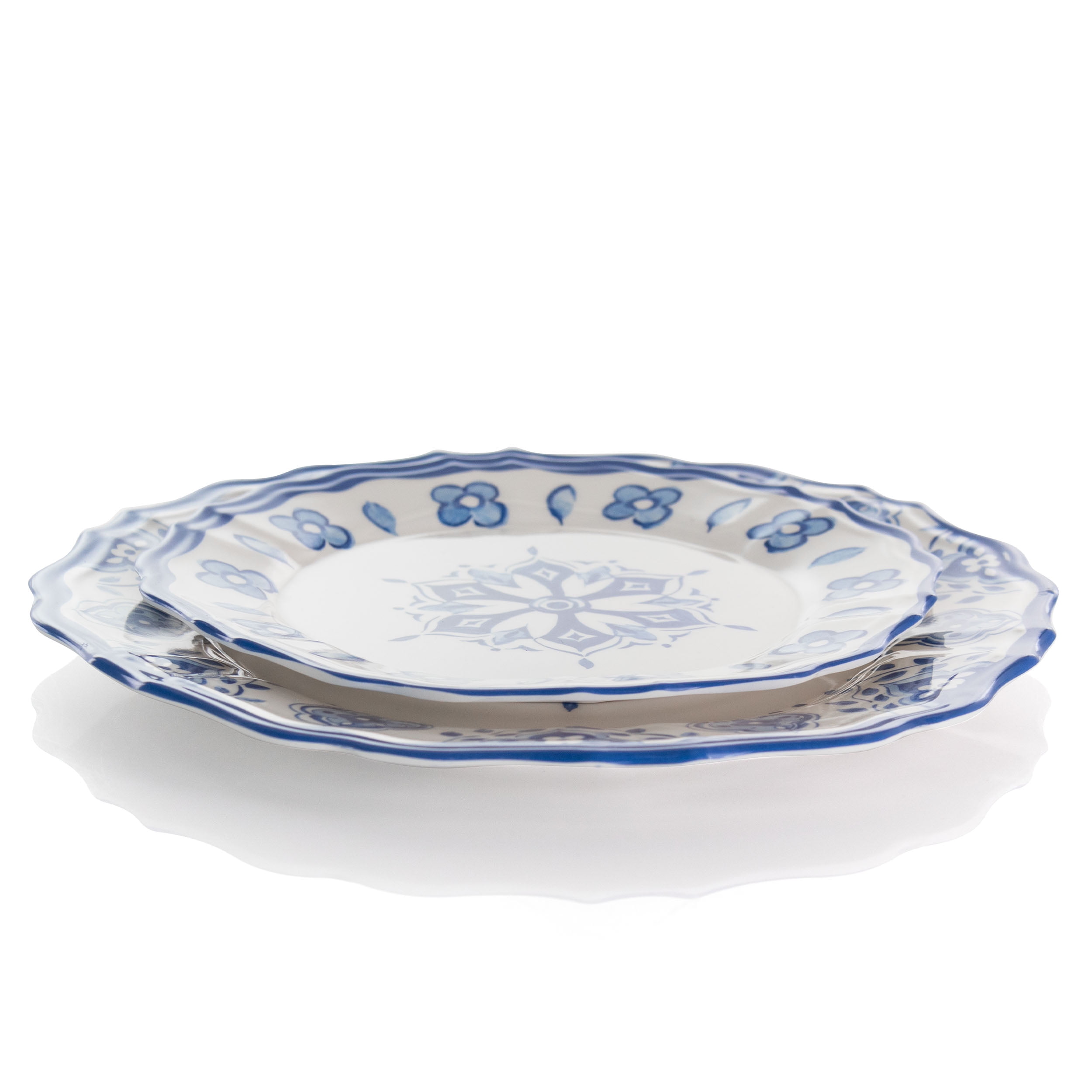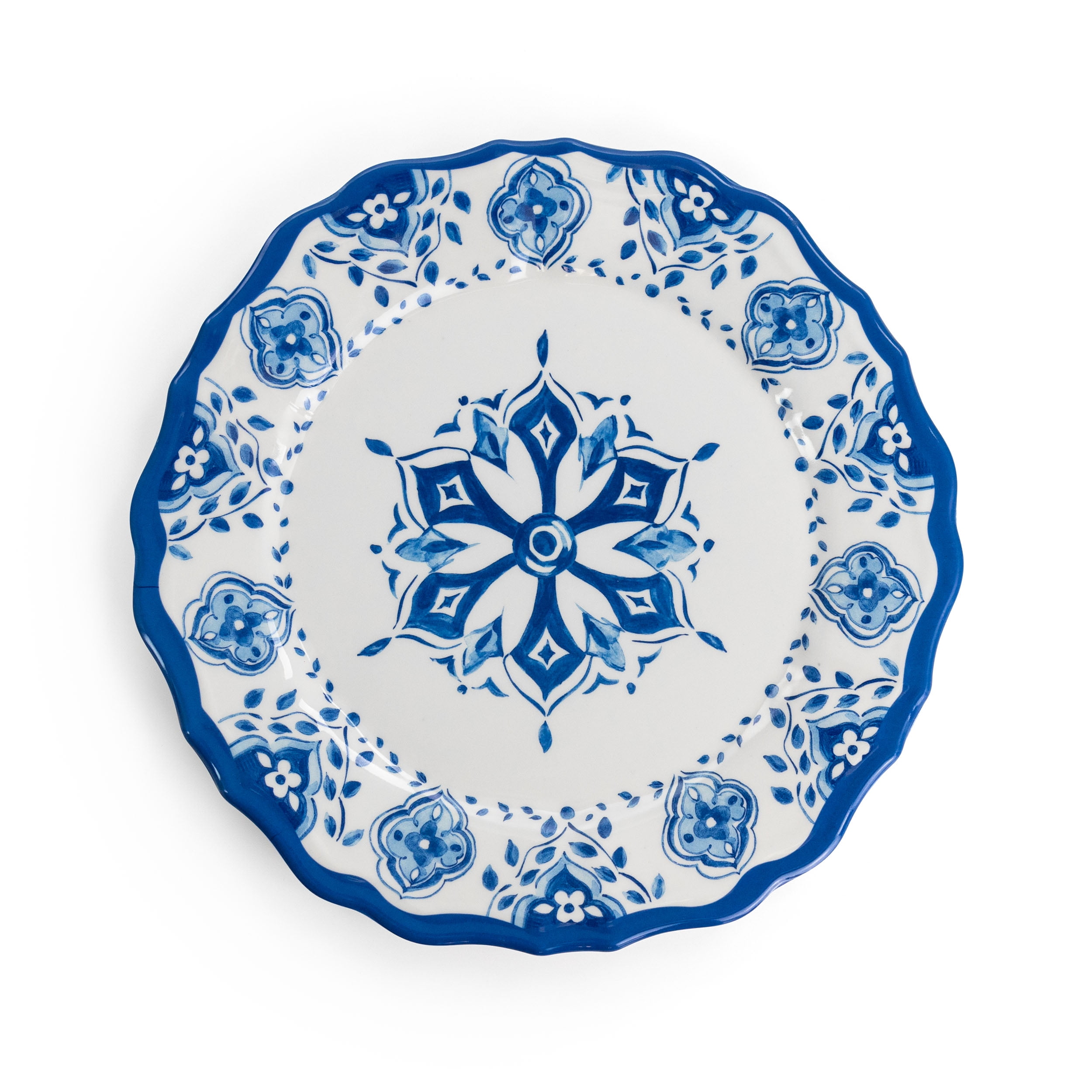 Elama Blue Garden 12 Piece Scalloped Lightweight Melamine Dinnerware Set in Blue