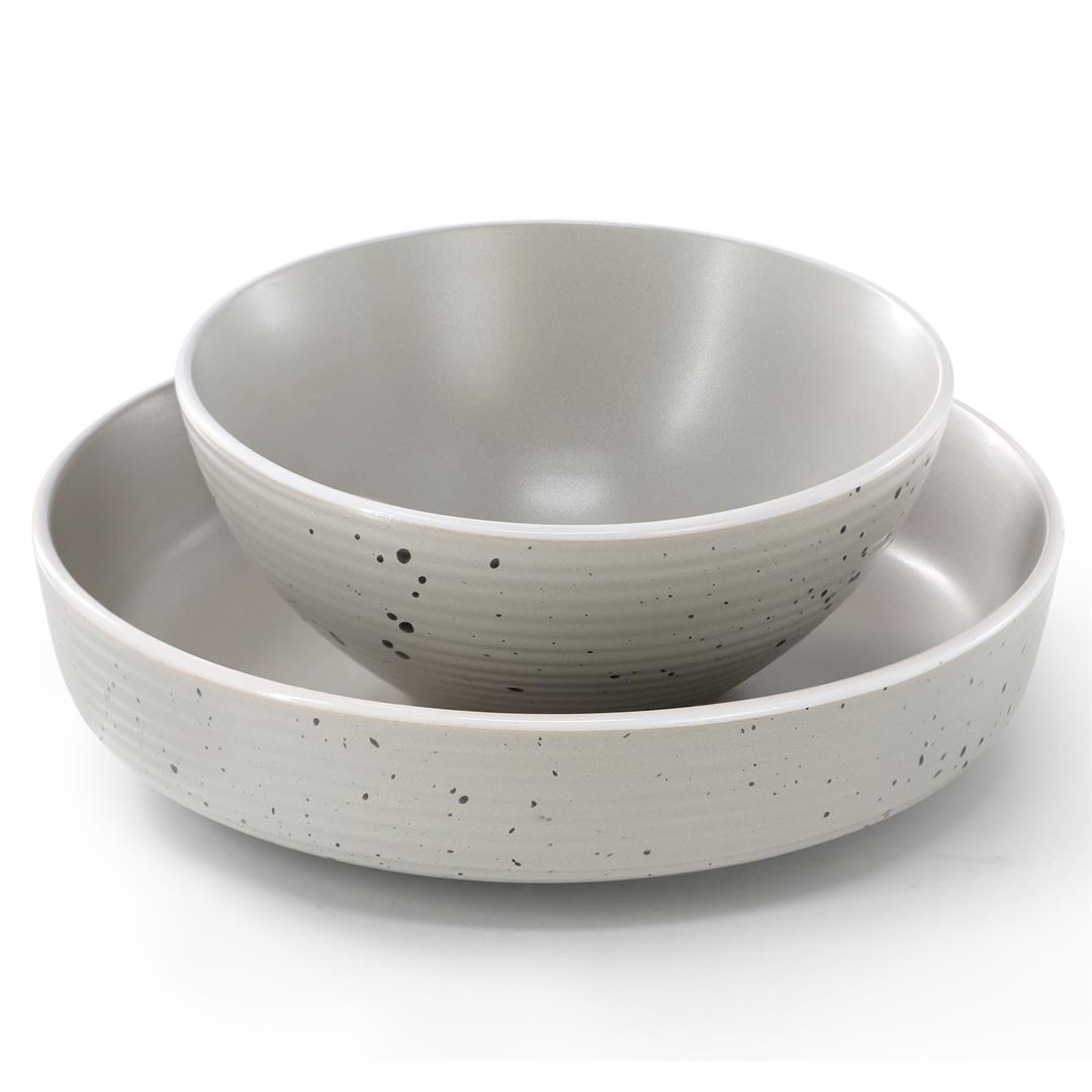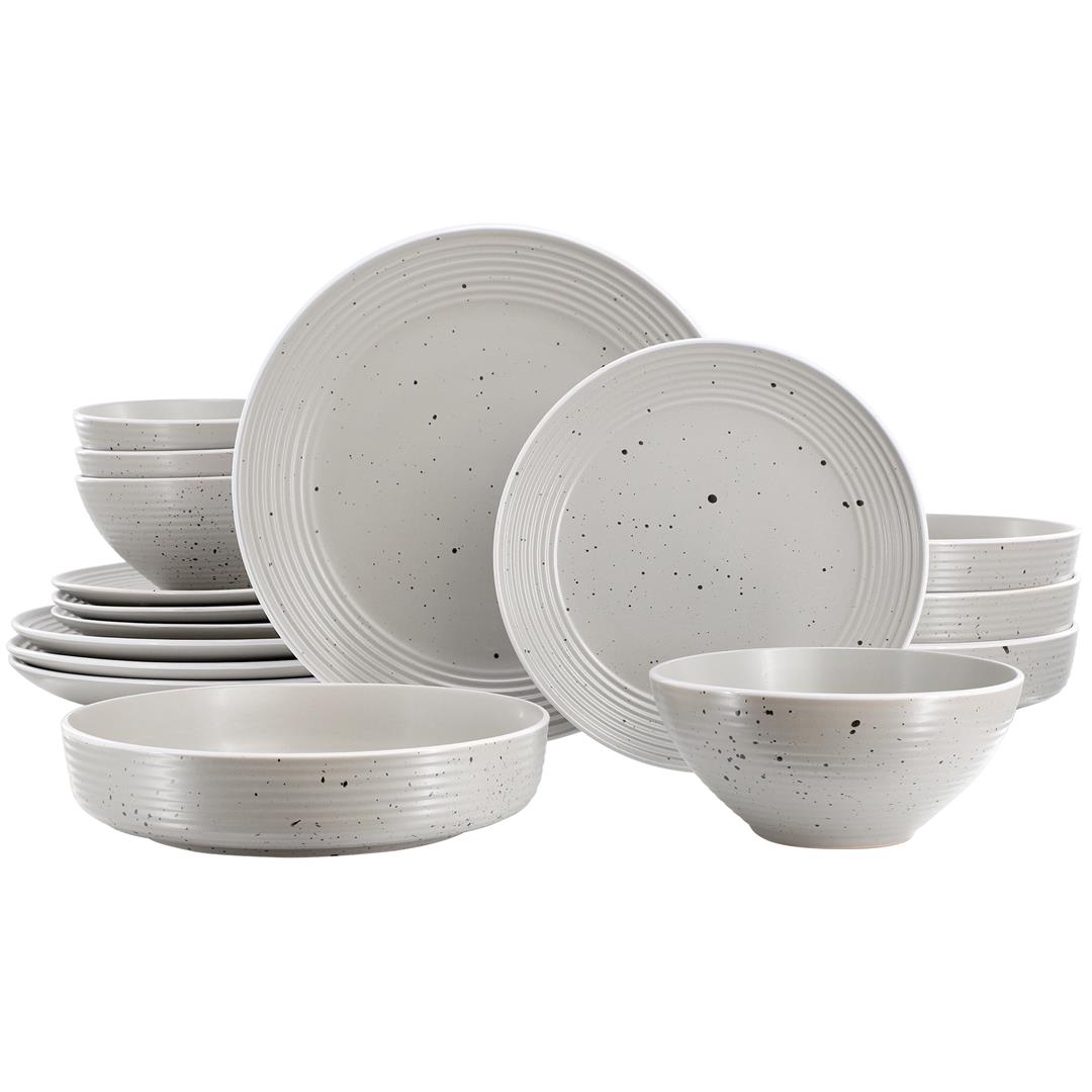 Elama Emilia 16 Piece Double Bowl Stoneware Dinnerware Set in Light Gray