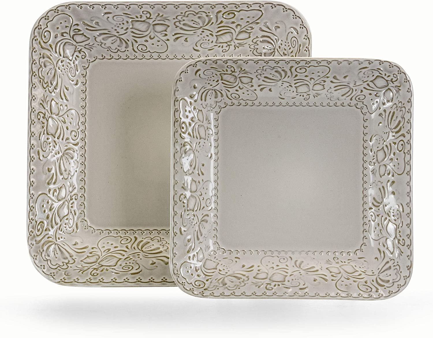 Elama Ivory Lotus 16 Pieces Square Dinnerware Set