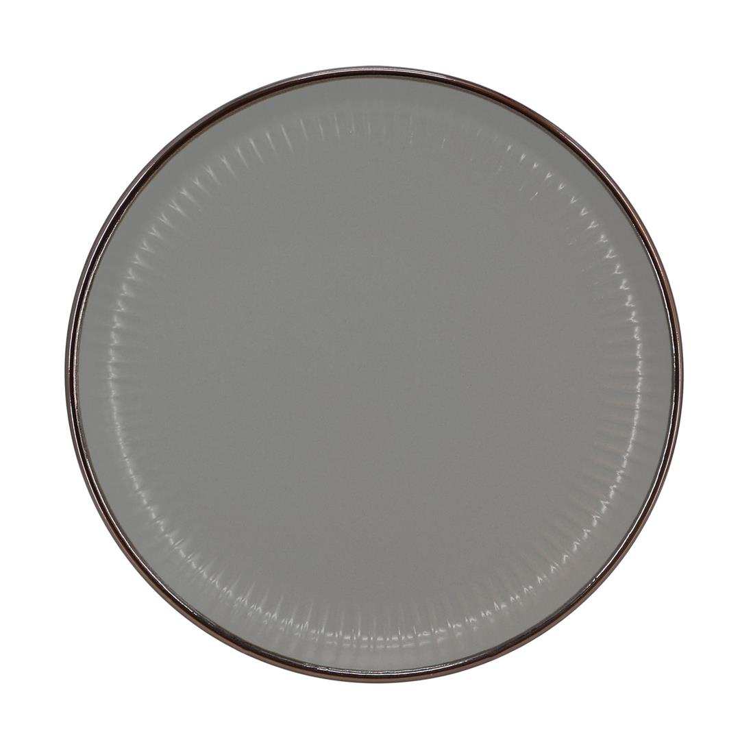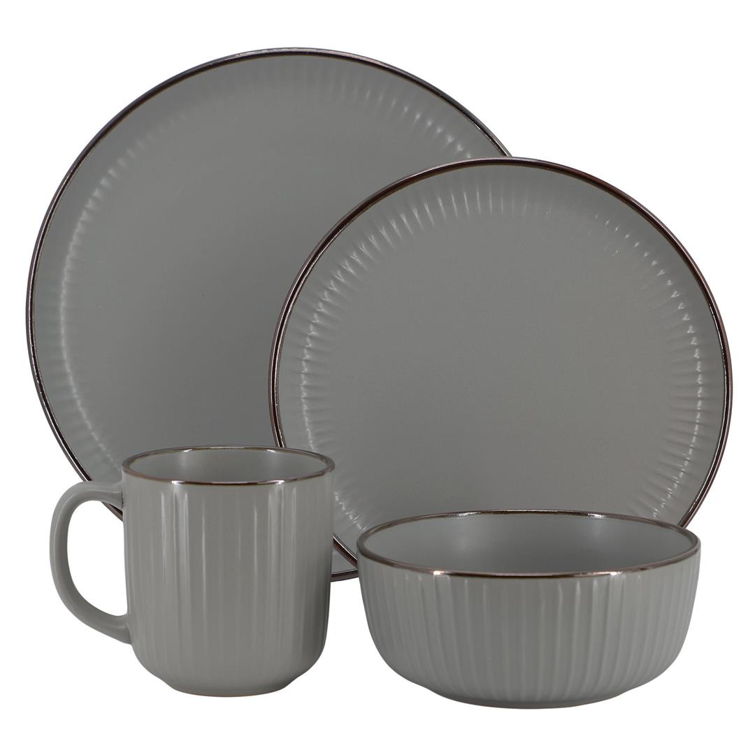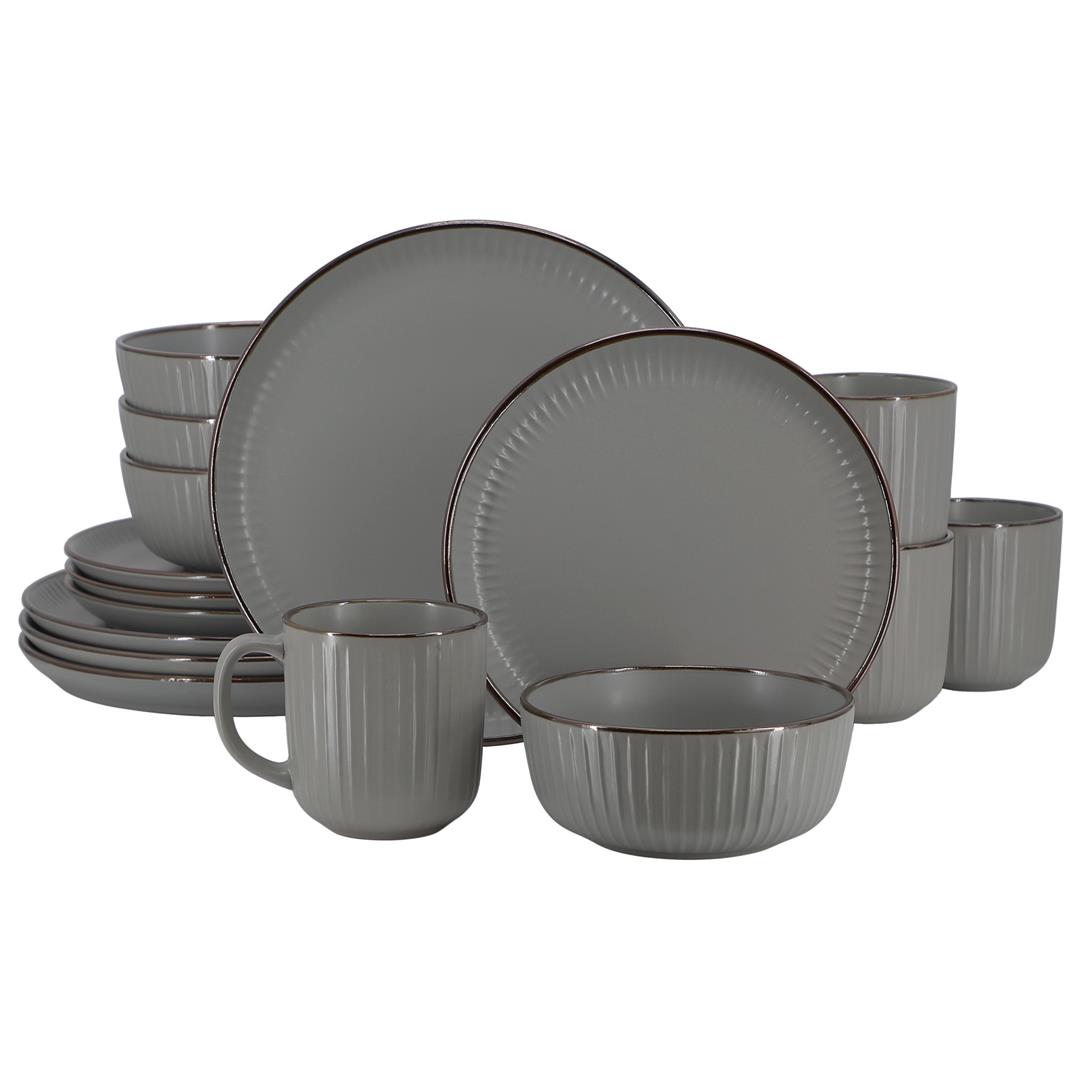Elama Leo 16 Piece Stoneware Dinnerware Set In Dark Gray