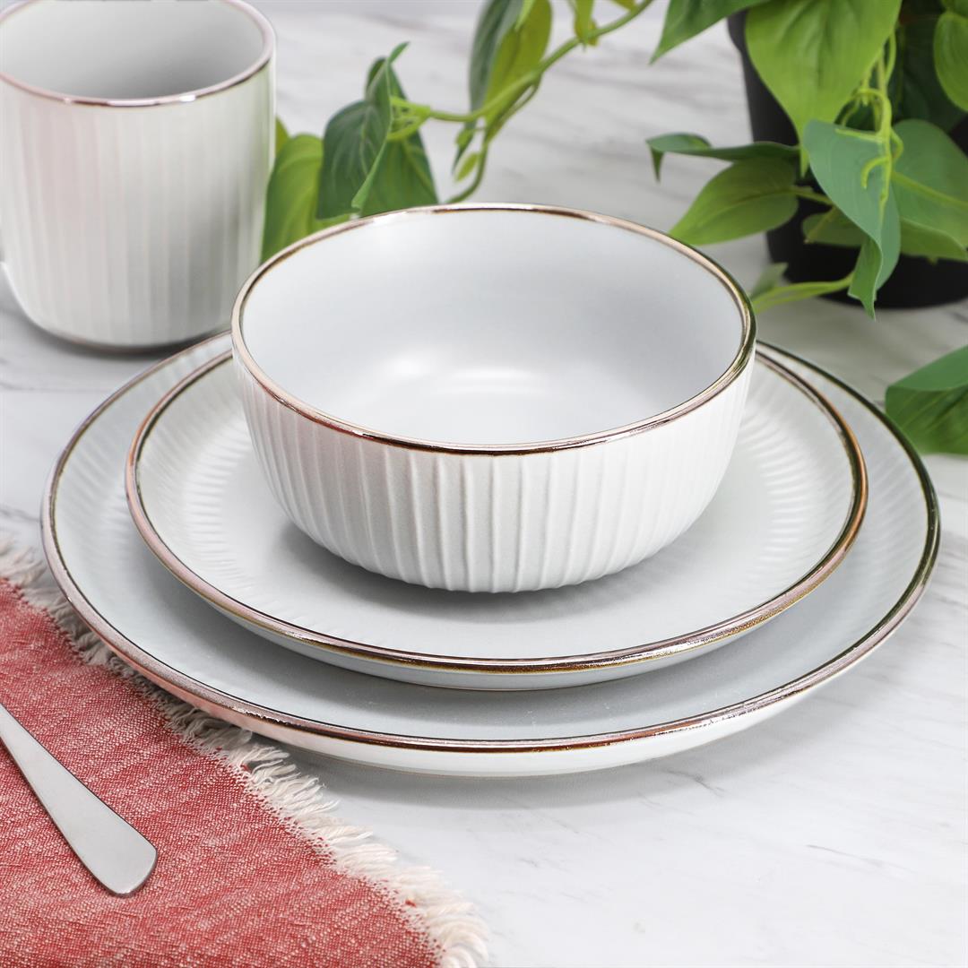 Elama Leo 16 Piece Stoneware Dinnerware Set In White