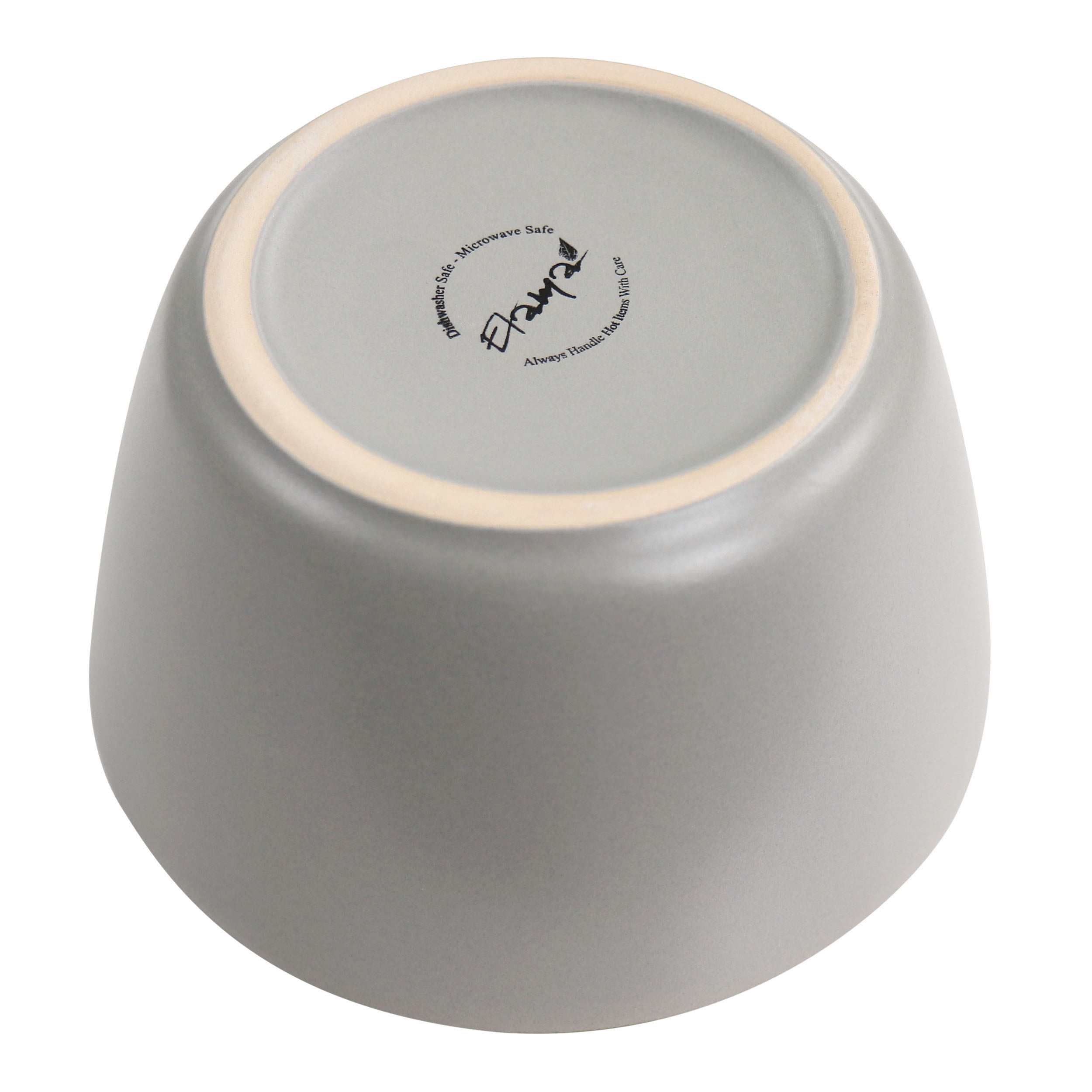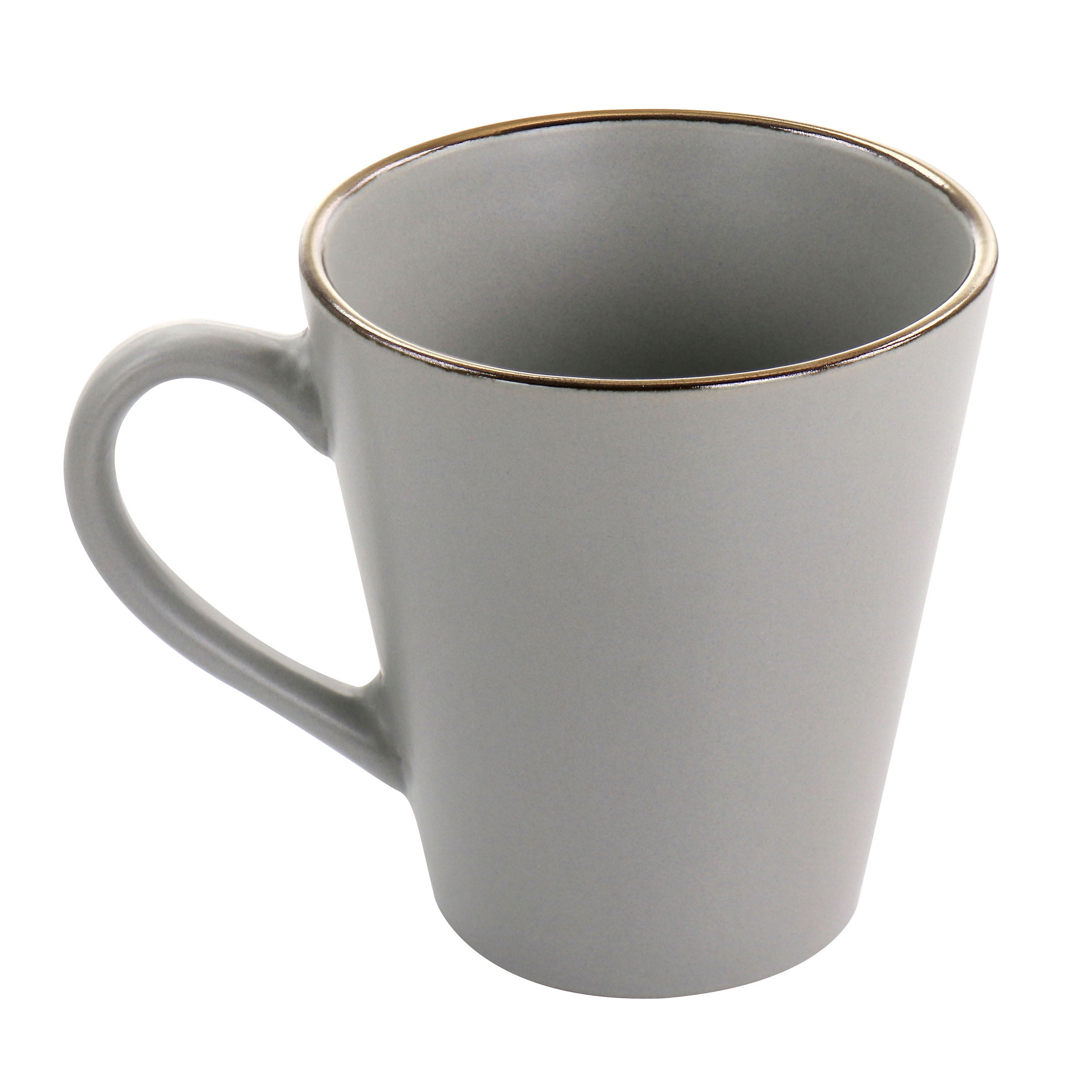 Set: 16 Piece Dinnerware Material: Stoneware Color: Matte Slate Pattern: Flat, Raised Rim, Gold Trim Shape: Round Microwave Safe Dishwasher Safe Includes: Four 10.5 Inch Dinner Plates Four 8 Inch Dessert Plates Four 5.6 Inch Bowls Four 12 Ounce Mugs Per Item Measurements: Dinner Plate: Dessert Plate: Bowl: 23 Ounces Mug: