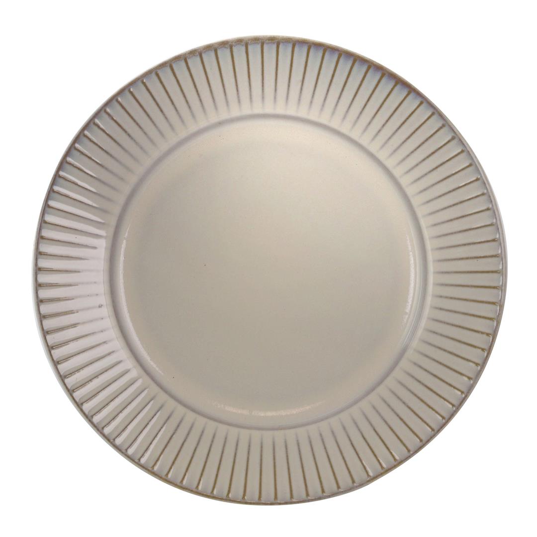 Elama Market Finds 16 Piece Round Stoneware Dinnerware Set in Embossed White