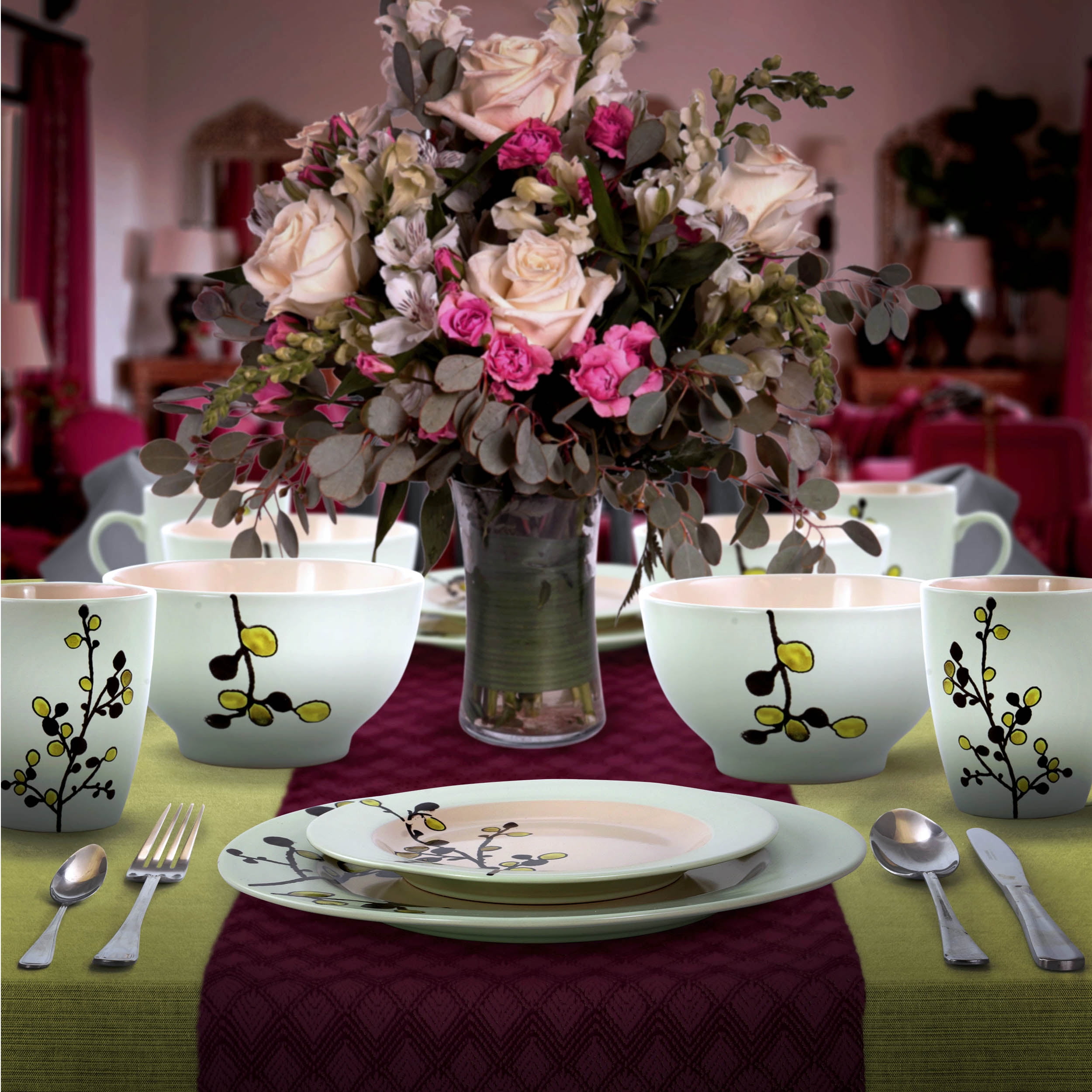 Elama Retro Bloom 16 Piece Round Stoneware Dinnerware Set in Green