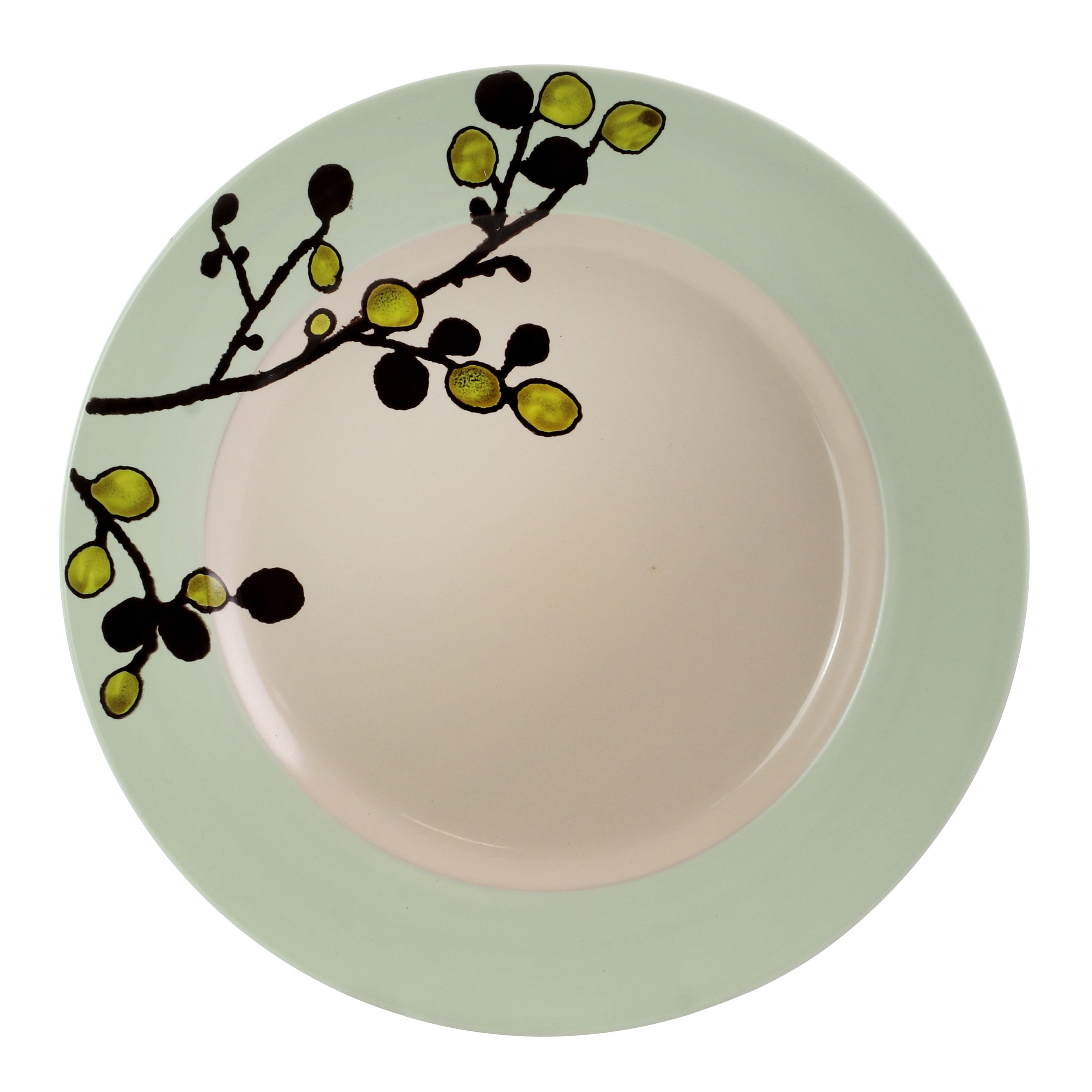 Set: 16 Piece DinnerwareMaterial: StonewareColor: GreenPattern: OliveShape: RoundMicrowave SafeDishwasher SafeIncludes:Four 11″ Dinner PlatesFour 8″ Dessert PlatesFour 15oz. BowlsFour 10oz. MugsPer Item Measurements:Dinner Plate: 11″ diameter, 1″ height, 1.85lbs. weightDessert Plate: 8″ diameter, 0.5″ height, 0.80lb. weightBowl: 5.5″ diameter, 3″ height, 12oz. capacity, 0.95lbs. weightMug: 3.5″ diameter, 4″ height, 3″ handle, 10oz. capacity, 0.70lb. weight