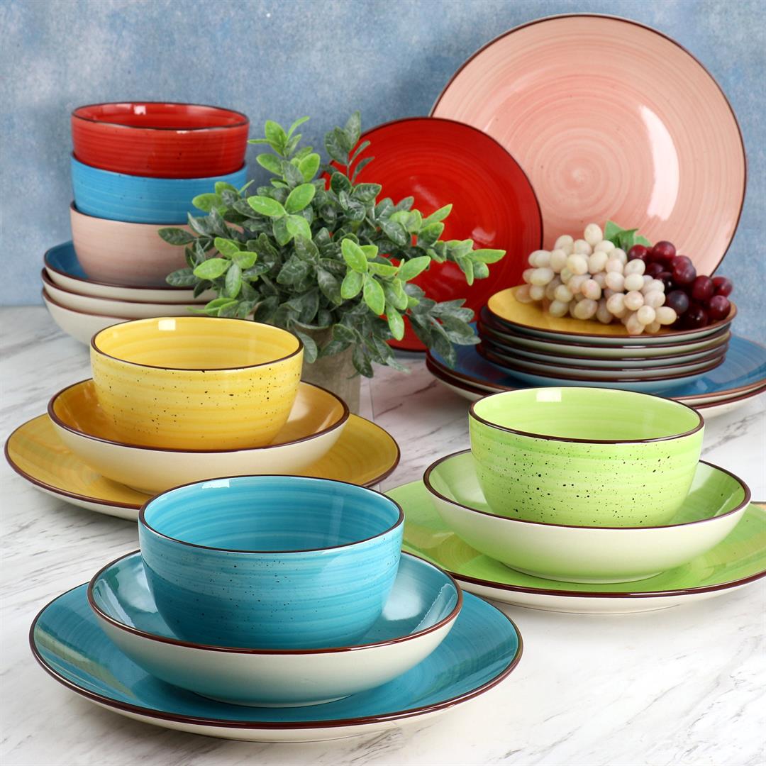 Elama Sebastian 24 Piece Double Bowl Stoneware Dinnerware Set in Assorted Colors