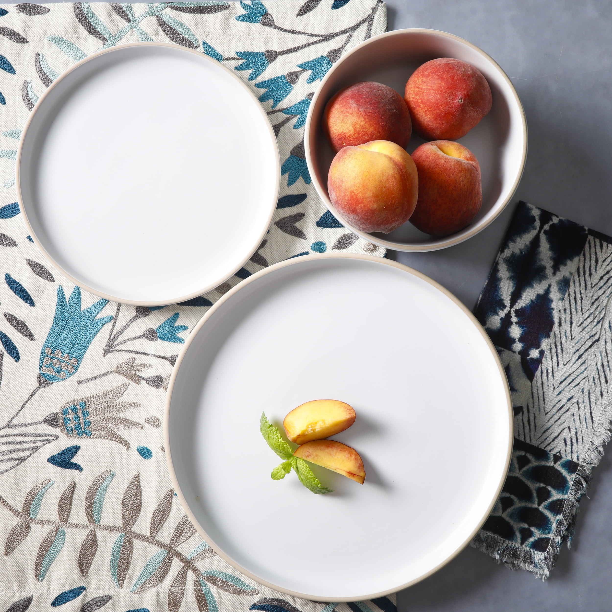 4 – 10.5″ dinner plates 4 – 8″ dessert plates 4 – 6.3″ cereal bowls Made from durable stoneware ceramic Perfect for everyday use or special occasions Features modern matte glaze and raw-style rim details Straight-sided shapes creates a clean, sleek feel Stackable Great for mixing and matching Adds casual sophistication to any table Dishwasher safe