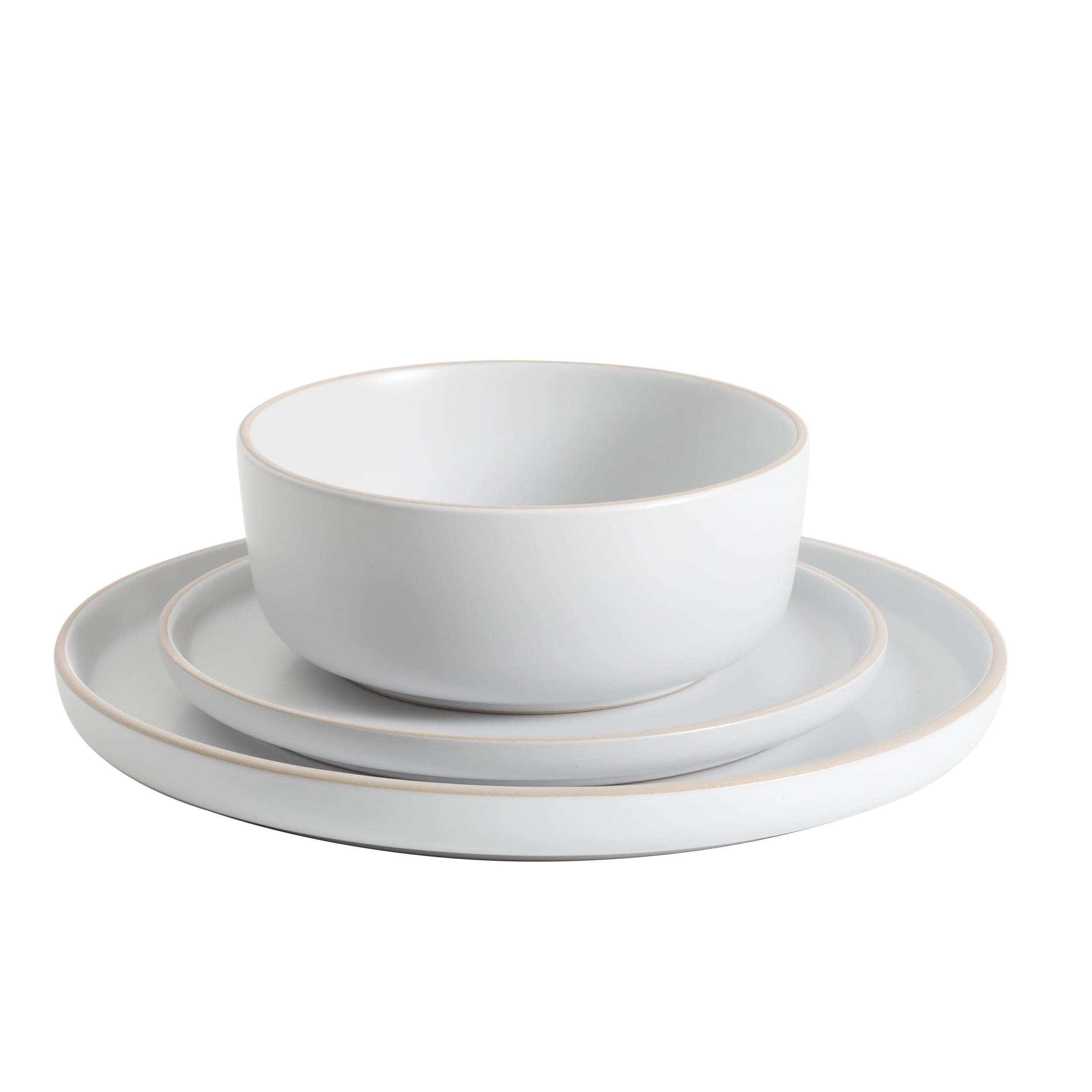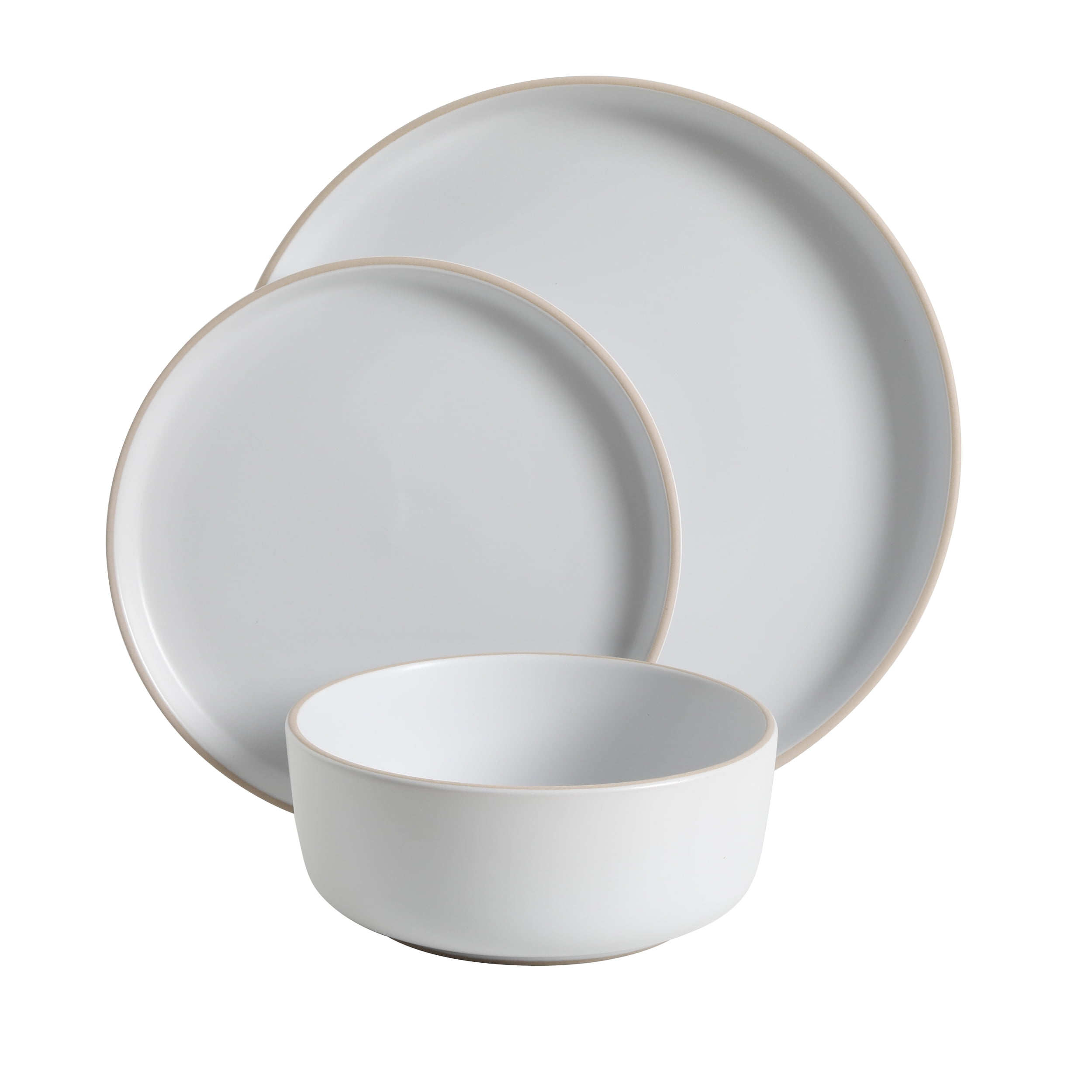 Elevate your dining table and the special moments you spend there with the Gibson Home Everyday Essential 12-Piece Dinnerware Set. Made from durable stoneware and finished in a modern matte glaze, this dish set brings a sleek and sophisticated feel to any dining table. The rich white color accented with raw rim details will make your meals look cookbook-ready, and straight-sided shapes provide a contemporary twist to this classic dinnerware collection. Perfect for everyday use or for special occasions, this stylish Gibson dinnerware lends itself well to mix and match decor, creating opportunities to layer into eye-catching spreads on any table. Dishwasher and microwave safe for extra convenience and easy cleanup, these plates and bowls will add function and fashion to your kitchen and dining room. Includes place settings for four. This versatile plate set brings it all together to set the perfect stage for meaningful meals with family and friends. Add this set to your dinnerware collection and experience modern dining at home with the Gibson Home Everyday Essential 12-Piece Dinnerware Set.