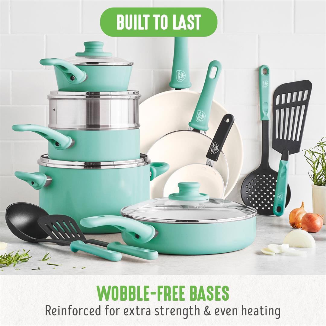 GreenLife 18-Piece Ceramic Nonstick Cookware Set, Dishwasher Safe, Soft Grip Handles, Turquoise