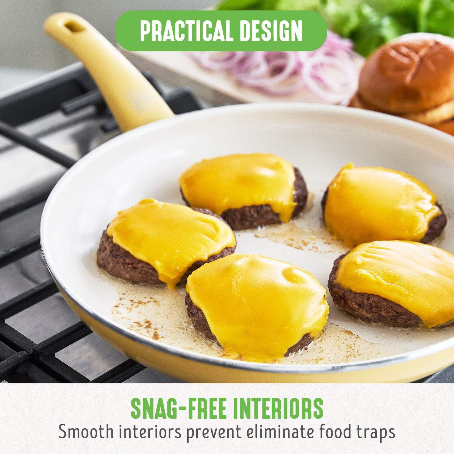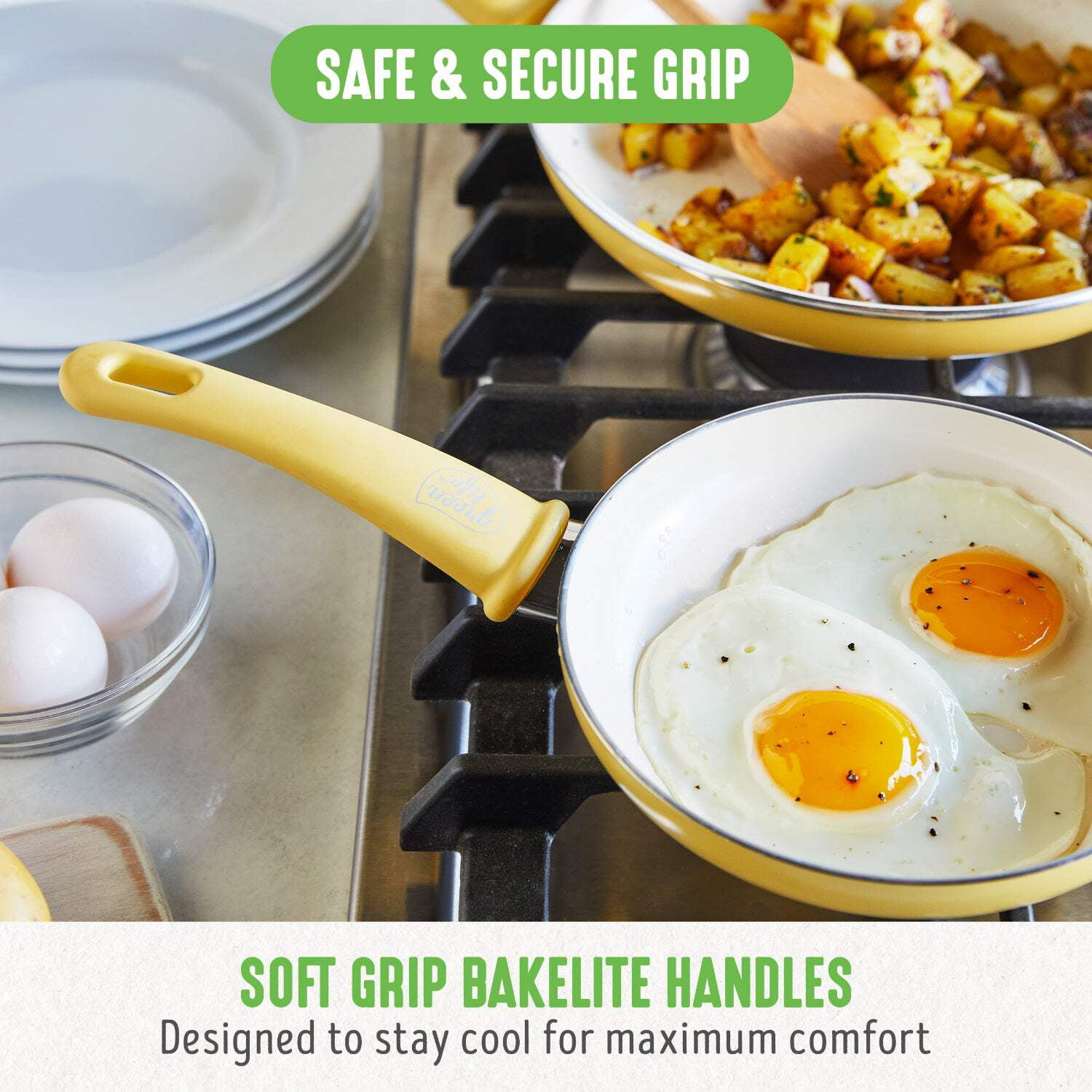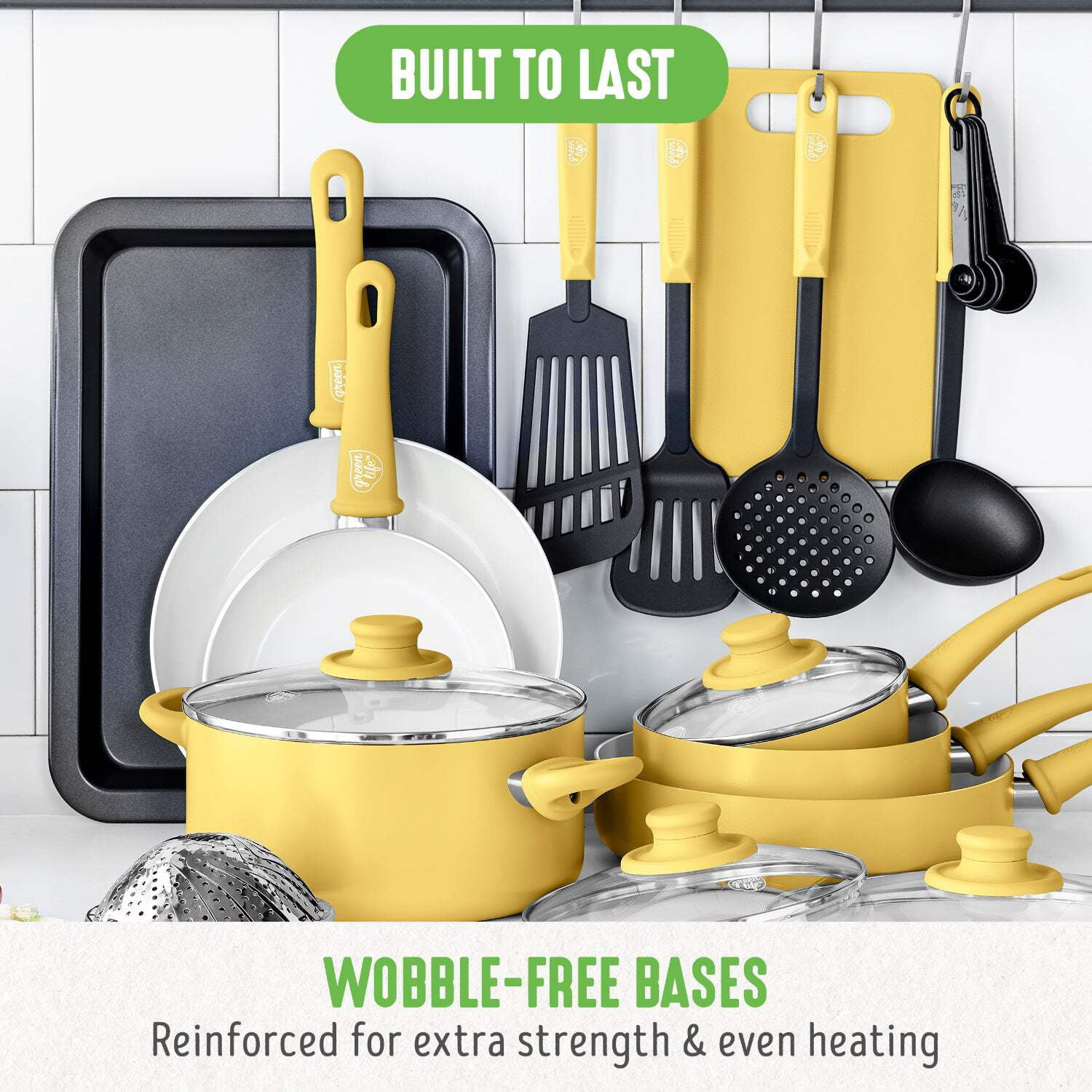 GreenLife 18-Piece Soft Grip Toxin-Free Healthy Ceramic Non-Stick Cookware Set, Yellow, Dishwasher Safe