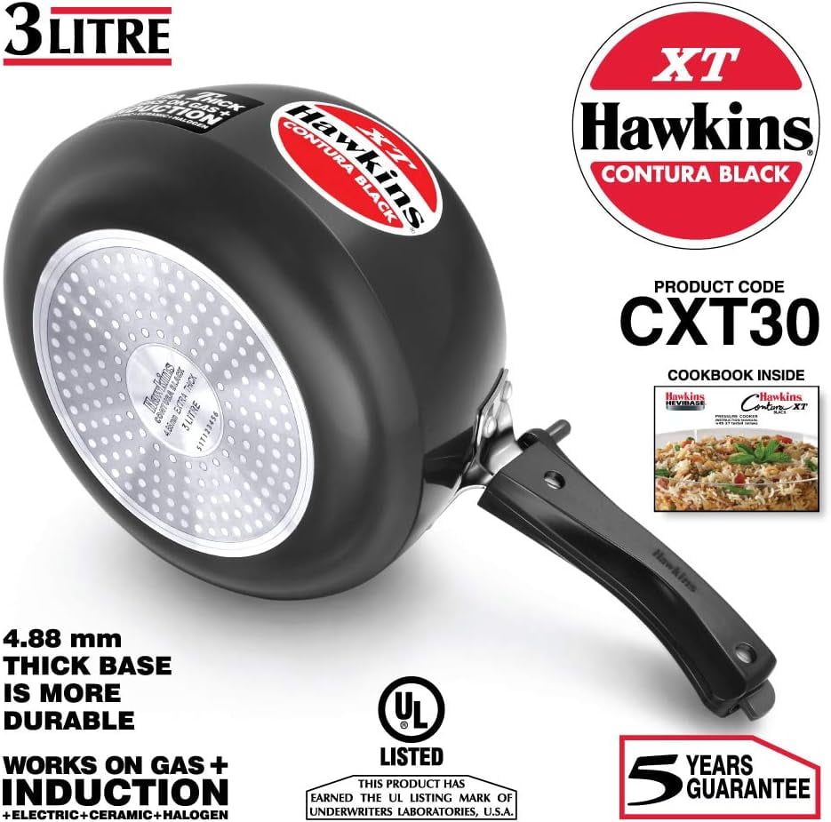 Hawkins Contura Black XT Hard Anodized Induction Compatible Extra Thick Base Pressure Cooker, 3 Liter