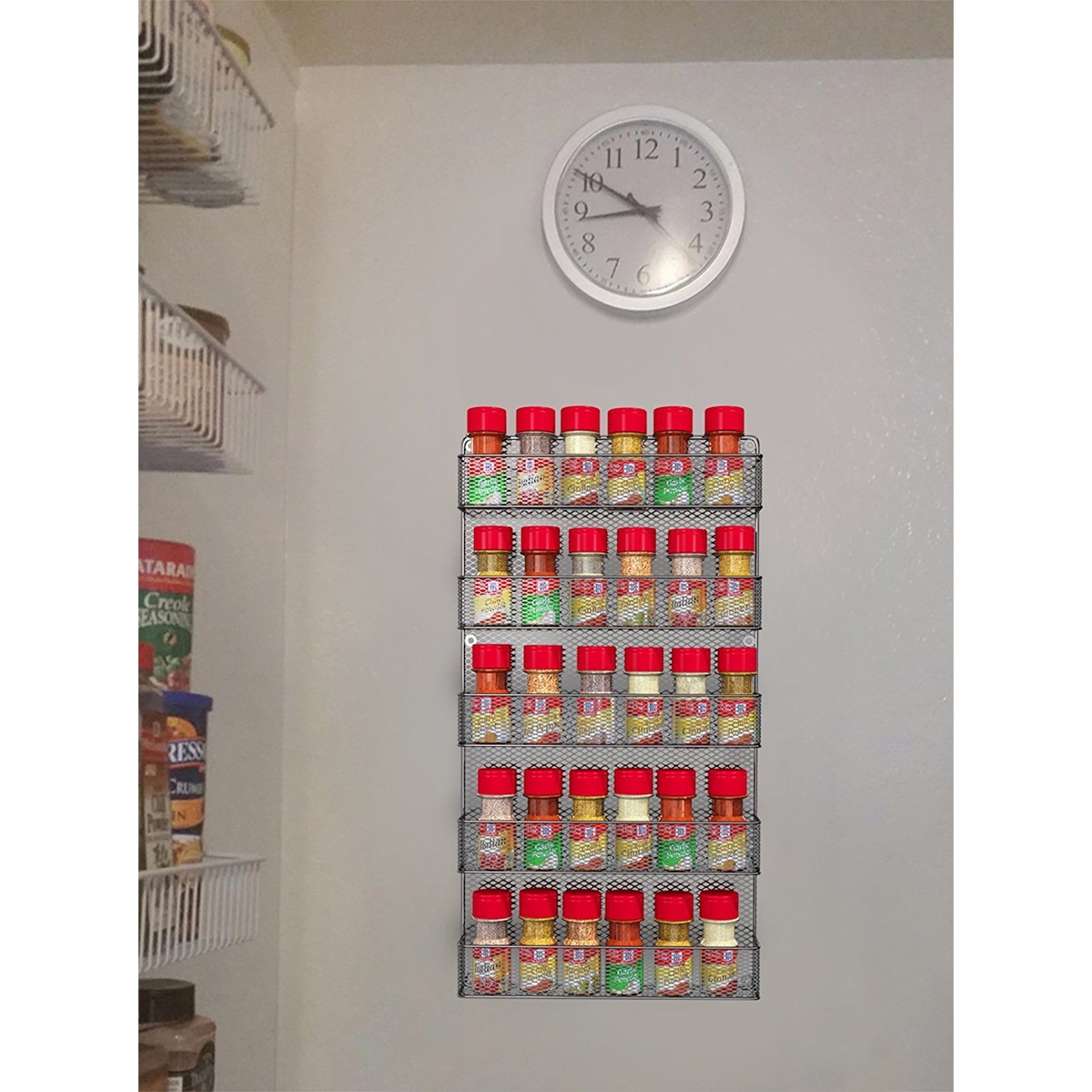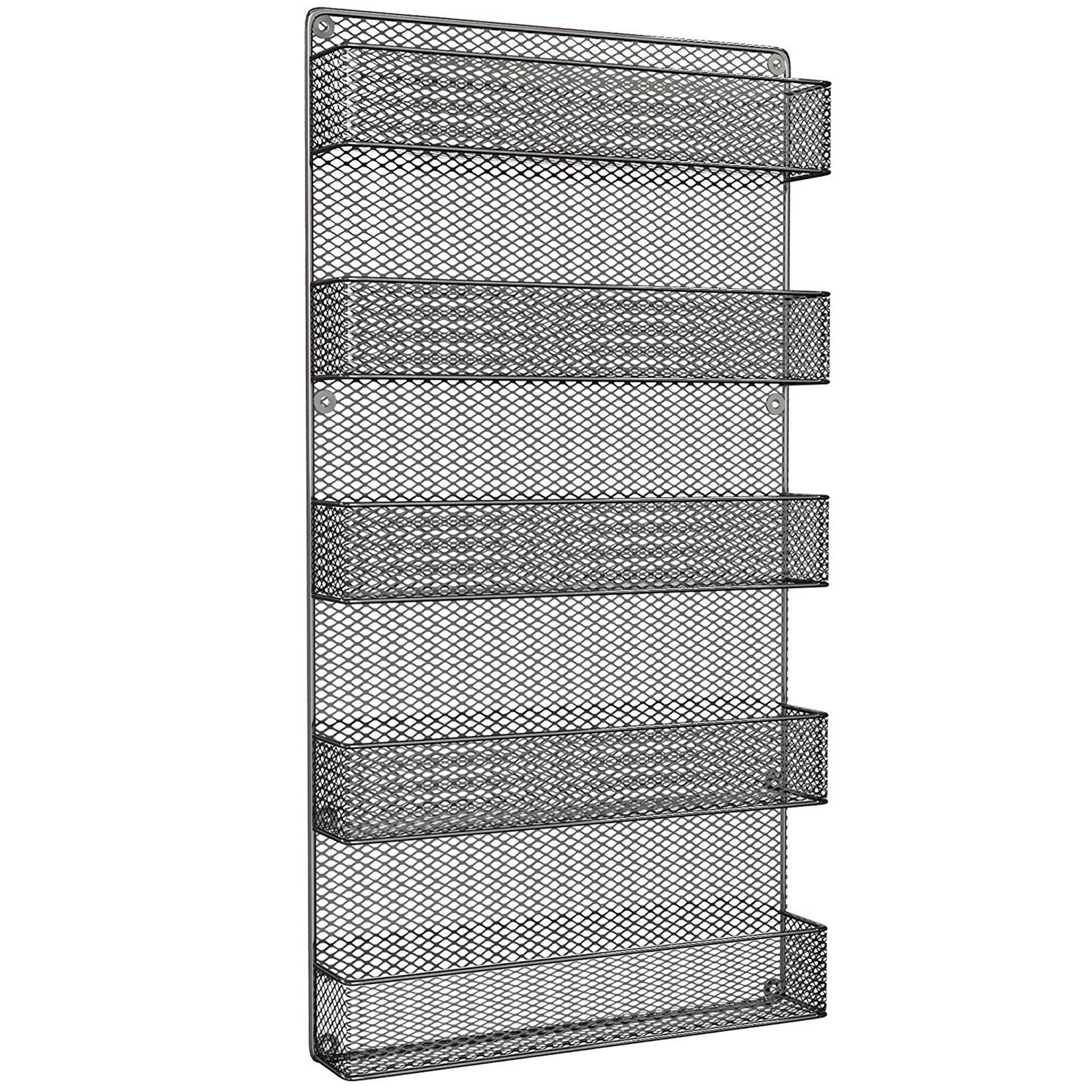 SPACE-SAVING- The spice rack is a space saving essential for your kitchen, pantry or cabinets! Keep your spices neatly organized, and your cabinets clutter free with this convenient spice storage solution. 5-TIERS- This handy storage rack features 5 shelves that can accommodate most standard spice jars and containers. These open vertical shelves are perfect for storing your most used spices in an easily accessible way RUSTIC DESIGN- The rustic wire spice rack is not only a beautiful addition to any home dcor, its also a useful organization option for your kitchen! This spice holder is a practical and stylish way to store your herbs, spices and seasonings! EASY INSTALLATION- Installation is a snap, as the rack comes equipped with the necessary mounting screws. PRODUCT DETAILS- Material: Metal. Dimensions: (H)26.7 x (L)17.3 x (W)3.7. Mounting screws included.