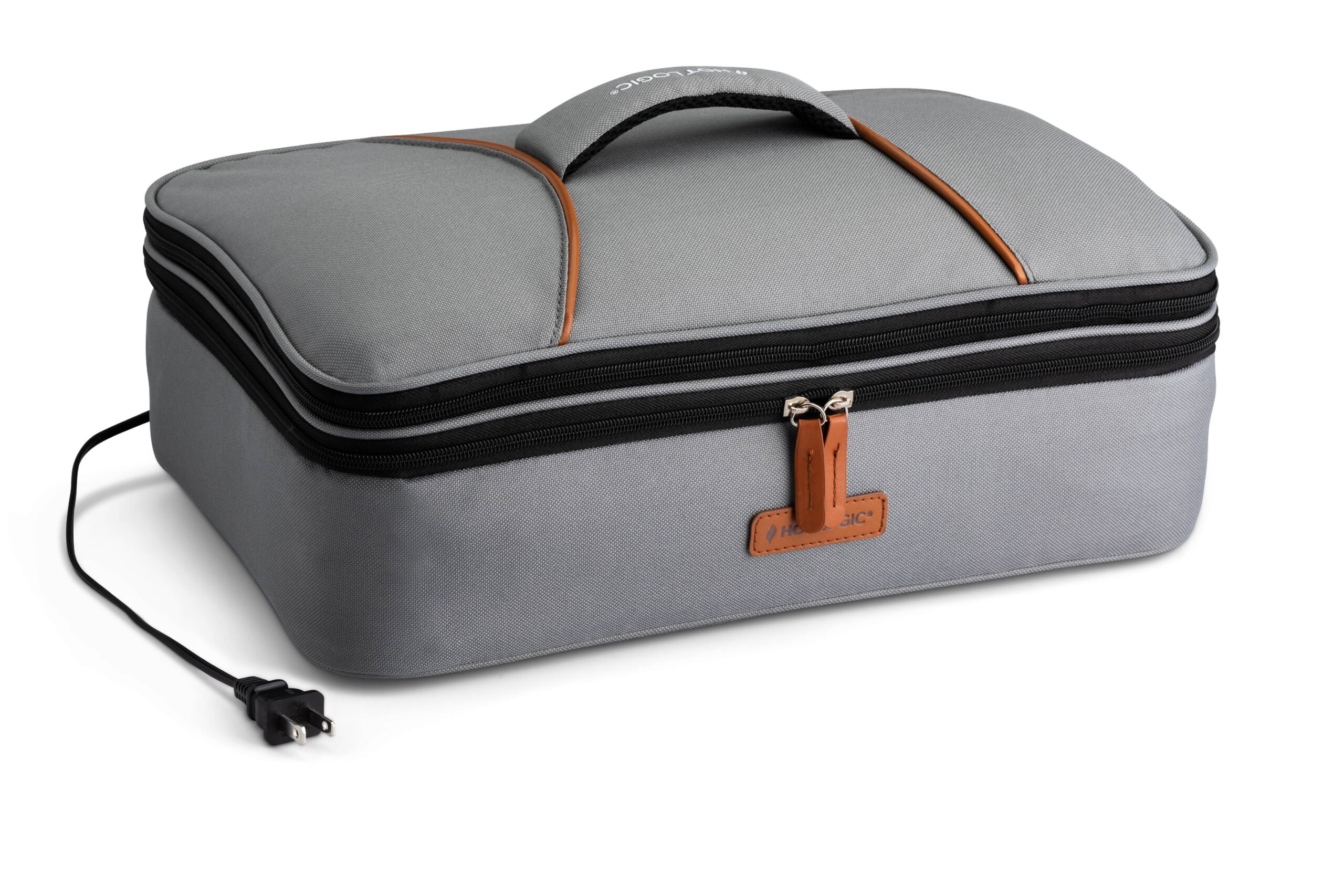 Reheat your favorite meals, leftovers, and casseroles without worry with this warming lunch bag that conveniently sports a 12V plugin Ideal for preparing and transporting healthy meals and leftovers for in the office, while traveling, school, potlucks, and camping Evenly cook or reheat your meal without worrying about burning or overcooking without the need for monitoring Unzips and expands into a handy tote for carrying non-perishable food items, utensils, tableware, and other accessories Compatible with most flat-bottom containers with sealable lids, including glass, plastic, tupperware, metal, aluminum foil, and cardboard Simply just place your meal inside, plug it in, and go about your day; Holds temp for up to 12 hours Color: Gray Dimensions (L x W x H): 16.00 x 10.50 x 5.50 inches