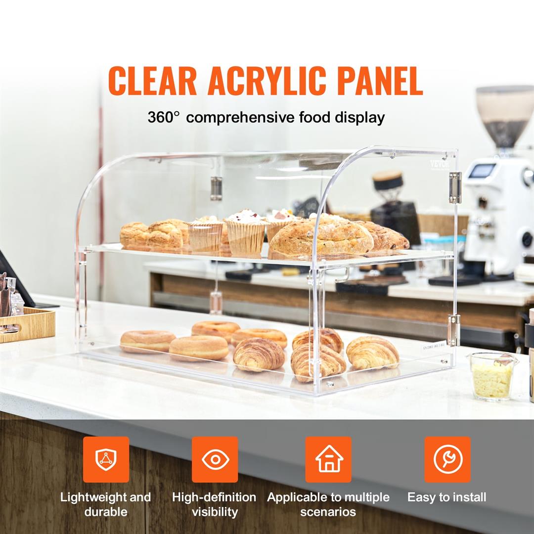 KFFKFF 2-Level Acrylic Bakery Showcase, Countertop Display with Back Door Entry & Adjustable Shelves for Pastries, Donuts, Bagels, and Cakes, 22″x14″x14″, Maintains Freshness