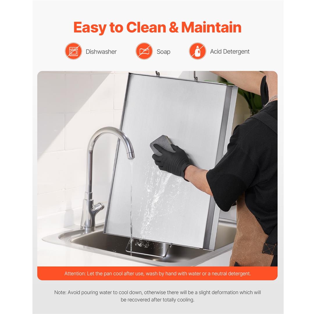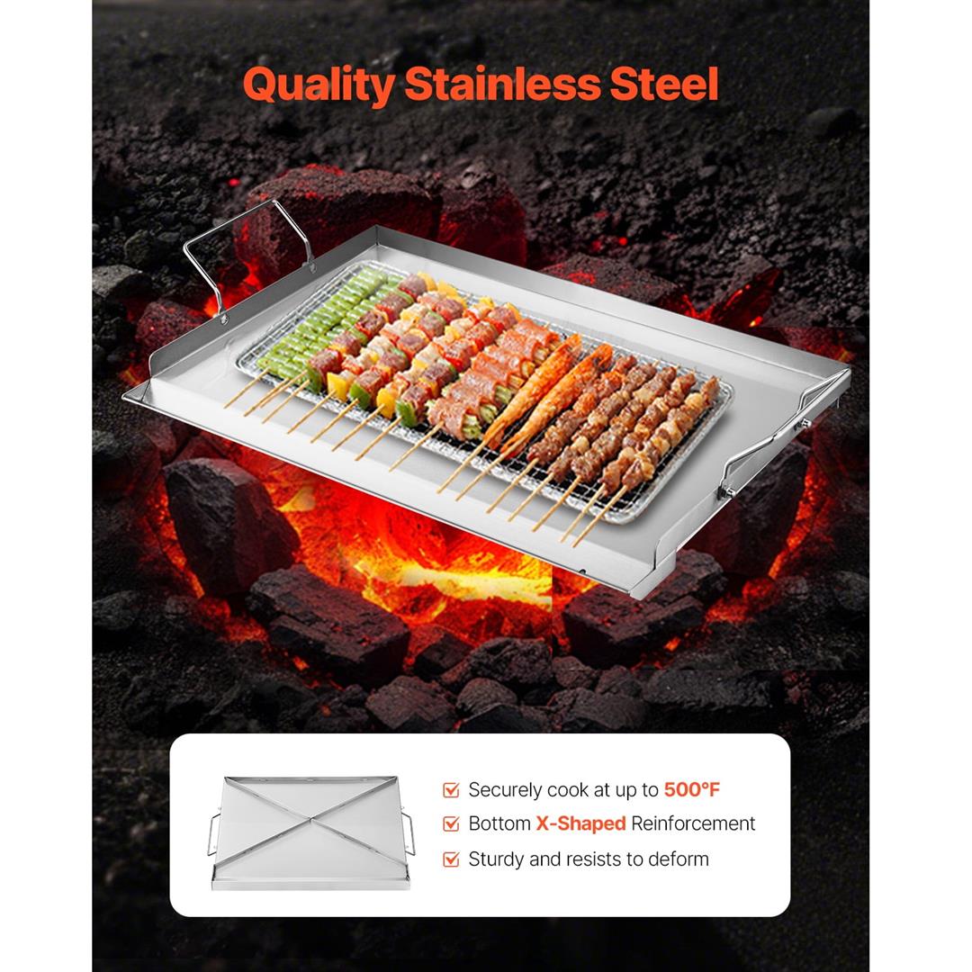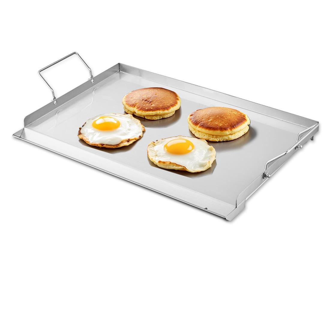Durable Stainless Steel Construction: Crafted from high-quality stainless steel, this griddle for gas grill is built to withstand high temperatures up to 500, allowing you to cook with confidence. Enhanced Stability and Durability: The reinforced x-shaped bottom design of this griddle prevents deformation, ensuring long-lasting performance and stability during cooking. Convenient Grease Management: Say goodbye to messy cooking surfaces. The grease trough and drip hole effectively drain excess oils, keeping the cooking area clean and promoting healthier meals. Secure and Spill-Free Cooking: The thoughtful sidewalls of this griddle help keep food in place, preventing spills and making cooking safer and more enjoyable. Spacious Cooking Area: With its large cooking surface, this griddle provides ample space to cook multiple servings at once, making it perfect for family meals or entertaining guests. Easy Cleaning and Maintenance: The cast iron construction of this griddle is not only durable but also easy to clean. Simply wipe it down with a cloth after use to preserve its surface. Versatile Compatibility: Whether you have a gas, electric, or induction stovetop, this griddle is suitable for all. Its sturdy design ensures consistent heat distribution and excellent results on any cooking surface.
