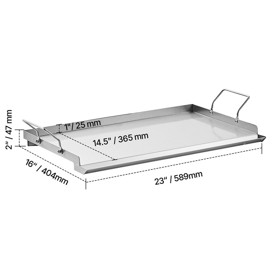 Product Description The Versatile Griddle Pan for All Your Cooking Needs Introducing the KFFKFF Griddle Pan, the perfect solution for all your cooking needs. From breakfast to dinner, this stove top griddle is designed to deliver exceptional results. Its spacious and flat surface ensures even heat distribution, guaranteeing perfectly cooked meals every time. Crafted from durable materials, this griddle pan is built to last. Cleaning is a breeze, making it a convenient choice for busy kitchens. Whether you’re cooking indoors or outdoors, the KFFKFF Griddle Pan is a must-have addition to any kitchen. Designed for Durability Constructed with sturdy materials and reinforced with an x-shaped structure, this gas grill griddle is built to withstand high temperatures and regular use without warping or showing signs of wear. Spacious Cooking Area for Any Meal This griddle for stove tops provides ample space for cooking, allowing you to prepare large meals in one go. Whether you’re grilling multiple burgers, searing steaks, or making pancakes for the whole family, the generous surface area ensures that you can cook everything at once, saving you valuable time and effort. Versatile for Indoor and Outdoor Use Utilize this flat top griddle on any stovetop, grill, or campfire. Whether you’re cooking at home or enjoying the outdoors, this pan delivers reliable performance for all your culinary needs. Effortless Cleaning in No Time Featuring a non-stick surface or pre-seasoned cast iron, cleaning up after meals is a breeze. Spend less time scrubbing and more time enjoying your food! Consistent Cooking Results Every Time Experience even heat distribution across the entire surface, ensuring perfectly cooked meals without any hot spots. An Ideal Gift for Cooking Enthusiasts This compact griddle makes a wonderful gift for anyone who loves to cook, from BBQ enthusiasts to home chefs. It offers both practicality and long-lasting durability, making it a thoughtful present for food lovers. Specifications Item Model Number: HH-SP003 Color: Original Steel Color Material: Stainless Steel Temp. Resistance: Max500F / 260C Cooking Area: 23×14.5″ / 585×365 mm Product Weight: 10 lbs / 4.65 kg 5 % Package Content 1 x Griddle Pan 2 x SS Griddle Spatulas (Perforated/Solid Design) 2 x Stainless Steel Handles 1 x Manual
