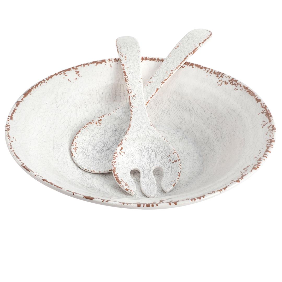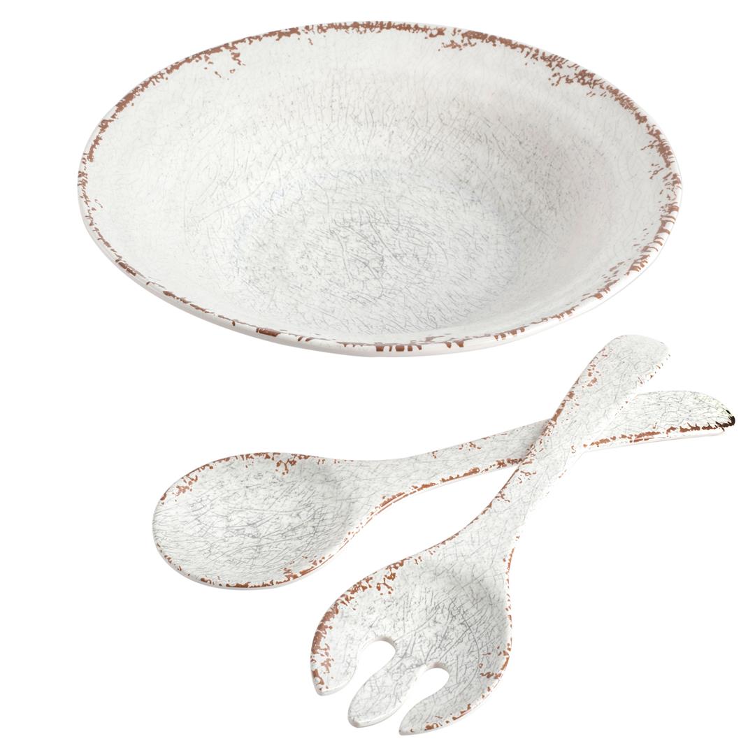 Laurie Gates Mauna 3 Piece Melamine Serving Bowl Set in White w Serving Utensils 135399.03 Give lunch some extra charm with the Laurie Gates Mauna 3 Piece Melamine Serving Bowl Set and its rustic styling. Featuring a crackled design, the serving pieces mimic a country side look with out the actual wear and tear. Made of shatter resistant melamine, the serveware set is perfect for outdoor gatherings and indoor parties. Includes a large 14 inch bowl and serving utensils to match. Enjoy bringing the set out to parks, backyards, or enjoy it at the dinner table. Laurie Gates Mauna 3 Piece Melamine Serving Bowl Set in White w Serving Utensil