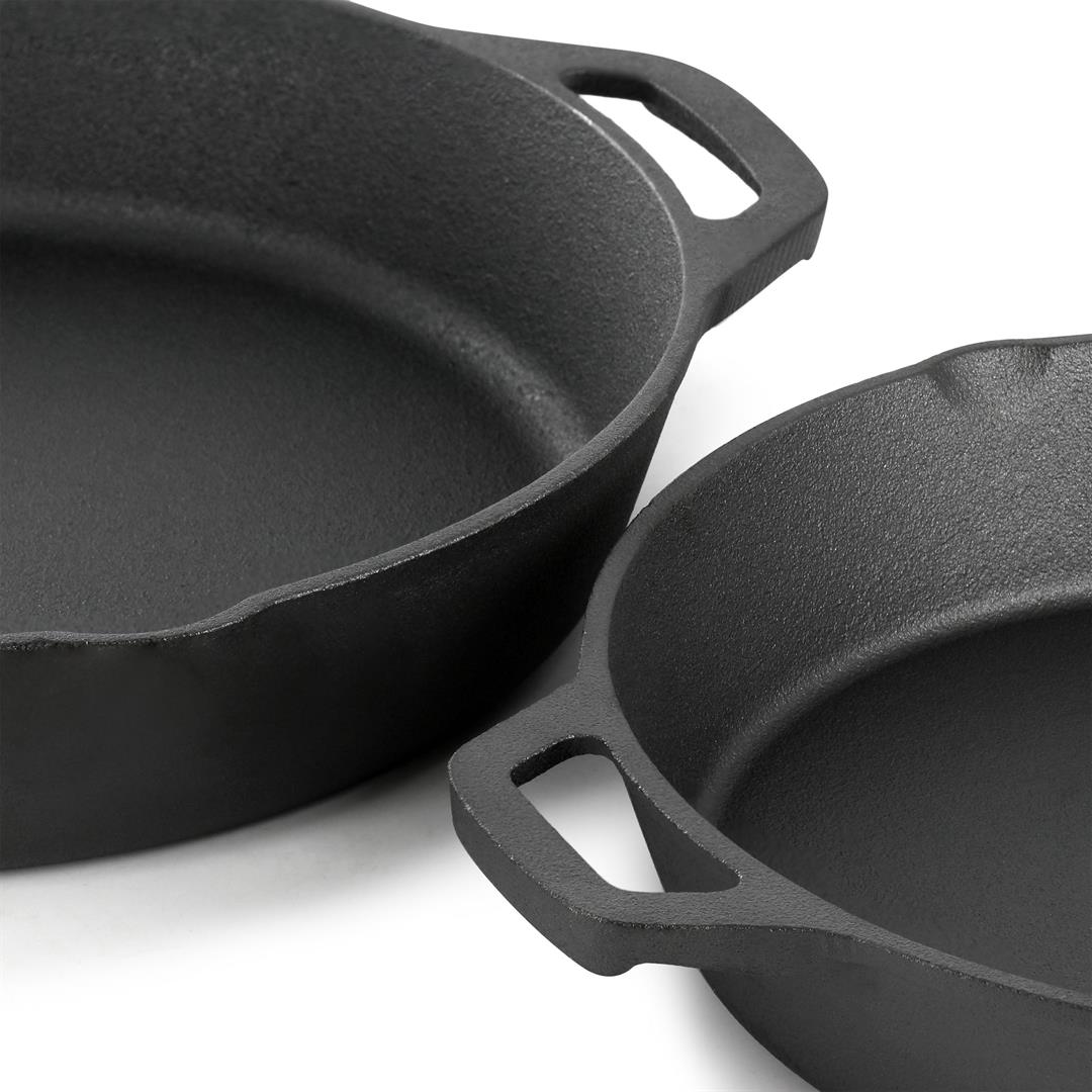 MegaChef 14 Piece Cast Iron Skillet Set with Tempered Glass Lids & Silicone Holders