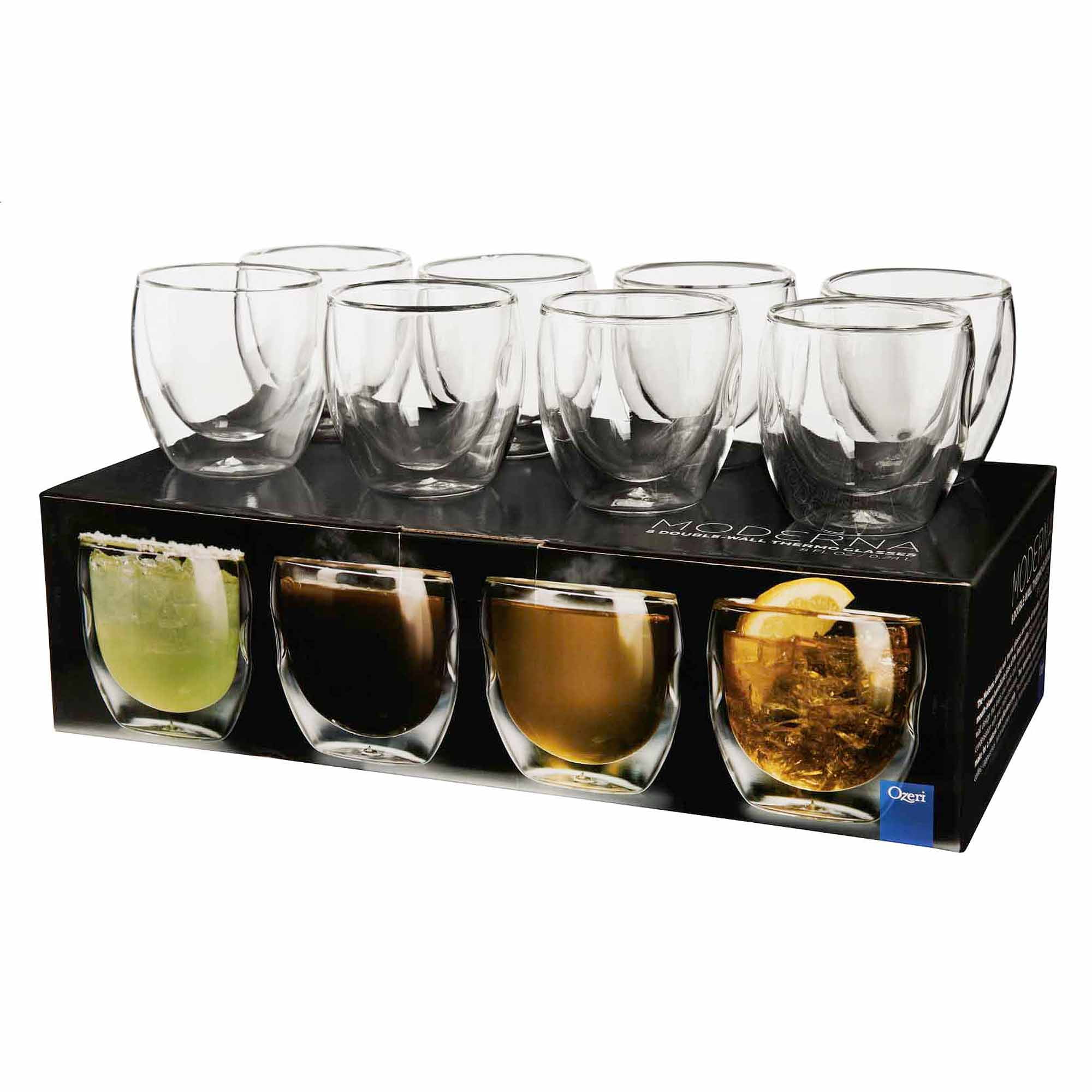 Moderna Artisan Series Double Wall 8 oz Beverage Glasses, Set of 8