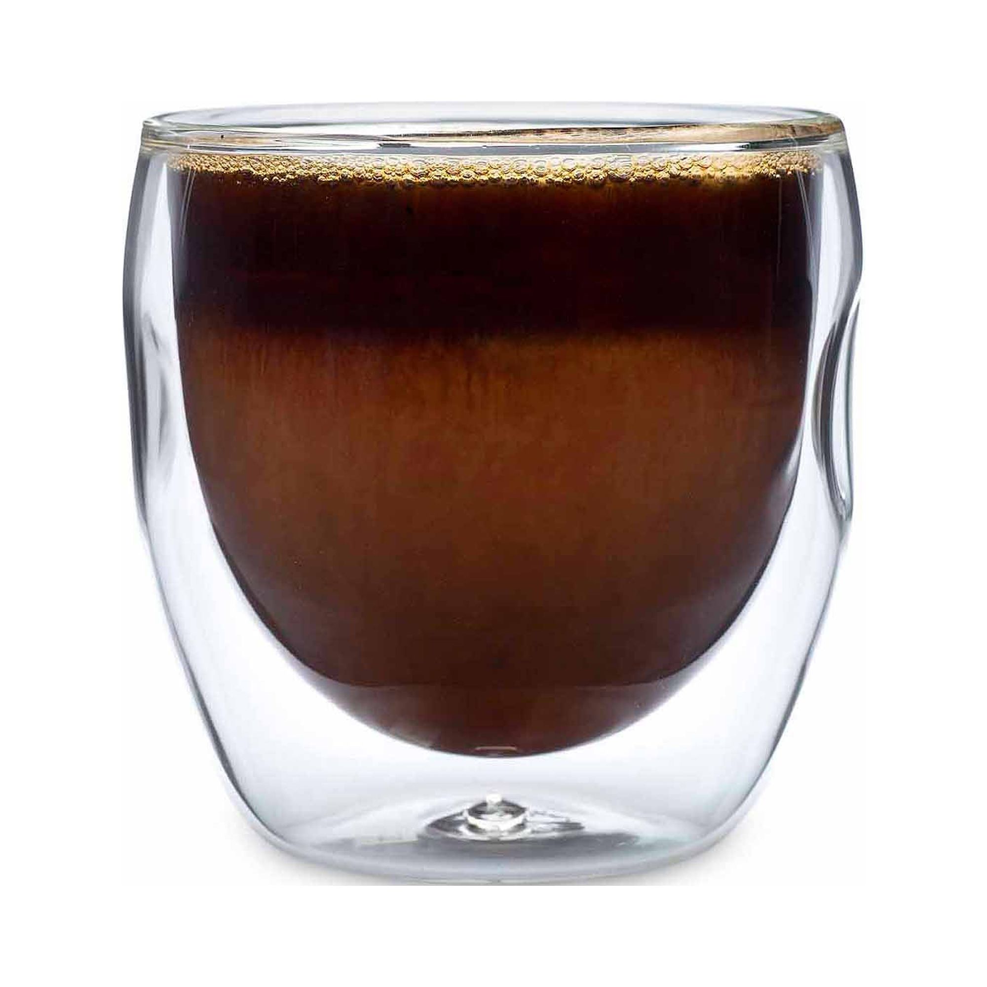 Moderna Artisan Series Double Wall 8 oz Beverage Glasses, Set of 8: Set of 8 heat and condensation-resistant borosilicate glasses that each holds 8 oz Each glass features opposing mouth-blown dimples that allow for a natural and effortless grip Patent-pending double wall design that suspends drinks within an inner wall, creating an engaging optical effect Designed to keep your hands cool with hot drinks, and free of condensation with chilled beverages Completely dishwasher, microwave and freezer safe Ships in an elegant 4 color printed box with a 1 year warranty Satisfaction guaranteed