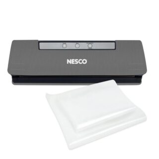 Includes VS-101S One-Touch Vacuum Sealer and 50-Count Gallon Bags Easy digital panel with progress bar and dry/moist modes Built-in roll storage and bag cutter for convenience Bags feature cross-venting channels for maximum air extraction Multi-layer tear-resistant material, BPA-free and safe for all uses Works for microwave, boil, sous-vide, dishwasher, and freezer Prevents freezer burn and reduces food waste Ideal for meal prep, leftovers, and bulk food storage Compatible with NESCO and other brand vacuum sealers Extends freshness and locks in flavor up to 5x longer
