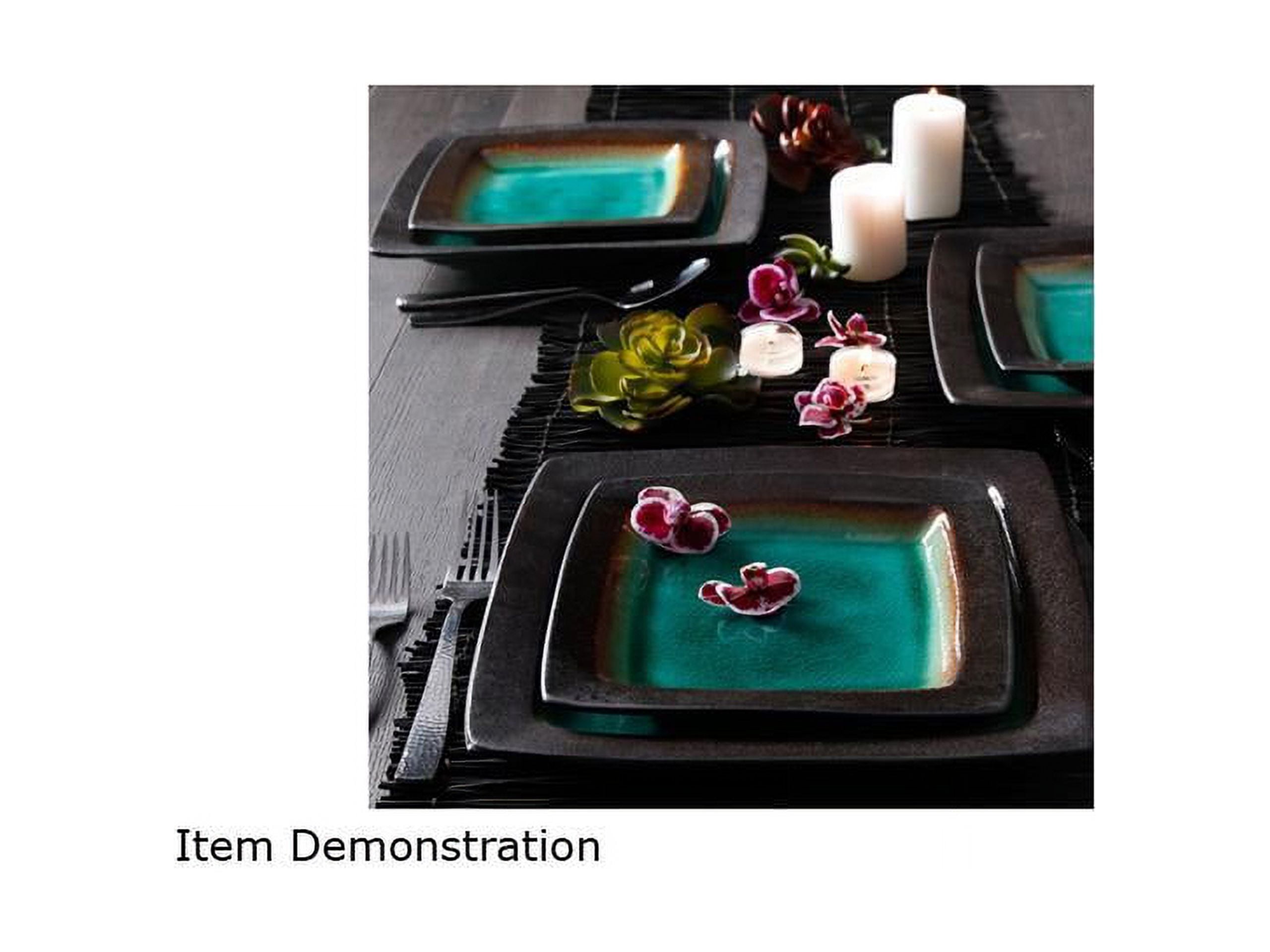 Sold as 1 Each. Material: Stoneware, Finish: Reactive glaze. Dishwasher safe. Dimensions: 10.5″Dia. dinner plates, 8″Dia. dessert plates, 5.7″Dia. bowls, 14 oz. mugs. Serves up to 4. Design: Ocean paradise, Color: Jade, Shape: Square. Contemporary dinnerware set. Microwave safe. Set includes: Four dinner plates, four dessert plates, four bowls and four mugs.