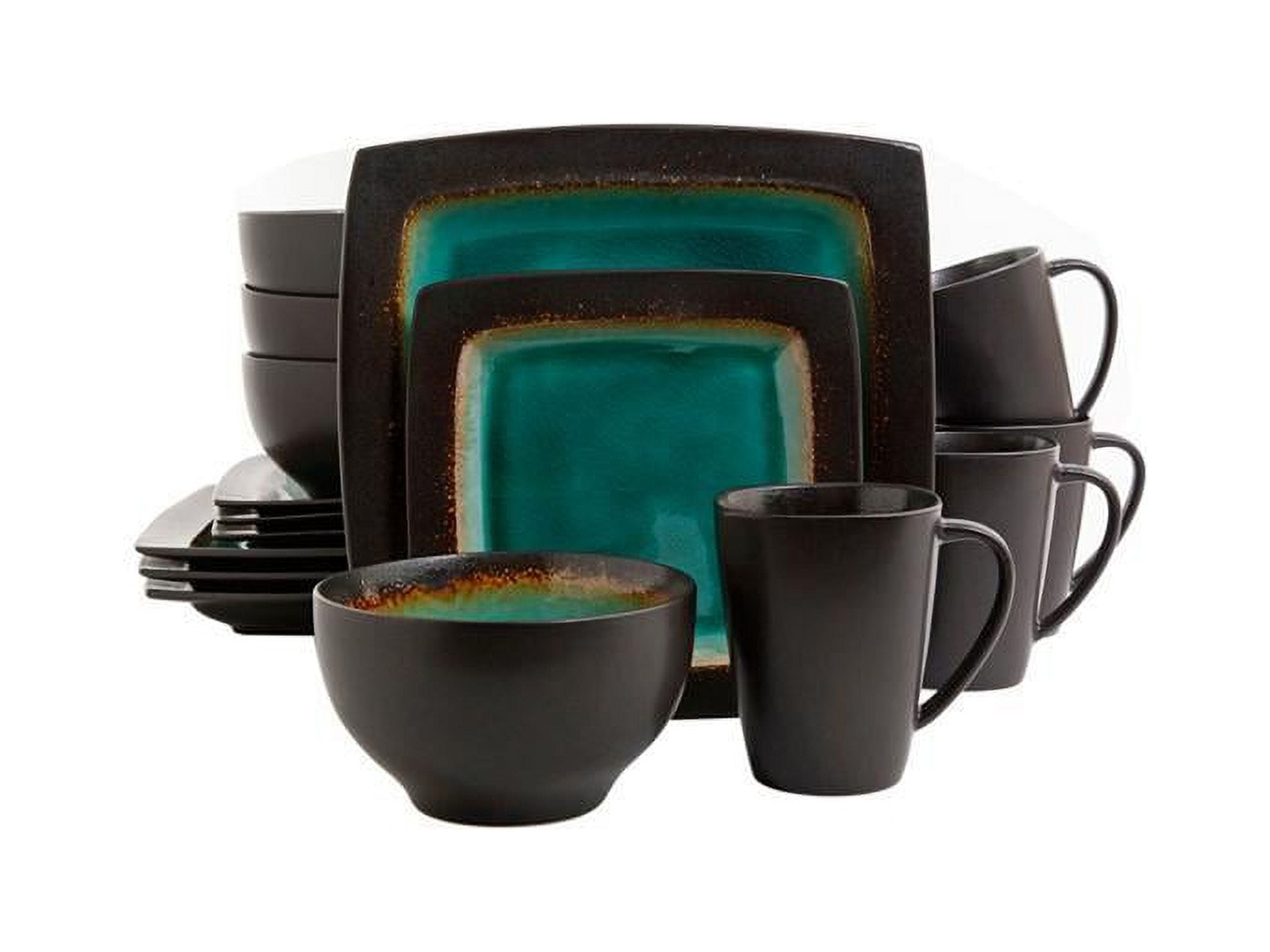 Ocean Paradise 16-Piece Square Reactive Dinnerware Set, Jade