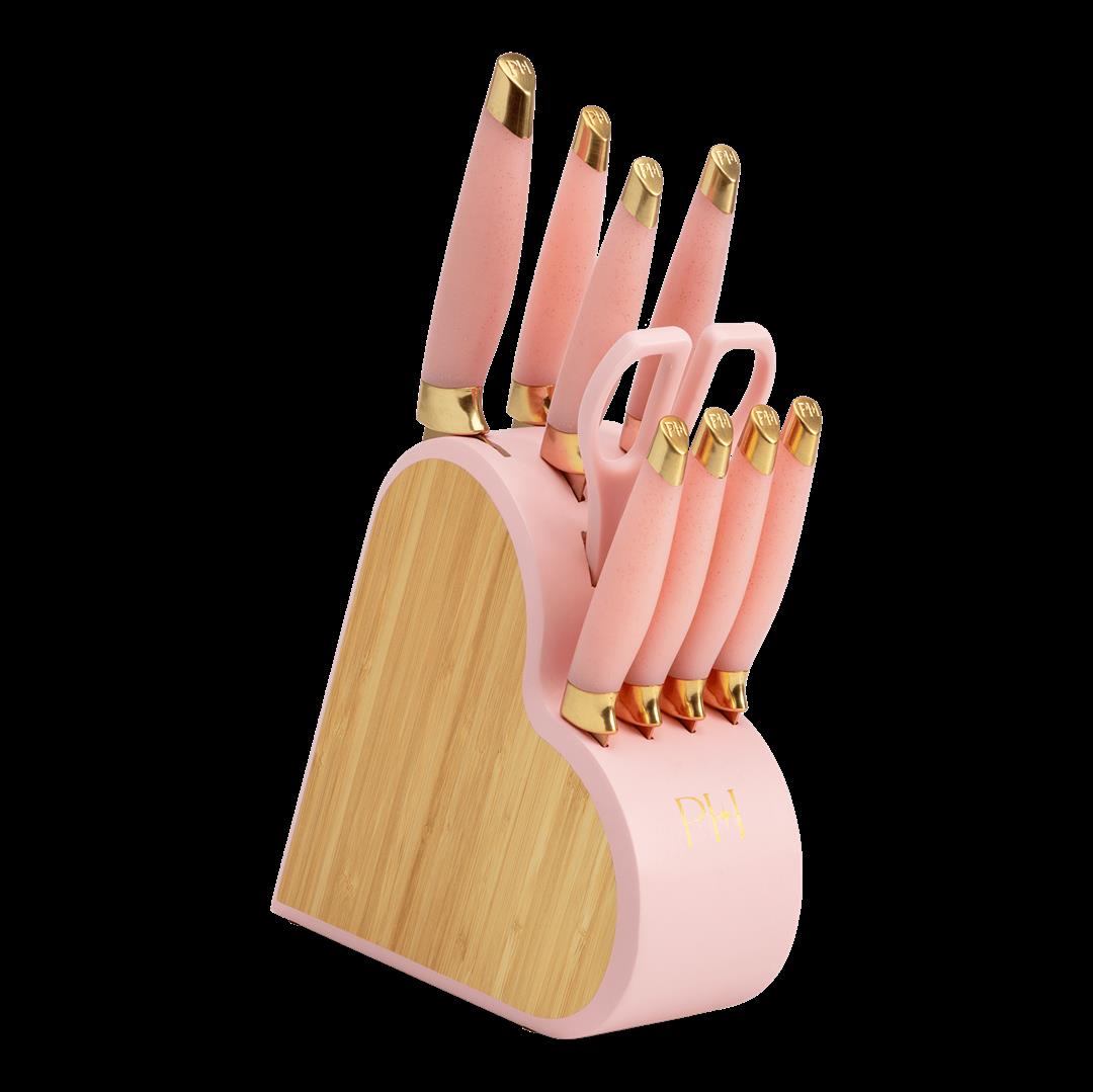Paris Hilton 10-Piece Heart-Shaped Stainless Steel Knife Block Set, Pink