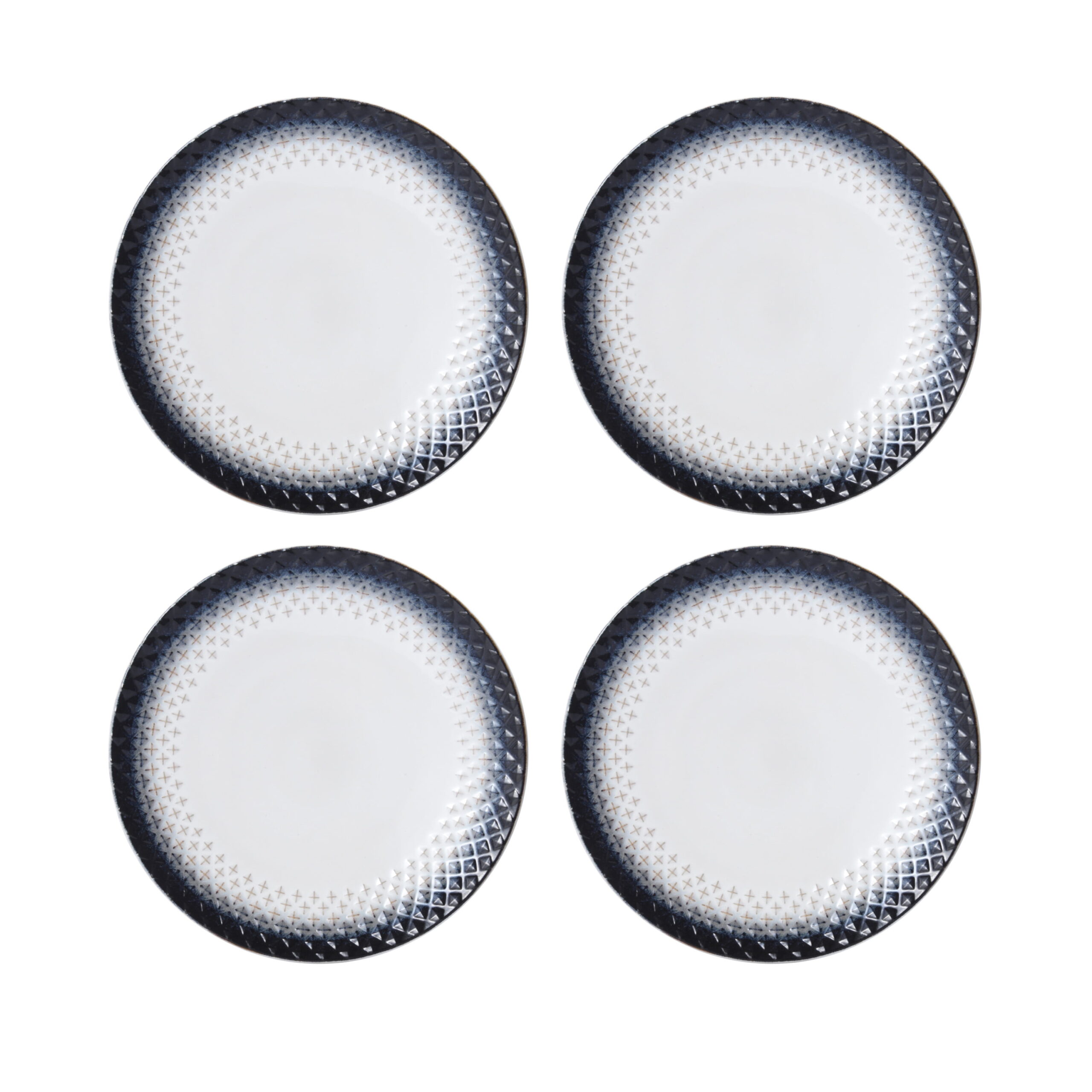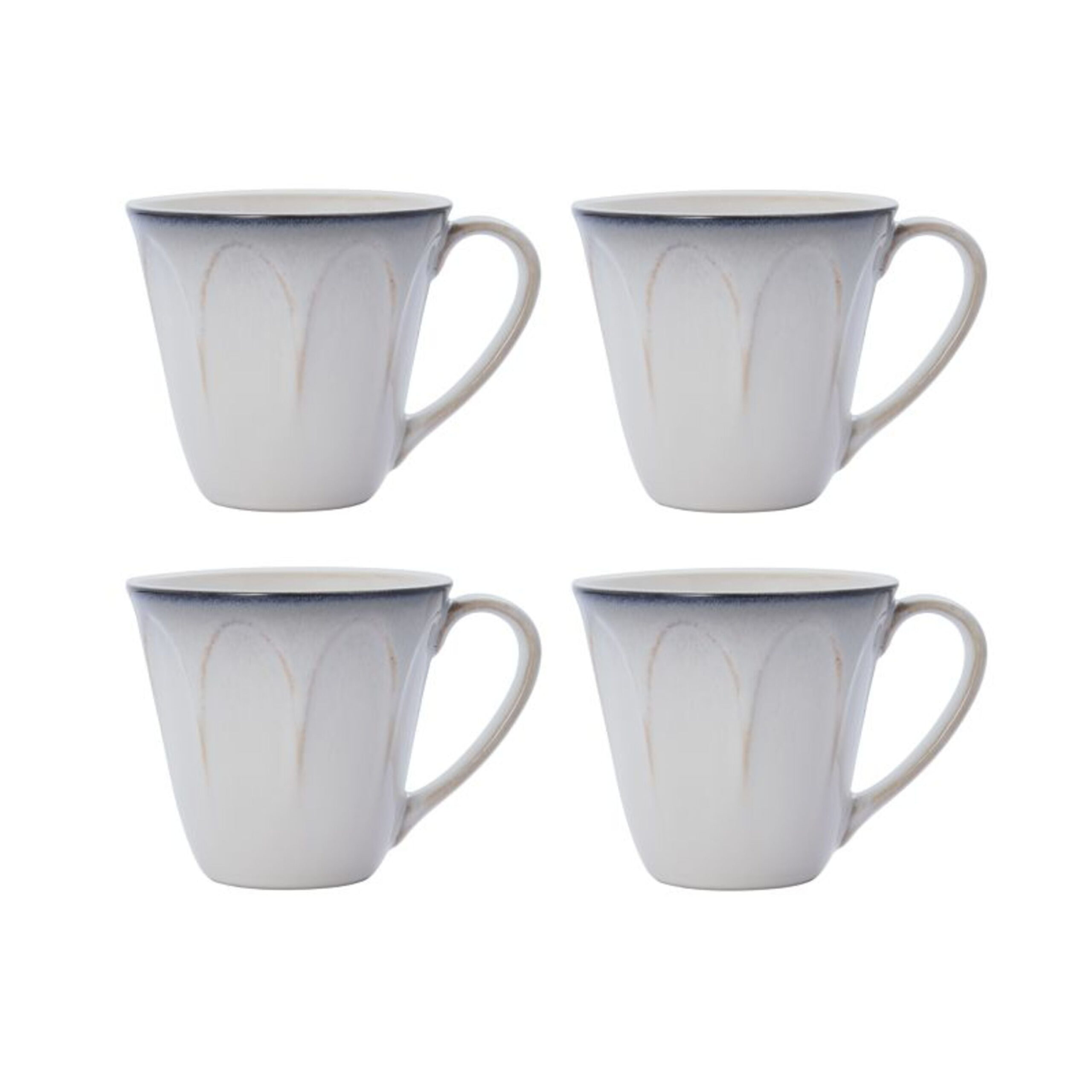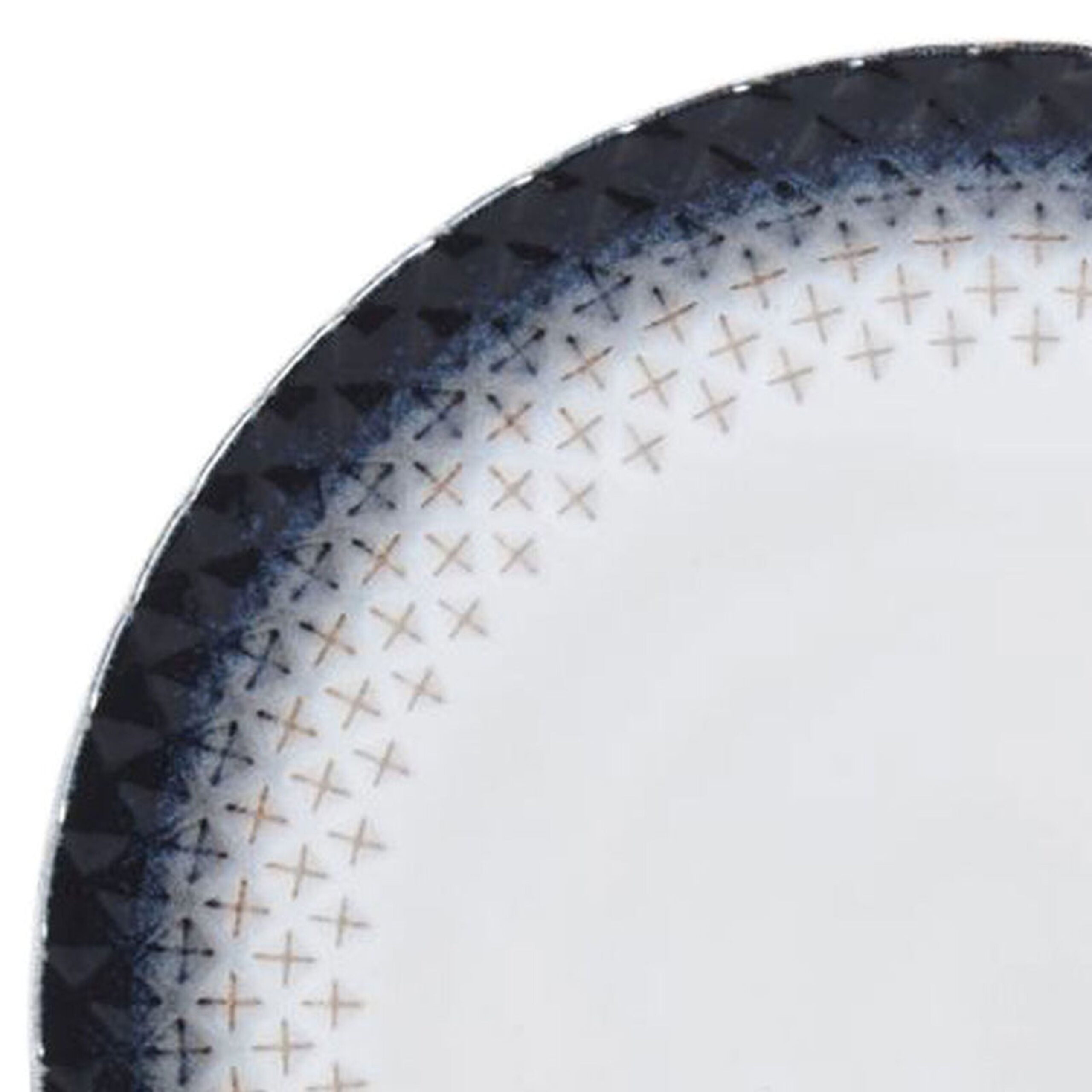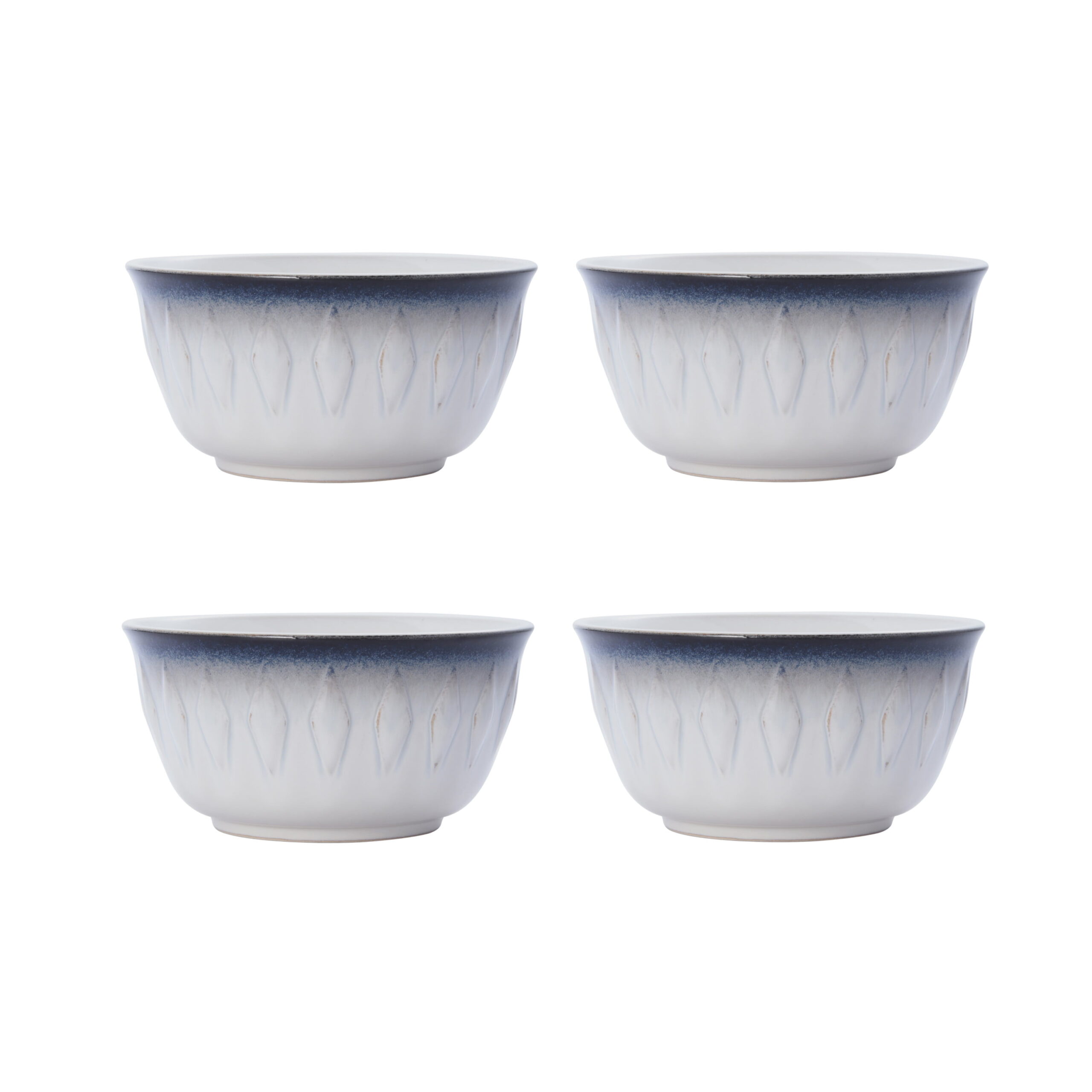 Classic meets contemporary with this Pfaltzgraff 16-Piece Blake Dinnerware Set. Crafted of high-quality stoneware for strength and durability, this stylish set features embossed detailing reminiscent of traditional architectural designs. A deep blue band around the rims makes the place setting pop on any table. 16-piece set, service for 4, includes 4 each of: 10-1/2 inch dinner plate, 7-1/2 inch salad plate, 5-1/2 inch cereal bowl, and 12-fluid ounce mug. Microwave and dishwasher safe.
