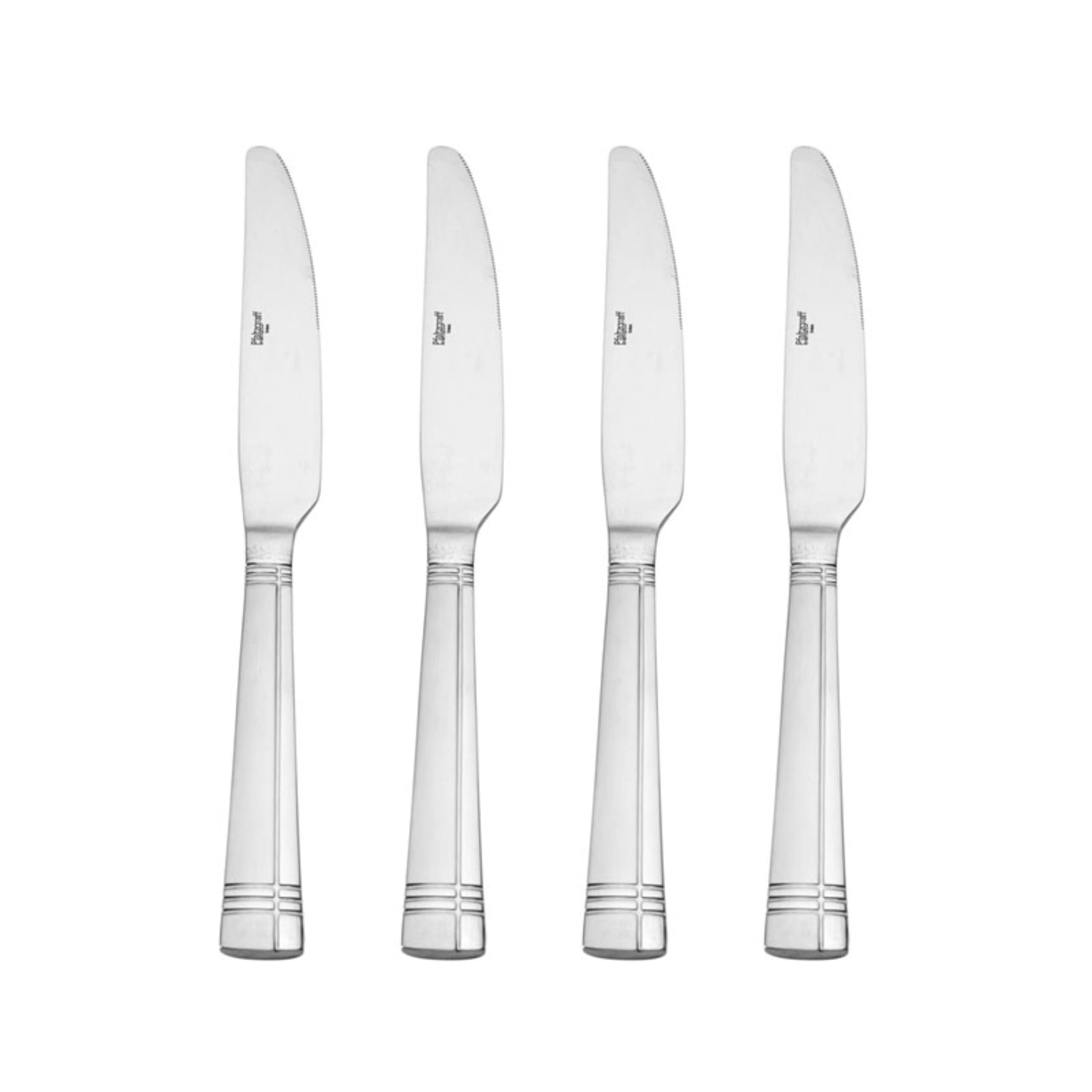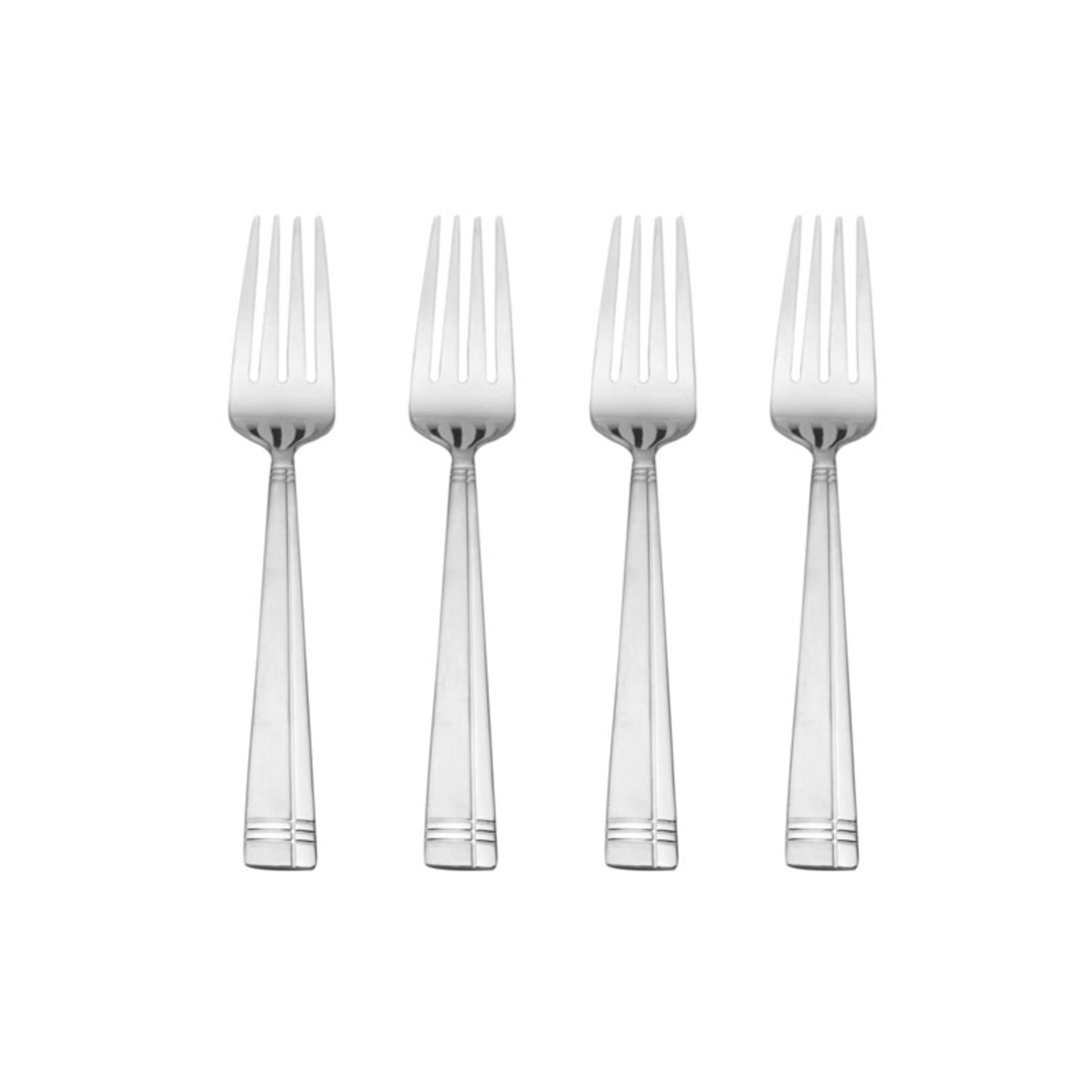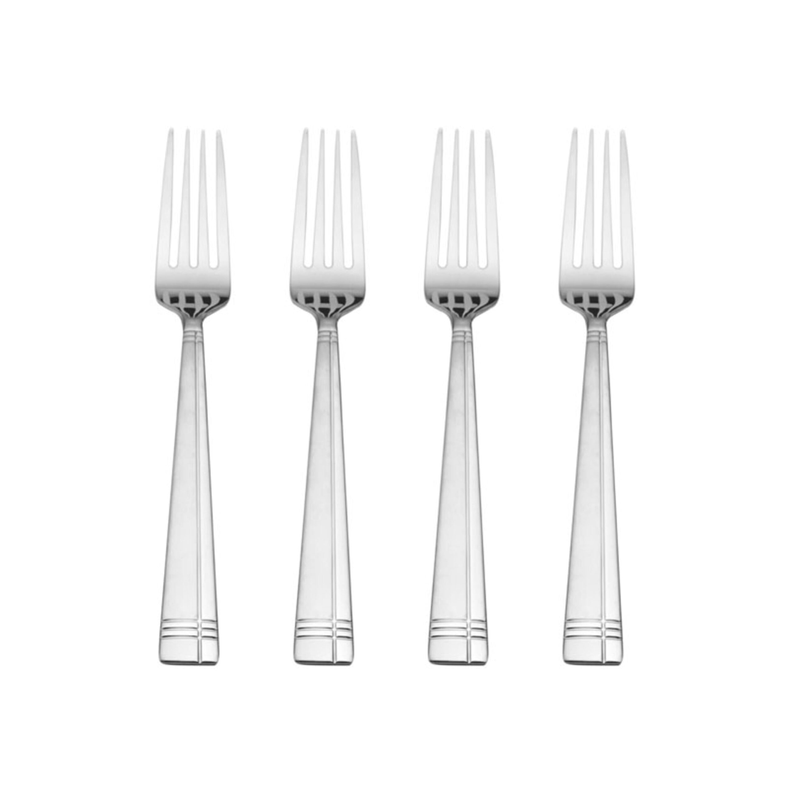 This Pfaltzgraff 20-Piece Dawson Frost Flatware Set is constructed of superior quality 18/0 stainless steel, and will stand up to the rigors of everyday use. The sleek, modern handle design is divided by a single, offset vertical line that adds a unique look to the flatware. 20-piece set, service for 4, includes 4 each of: dinner fork, salad fork, dinner spoon, teaspoon, and dinner knife. Dishwasher safe.