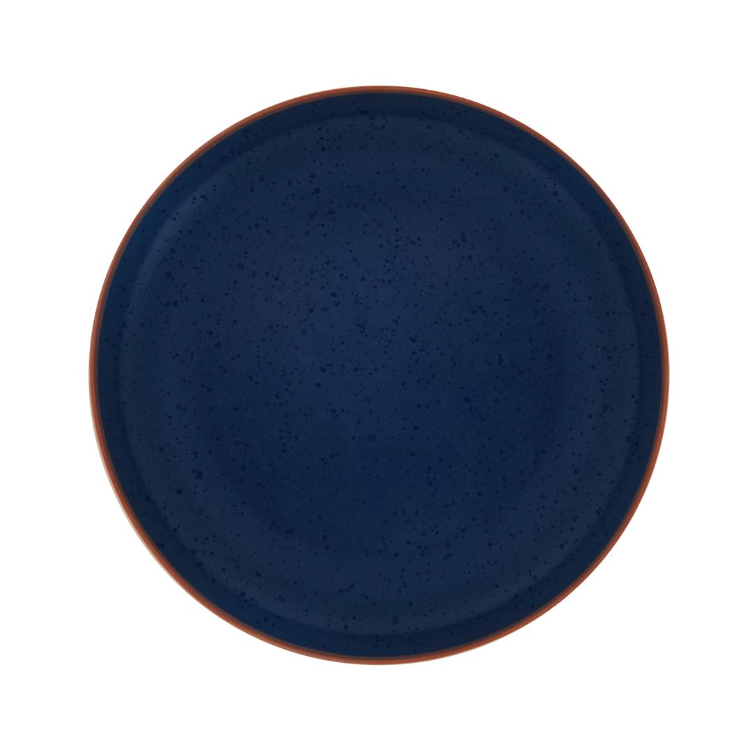 Unexpected and unique, this Hunter Blue 16-Piece Dinnerware Set by Pfaltzgraff brings bold modern style to everyday dining and casual dinner gatherings. Made of high-quality stoneware, this contemporary collection has a semi-matte, blue glaze finish with contrasting glossy speckles and a striking earth tone band around the rims. 16-piece set, service for 4, includes 4 each of: 10-1/2 inch dinner plate, 8-inch salad plate, soup/cereal bowl with a 5-1/2 inch diameter, and 12-fluid ounce mug measuring 4 inches tall with a 3-3/4 inch diameter. Microwave and dishwasher safe.