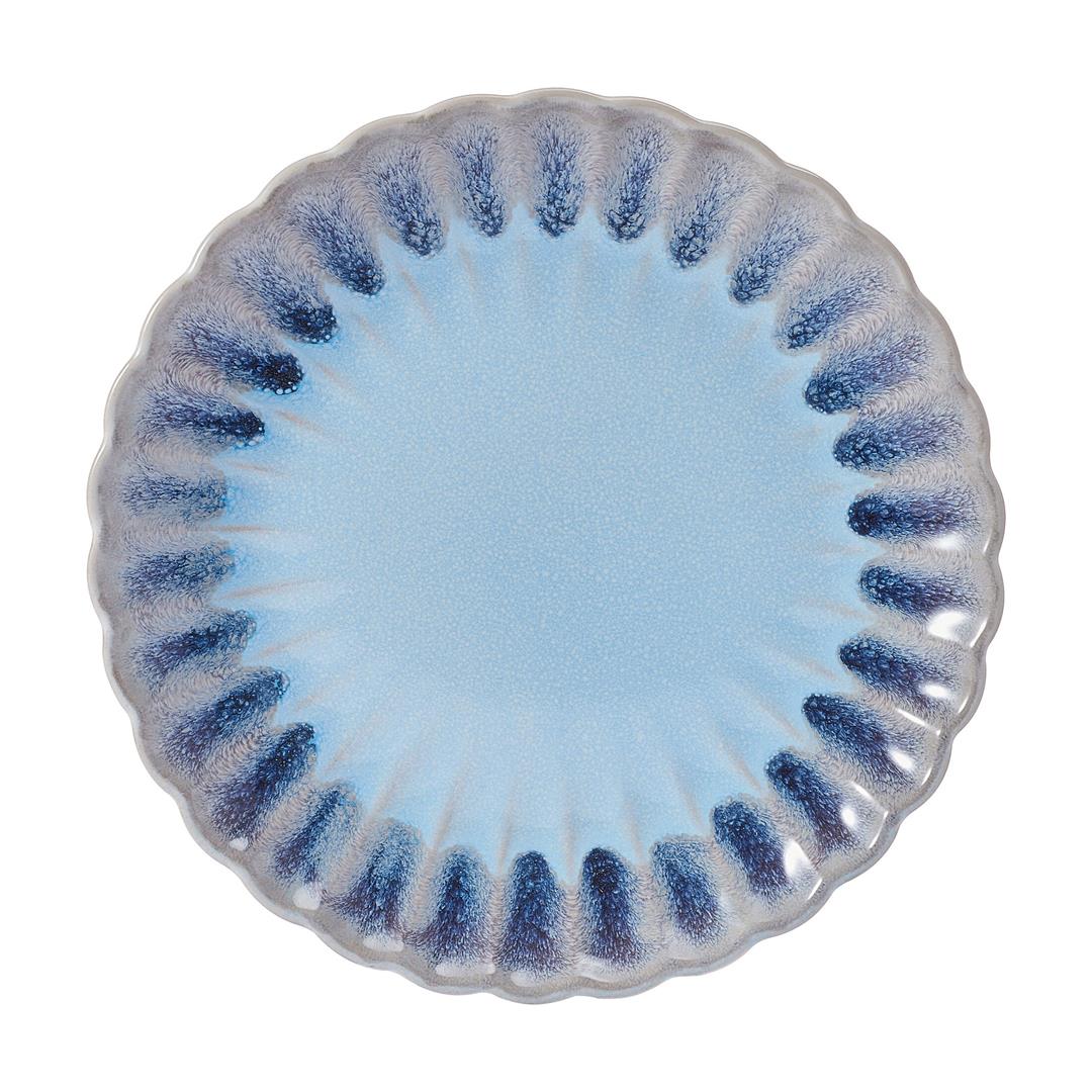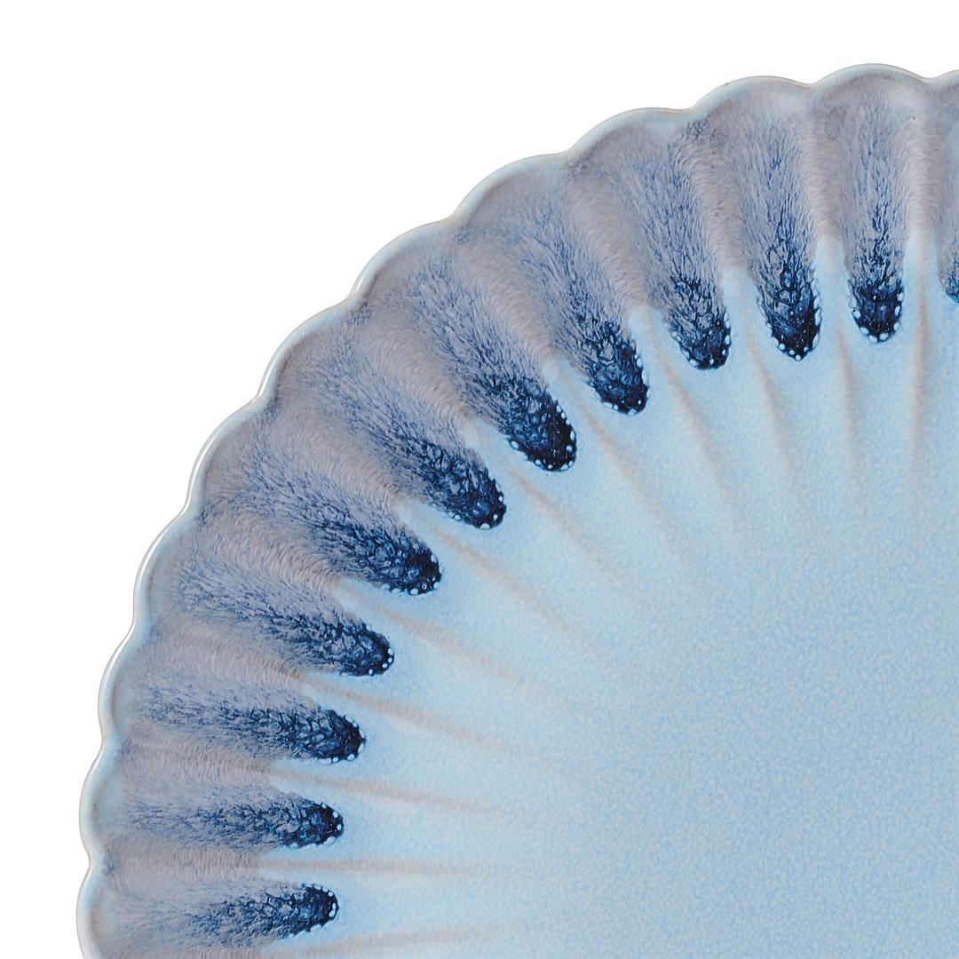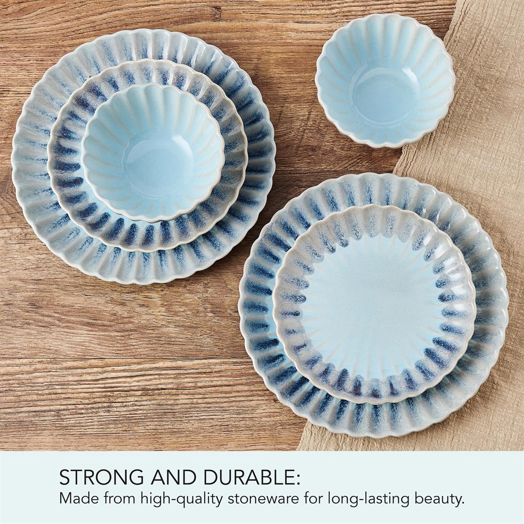 Defy expectations with this Lucinda 12-Piece Dinnerware Set by Pfaltzgraff. Beautifully crafted of high-quality stoneware for strength and durability, this stunning collection creates a mesmerizing tablescape with a scalloped design and color fade from blue to gray that brings to mind the natural visual elements of a seashell. This unique dinnerware is perfect adding modern allure to your everyday dining or light entertaining table setting. 12-piece set, service for 4, includes 4 each of: 10-inch dinner plate, 8-inch salad plate, and 2-3/4 inches high by 5-1/2 inch diameter all-purpose bowl with a 17-fluid ounce capacity. Microwave and dishwasher safe.