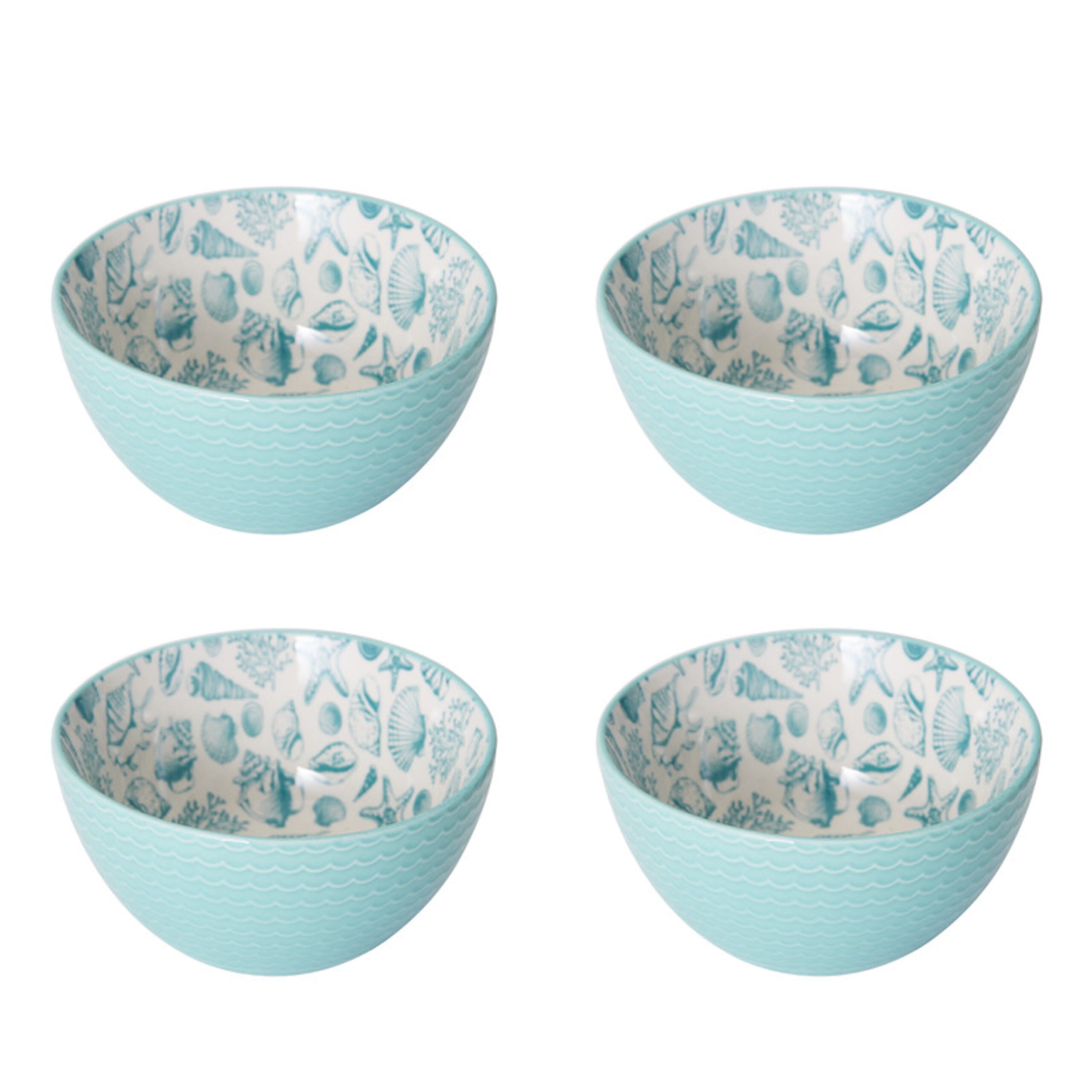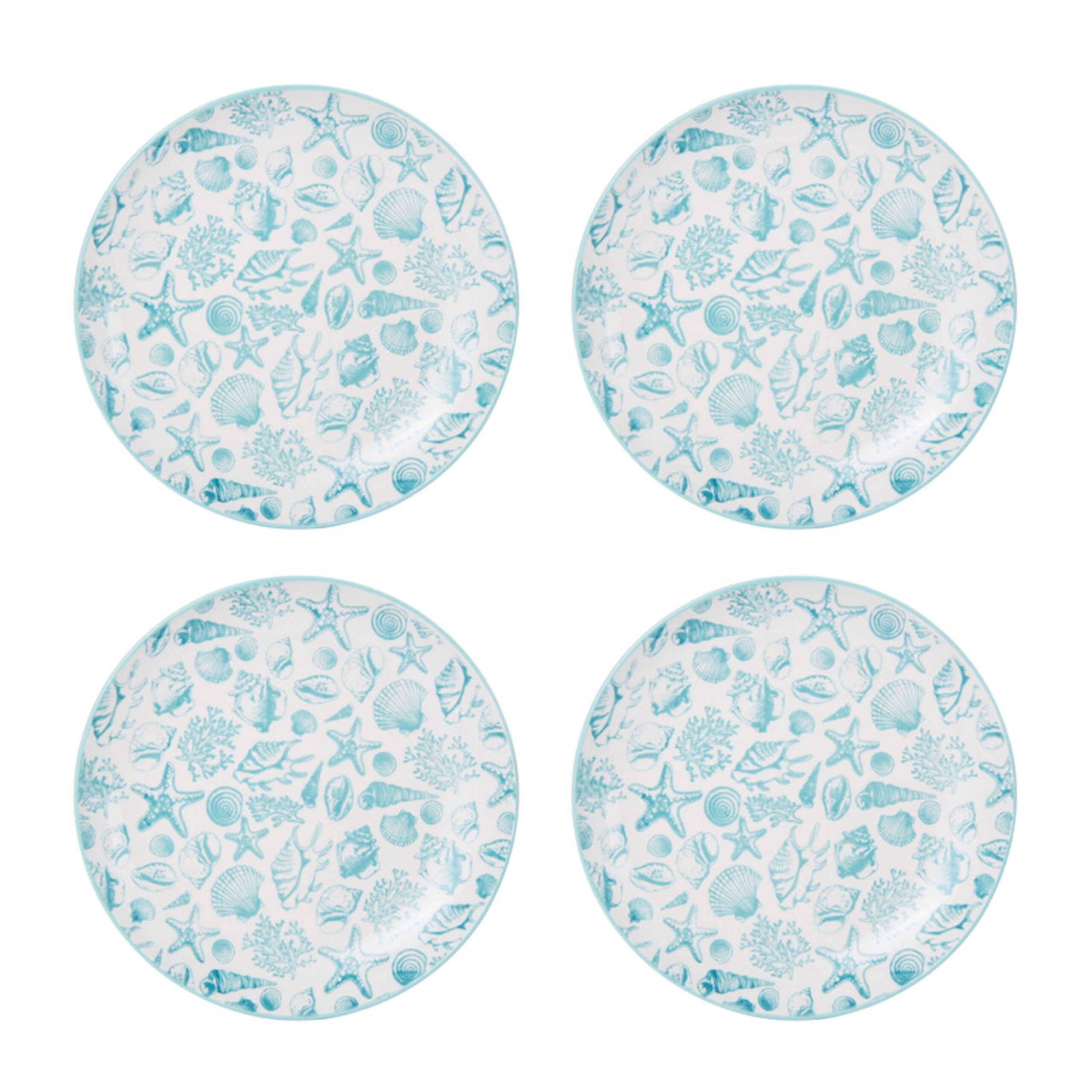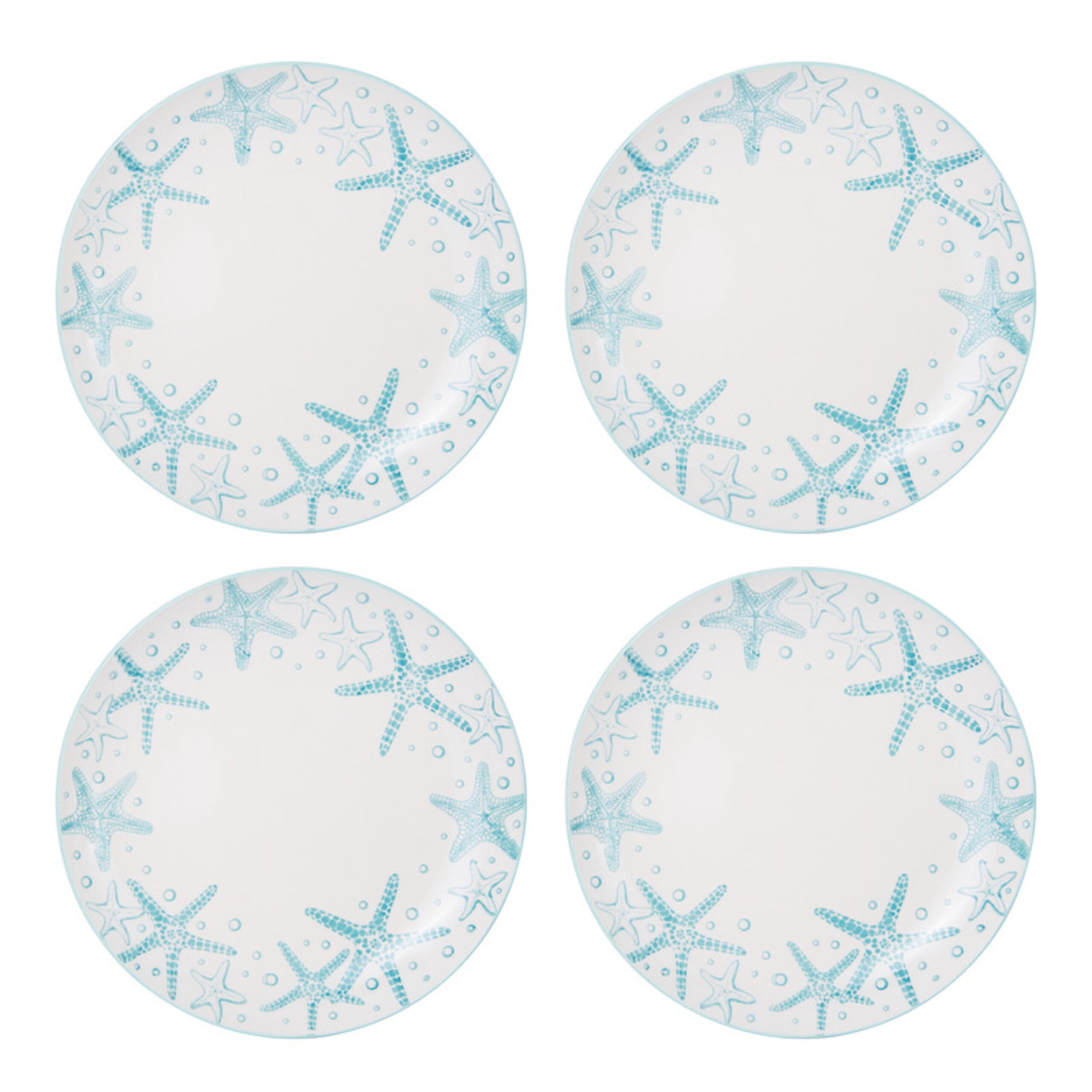 This Pfaltzgraff Venice 16-Piece dinnerware set features an array of starfish, shells and other coastal icons with a wave-like textured exterior. The set is crafted from high quality stoneware for lasting beauty. This 16-piece dinnerware set, service for four, includes (4) each: 11 inch dinner plate, 8 inch salad plate, 6 inch diameter soup cereal bowl and 14 ounce mug. The beautifully detailed design compliments any decor and is perfect for everyday use. Dishwasher and microwave safe.