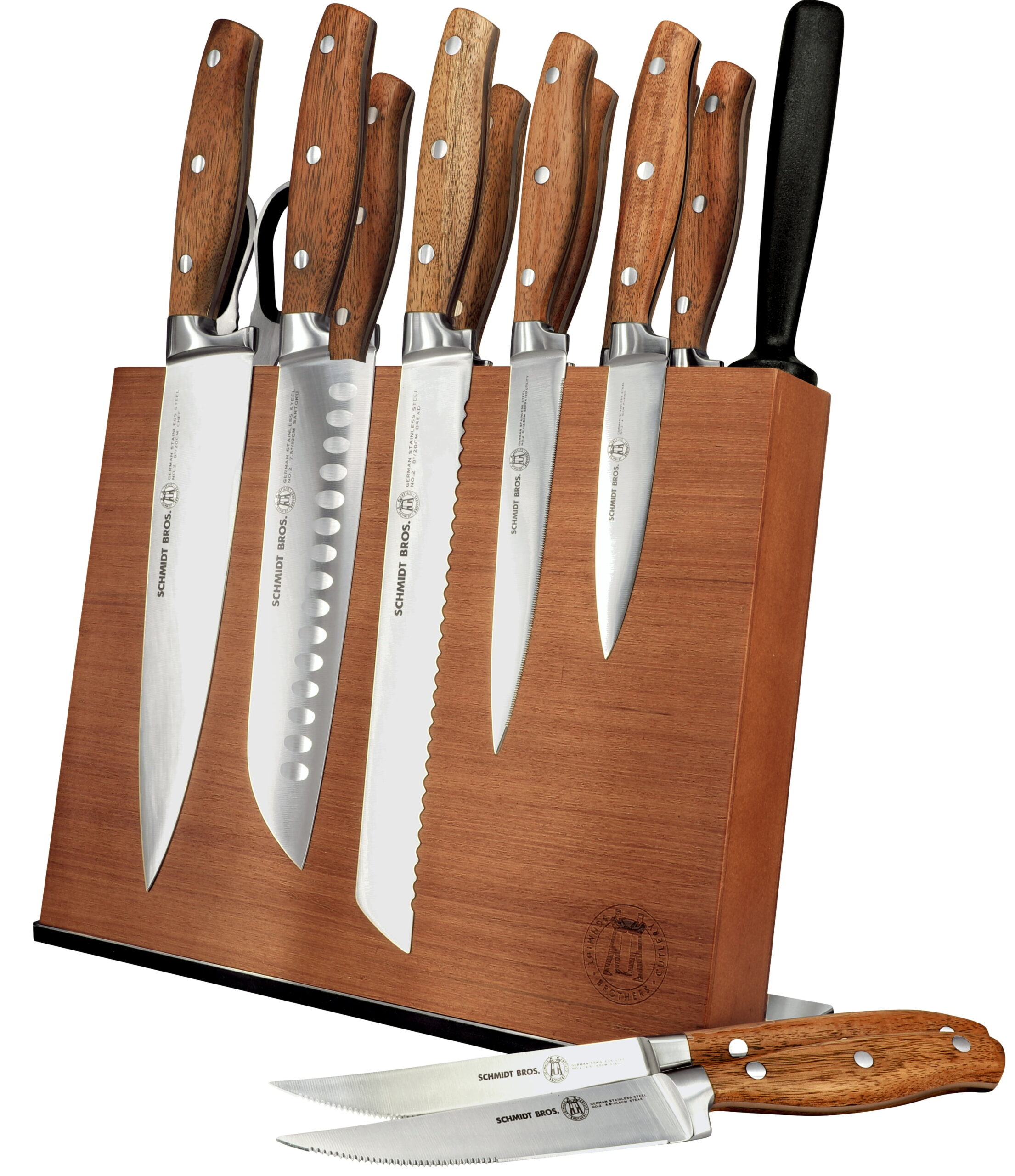 Schmidt Brothers Cutlery 14-Piece Acacia Forged Stainless Steel Knife Block Set, Acacia Wood Handle