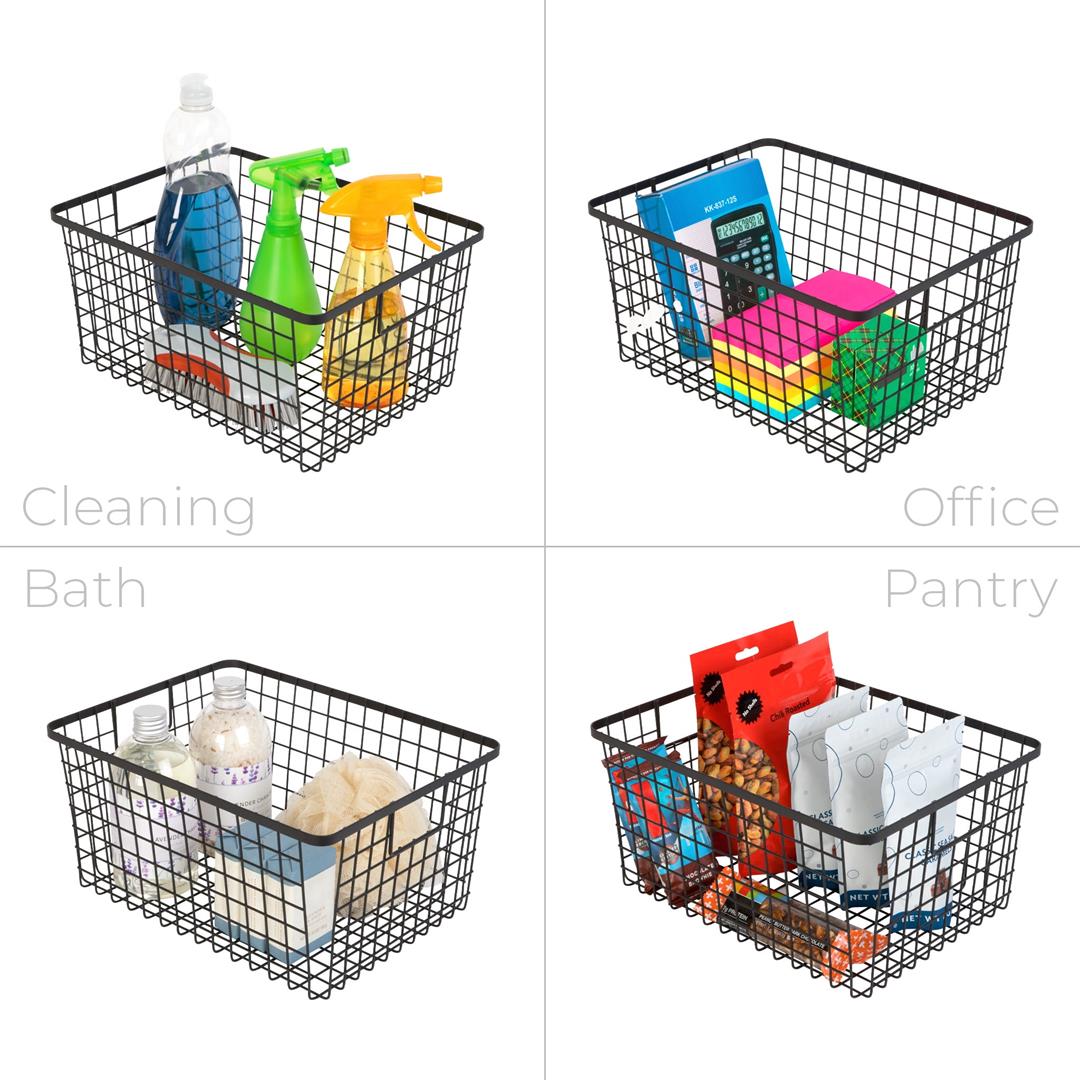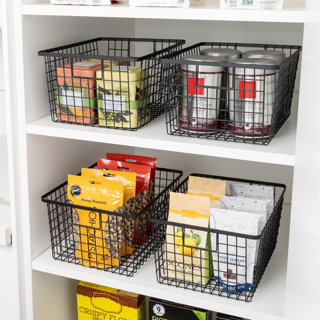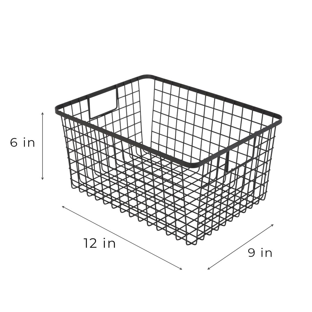 The Smart Design Set of 4 Nestable Baskets instantly organizes your small items and creates space, sturdy-steel design boasts rust-proof technology and allows you to place alongside cabinets, shelves, and compact areas. Set includes 4 steel baskets with easy-carry handles, helping maximize storage space and makes traveling a breeze with these nesting baskets. Great for use in kitchen, bathroom, shelves, and pantry storage. Perfect for storing and organizing fruits and vegetable, food Items, cans, and more. Product Specifications Dimensions 9 x 12 x 6 inches ( L x W x H).